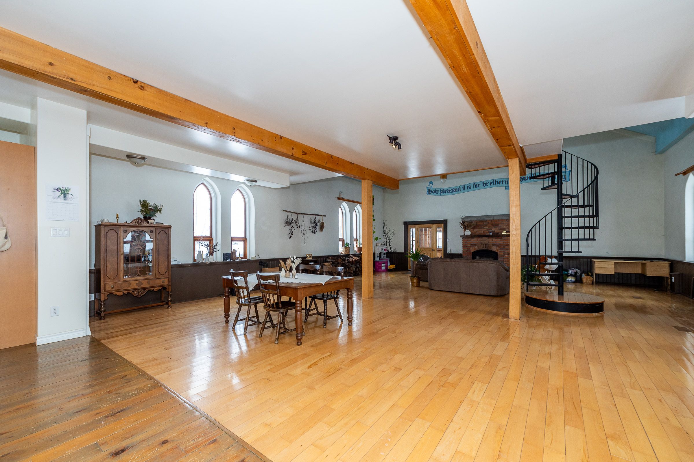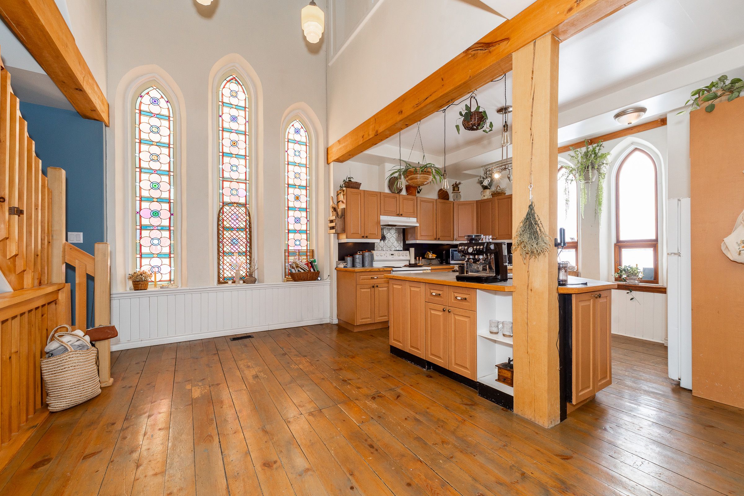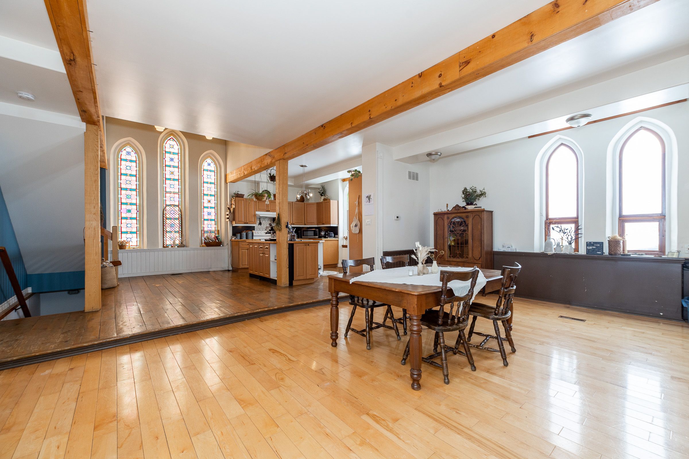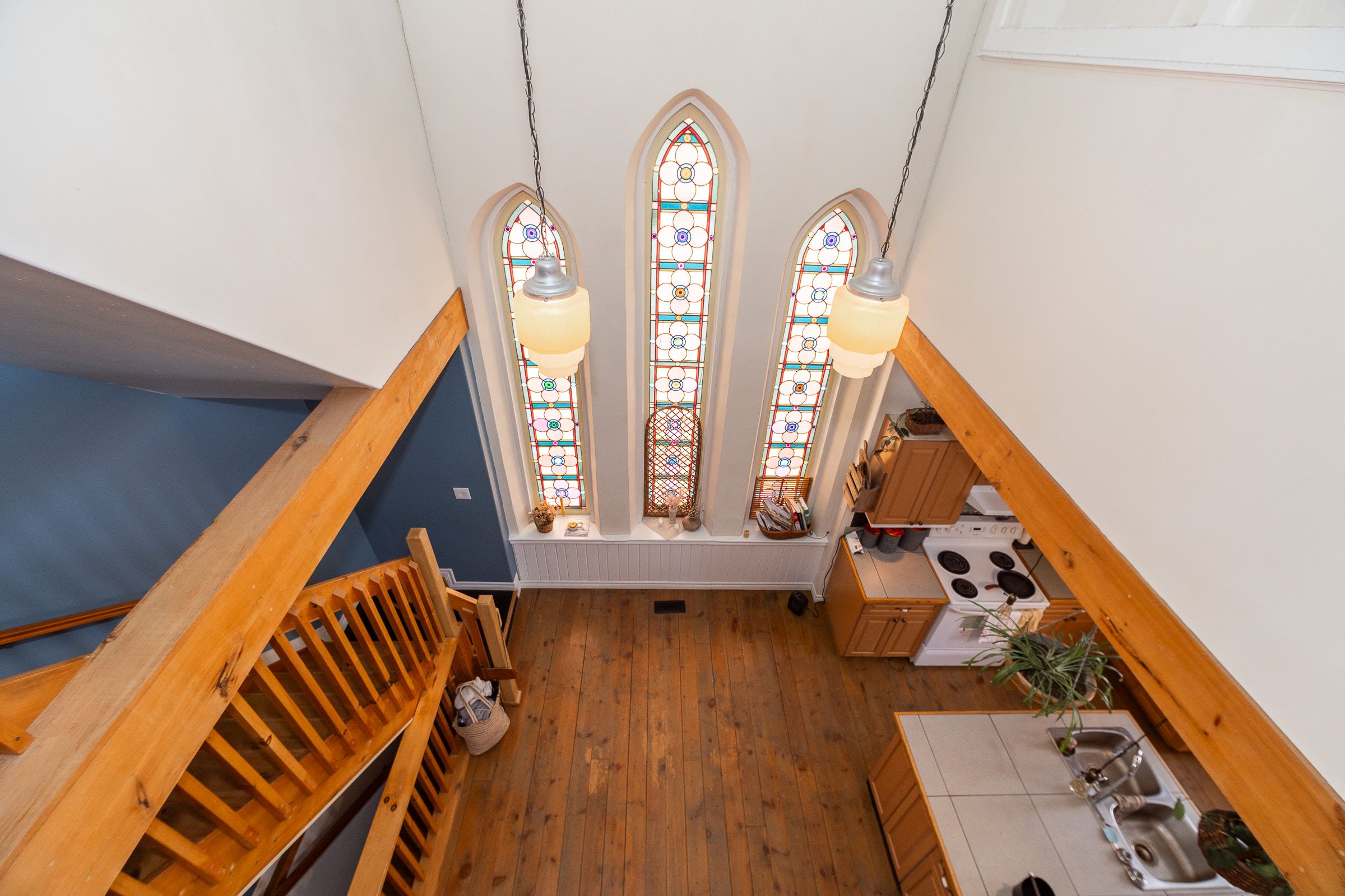 Own a piece of history with this professionally converted knox church home, set atop scenic scotch mountain on half an acre and surrounded by rolling farmland. Renovated in 2008, the home preserves its historic character while incorporating modern updates, showcasing vaulted ceilings, stained glass windows, and hardwood floors throughout. The main living area is expansive, anchored by a wood-burning fireplace that adds warmth and charm. The open-concept kitchen, living, and dining spaces create an inviting setting for both everyday living and entertaining, while a spacious mudroom adds practical function at the entrance. The second level features generously sized bedrooms and a full bathroom with convenient laundry, along with the added benefit of two separate staircases for flexible access. A second full bathroom is located on the main floor for added convenience. Outside, the timeless red brick exterior is complemented by a cedar shake roof, a large level yard, and a back patio ideal for relaxing or entertaining, all set on a paved country road. Ideally situated with easy access to meaford, owen sound, the blue mountains, and markdale, this distinctive property offers peaceful country living within reach of town amenities.