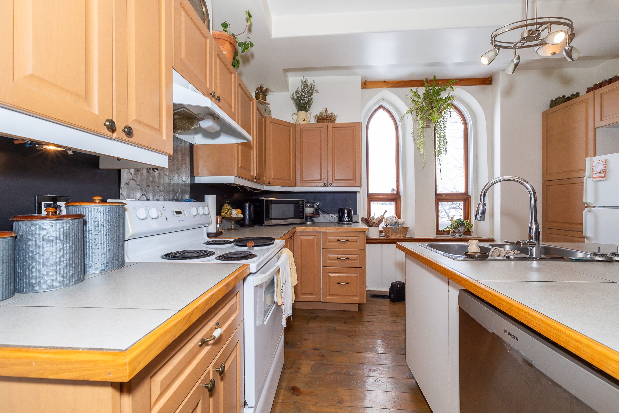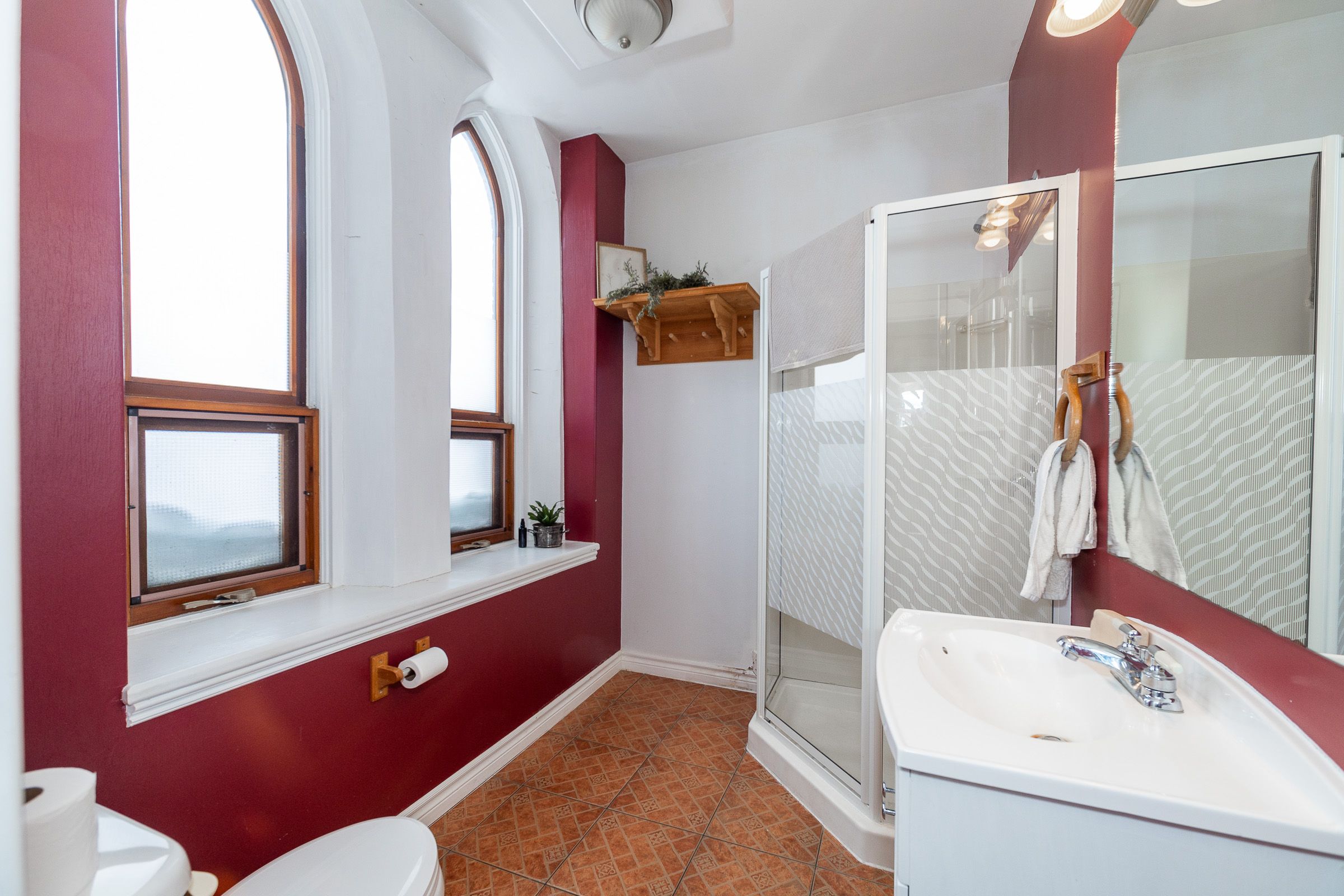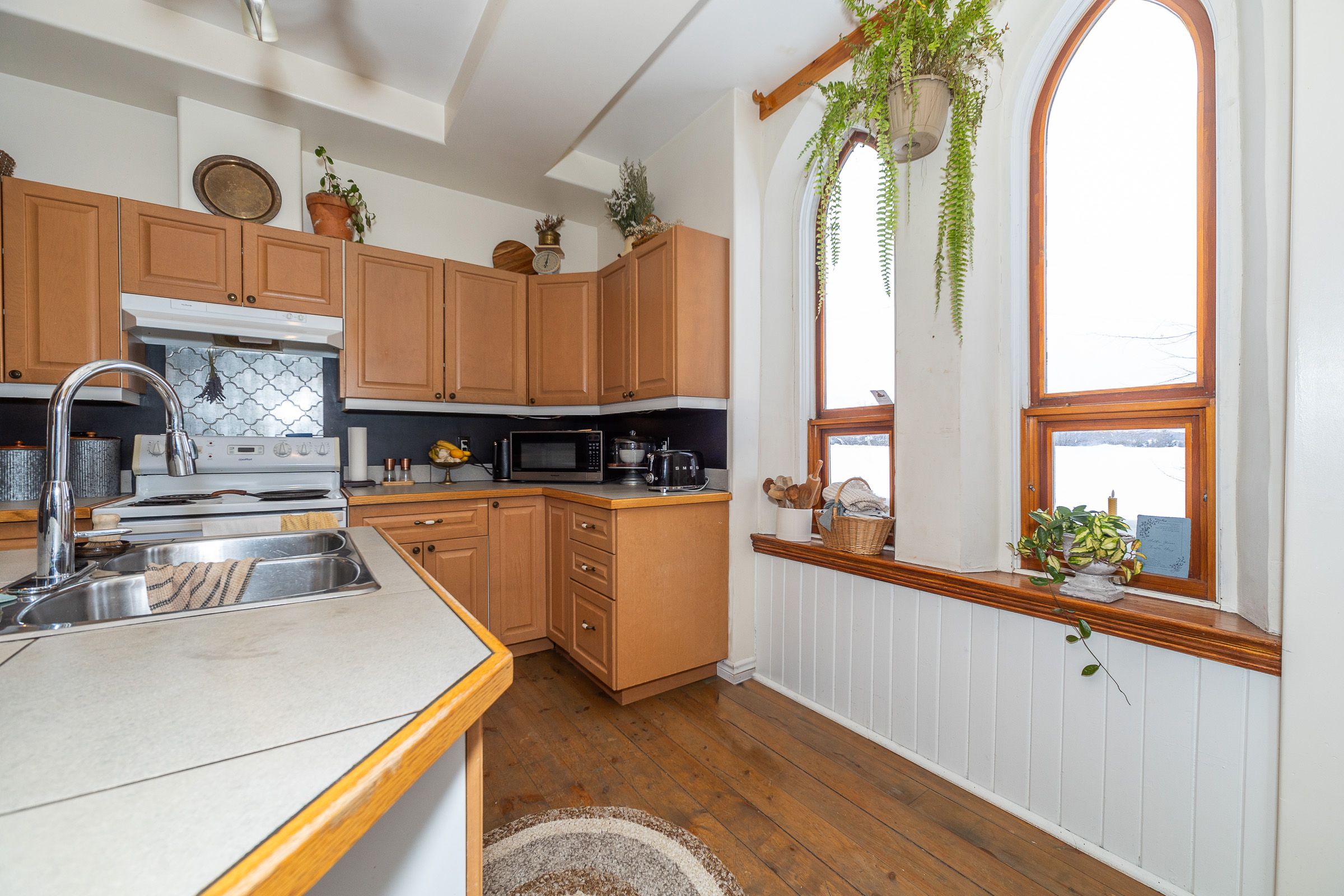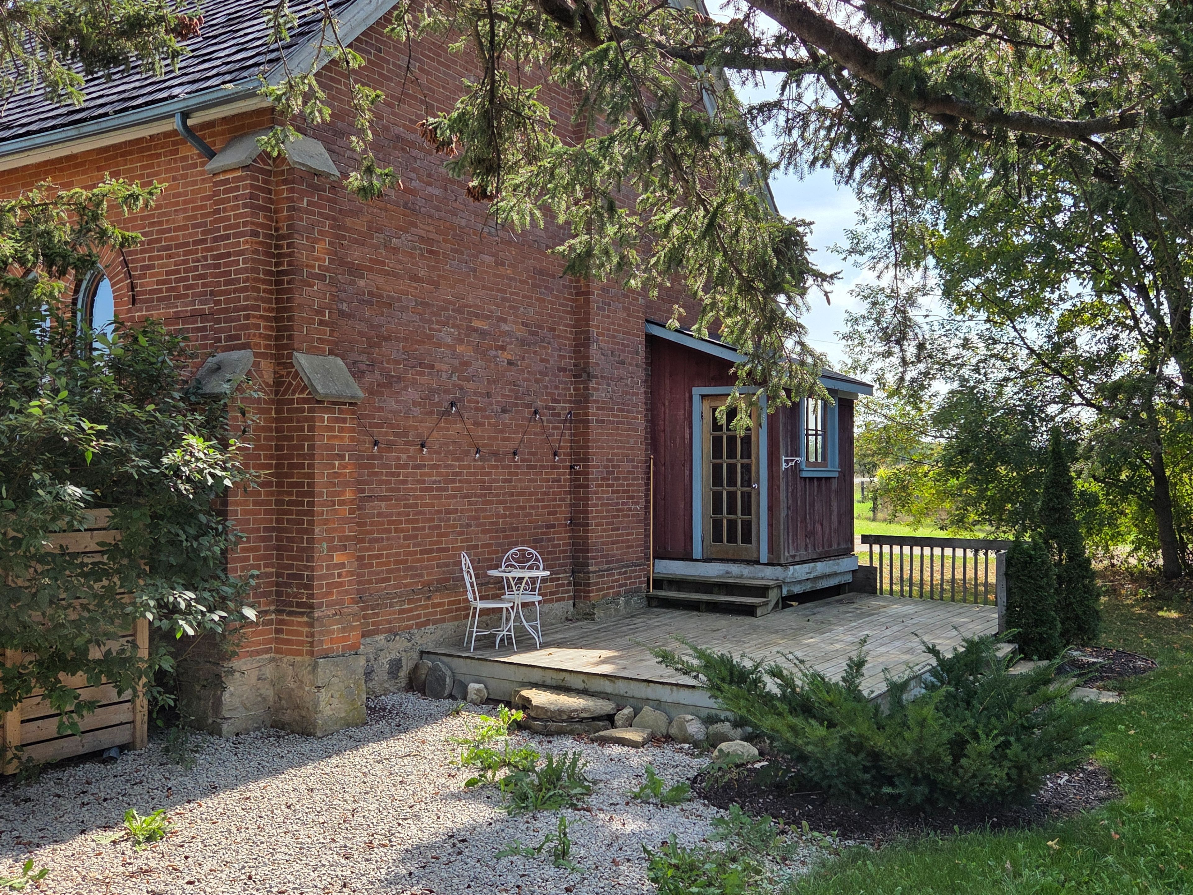 Own a piece of history with this professionally converted knox church home, set atop scenic scotch mountain on half an acre and surrounded by rolling farmland. Renovated in 2008, the home preserves its historic character while incorporating modern updates, showcasing vaulted ceilings, stained glass windows, and hardwood floors throughout. The main living area is expansive, anchored by a wood-burning fireplace that adds warmth and charm. The open-concept kitchen, living, and dining spaces create an inviting setting for both everyday living and entertaining, while a spacious mudroom adds practical function at the entrance. The second level features generously sized bedrooms and a full bathroom with convenient laundry, along with the added benefit of two separate staircases for flexible access. A second full bathroom is located on the main floor for added convenience. Outside, the timeless red brick exterior is complemented by a cedar shake roof, a large level yard, and a back patio ideal for relaxing or entertaining, all set on a paved country road. Ideally situated with easy access to meaford, owen sound, the blue mountains, and markdale, this distinctive property offers peaceful country living within reach of town amenities.