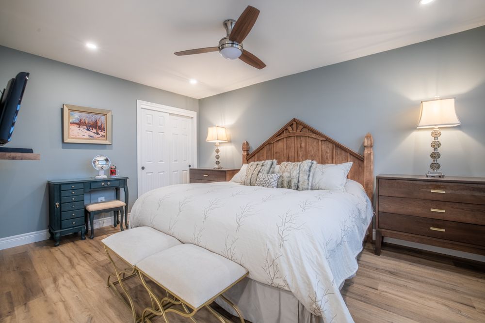 Discover refined living in this beautifully renovated sidesplit, perfectly positioned on an impressive 1/3 acre lot backing onto picturesque vineyards. Offering a seamless blend of elegance and functionality, this home has been thoughtfully updated throughout. The heart of the home features a stunning open concept kitchen and family room, ideal for both everyday living and entertaining. A sun-filled living room welcomes you with an abundance of natural light, while a dedicated piano room provides a unique and sophisticated space to relax or entertain. The spacious primary suite is a true retreat, complete with multiple closets. A well-appointed guest bedroom and stylish washroom complete the upper level. The finished basement extends the living space with an additional bedroom with ensuite, along with a large recreation room perfect for family gatherings, hobbies, or a home theatre. Set on a generous and private lot with vineyard views, this property also presents a unique opportunity for those seeking to operate a licensed bed and breakfast (subject to municipal approvals), making it an ideal option for both lifestyle and income potential. A double car garage and waterproof vinyl floors throughout completes this exceptional offering-where modern comfort meets scenic charm.