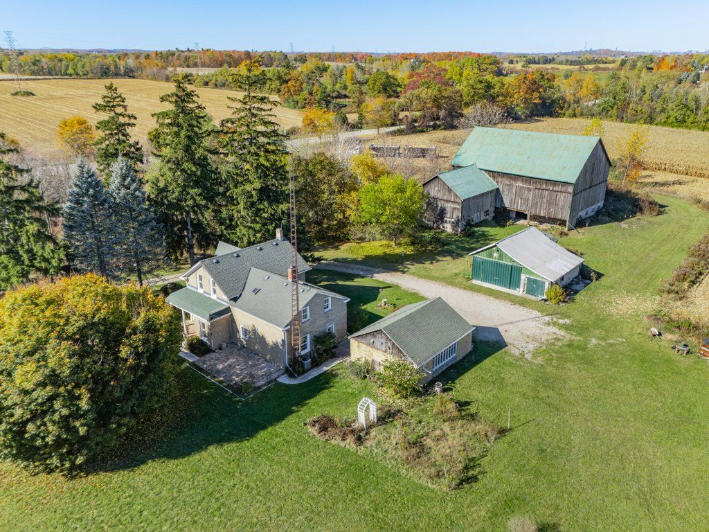 Welcome to 1373 edworthy side road - a picturesque 35. 3-acre hobby farm nestled in sought-after north dumfries. This charming two-storey farmhouse offers over 2,200 sq. Ft. Of living space, featuring 4 bedrooms + office, beautiful original hardwood flooring, high ceilings, and detailed trim and crown moulding that showcase its timeless character. Enjoy the convenience of a detached double-car garage, a 5,245 sq. Ft. Two-storey barn, and a 1,143 sq. Ft. Workshop - ideal for hobby farming, storage, or future projects. Perfectly located at the corner of highway 97 and edworthy side road, this property offers country tranquility just minutes from west galt and a short drive to highway 401, making it a rare blend of rural charm and modern accessibility. Don't miss this opportunity to own a stunning piece of countryside close to city conveniences!