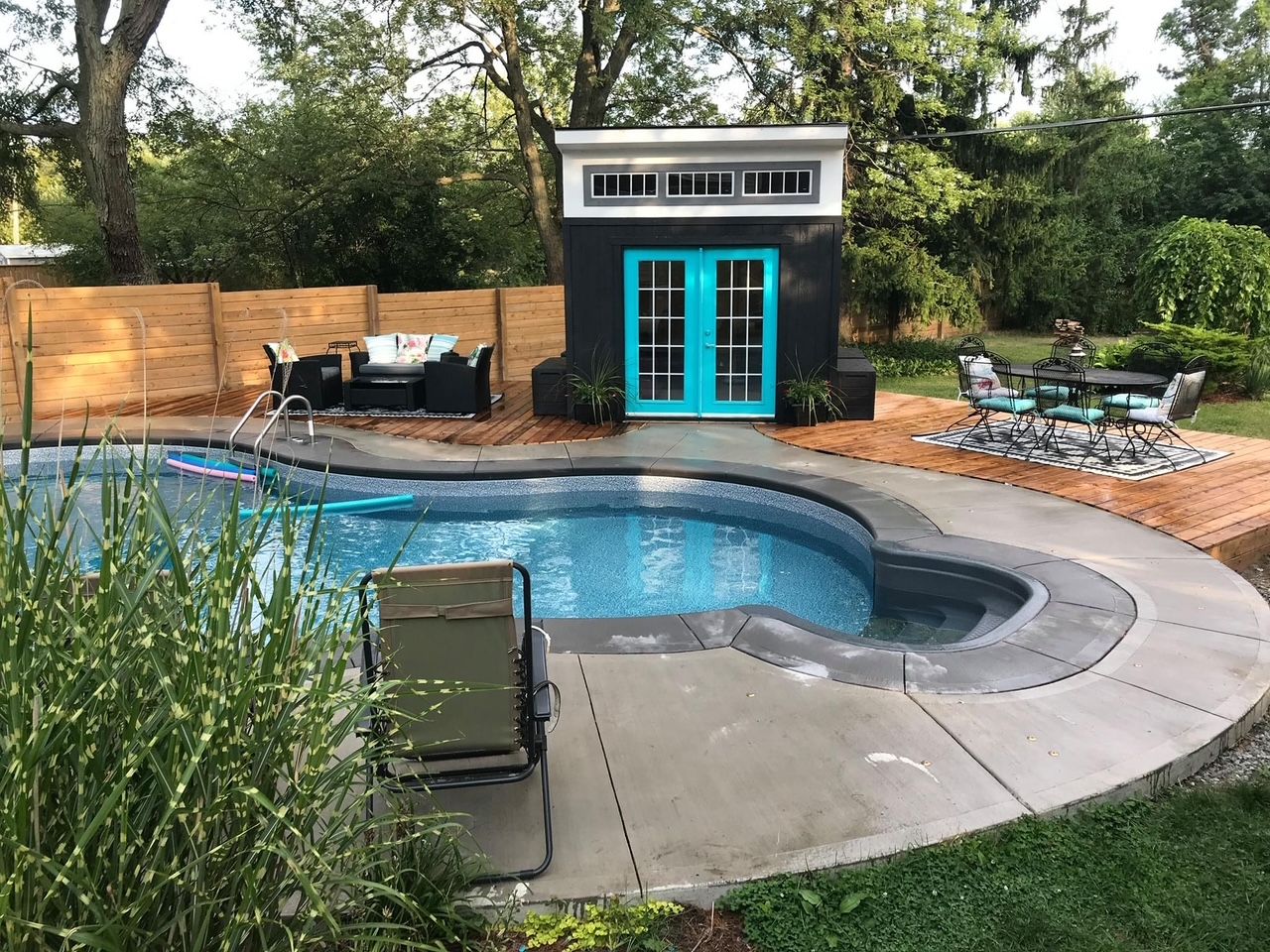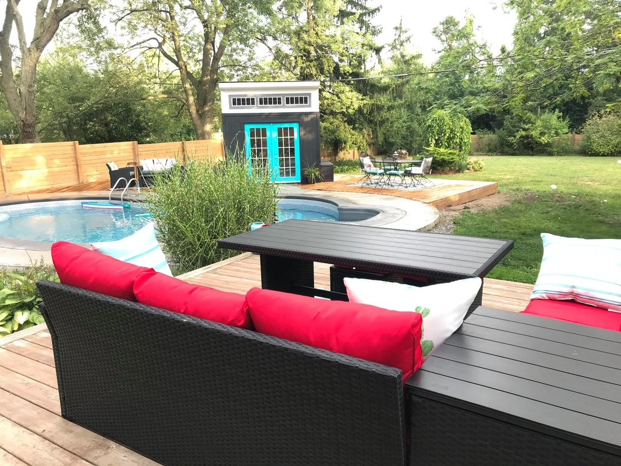 • Private outdoor retreat with in-ground pool, hot tub, and large deck.