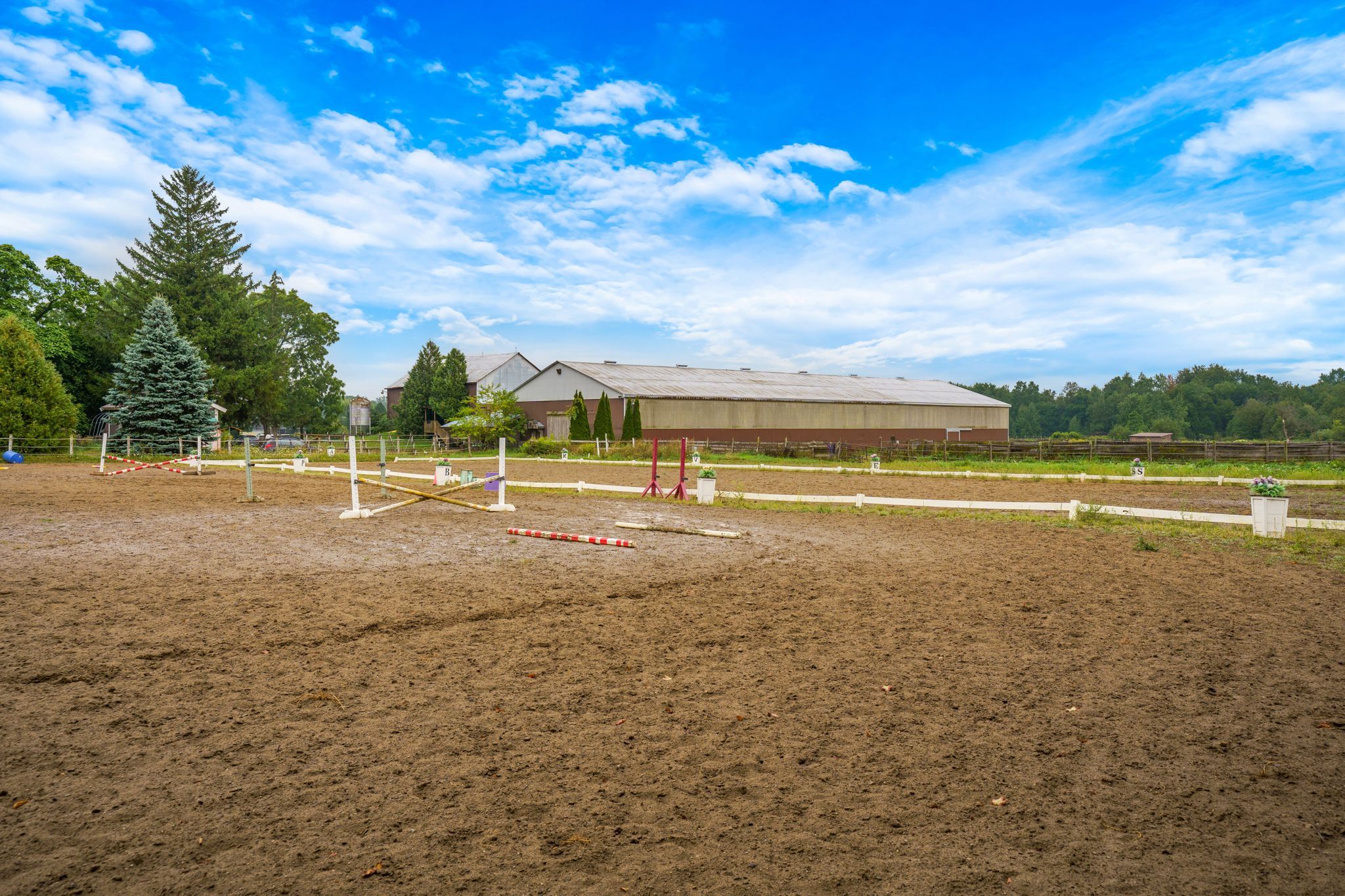 Versatile farm property perfect for horse enthusiasts! Discover 45. 74 acres of privacy and opportunity with this versatile farm, ideally located close to hamilton, brantford, guelph, cambridge with quick access to 401 and 403. Perfect for equestrian enthusiasts, trainers or hobby farmers, this property offers a unique blend of lifestyle, function, and income potential. The main residence is a charming 3-bedroom bungalow with room for customization featuring a large great room with 3 french doors leading to the wrap around porch overlooking green pastures. Steps from your door, the property features a workshop, original 80x40 bank barn with 6 stalls (10x11), a tack room, dry storage and complemented with a finished upper level classroom for summer camps, clinics, and more. An attached barn offers 24 additional stalls, a locker room, an additional tack room, a wash bay equipped with hot water, 2-piece bathroom and access to an upper-level approx. 900 sq ft (1-bed plus den, 1 bath) apartment ideal as barn staff accommodation or as additional rental income. The true highlight of the barn is the 60x190 indoor riding arena with a sand base, new led lighting and overhead sprinkler system. The property is completed with 11 paddocks of varying sizes, an outdoor riding ring (approx 100x200), round pen and conservation protected forest with pond. Ample space for trailers, turnouts, paddocks, and more . All this, just a short drive to town amenities enjoy the serenity of country life without sacrificing convenience. Whether you're looking to grow your equestrian operation as a lesson barn or boarding facility or simply want to enjoy the wide open spaces, this property offers the perfect blend of land, lifestyle, and long-term value. Schedule your showing today to check out this turn key horse venue.