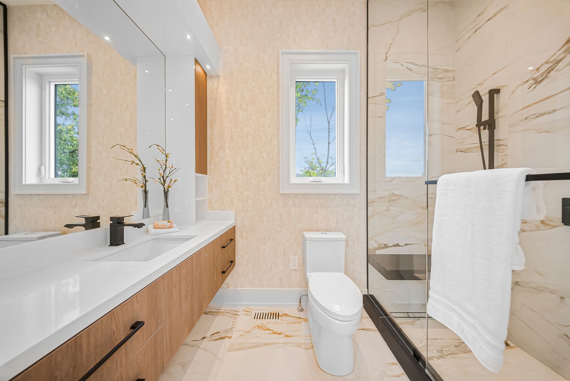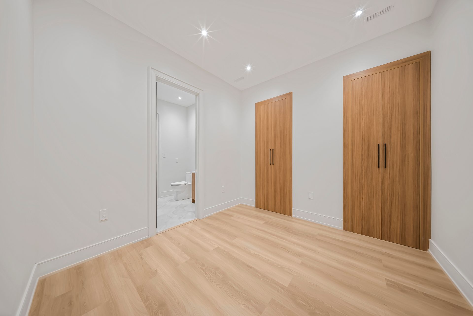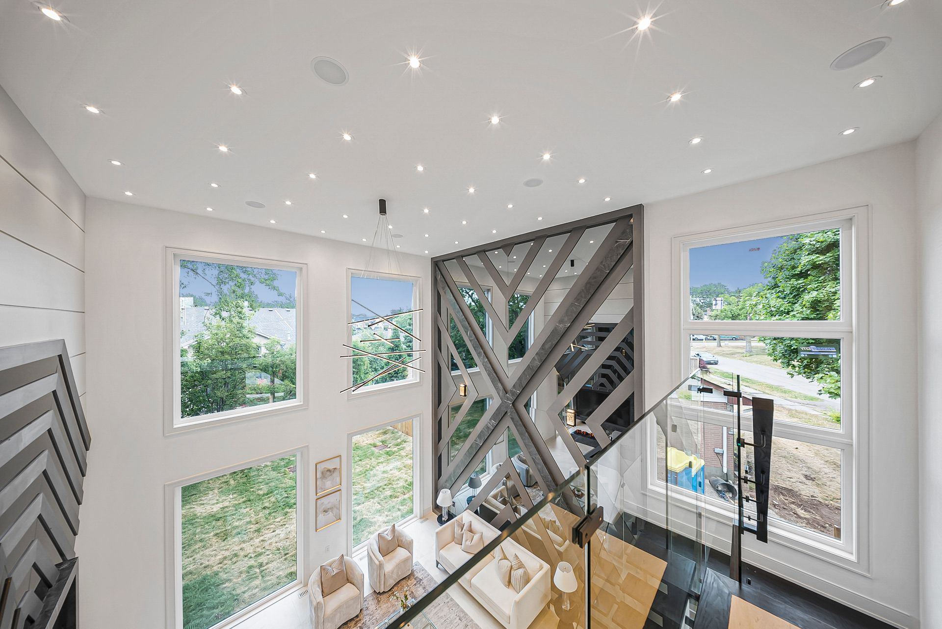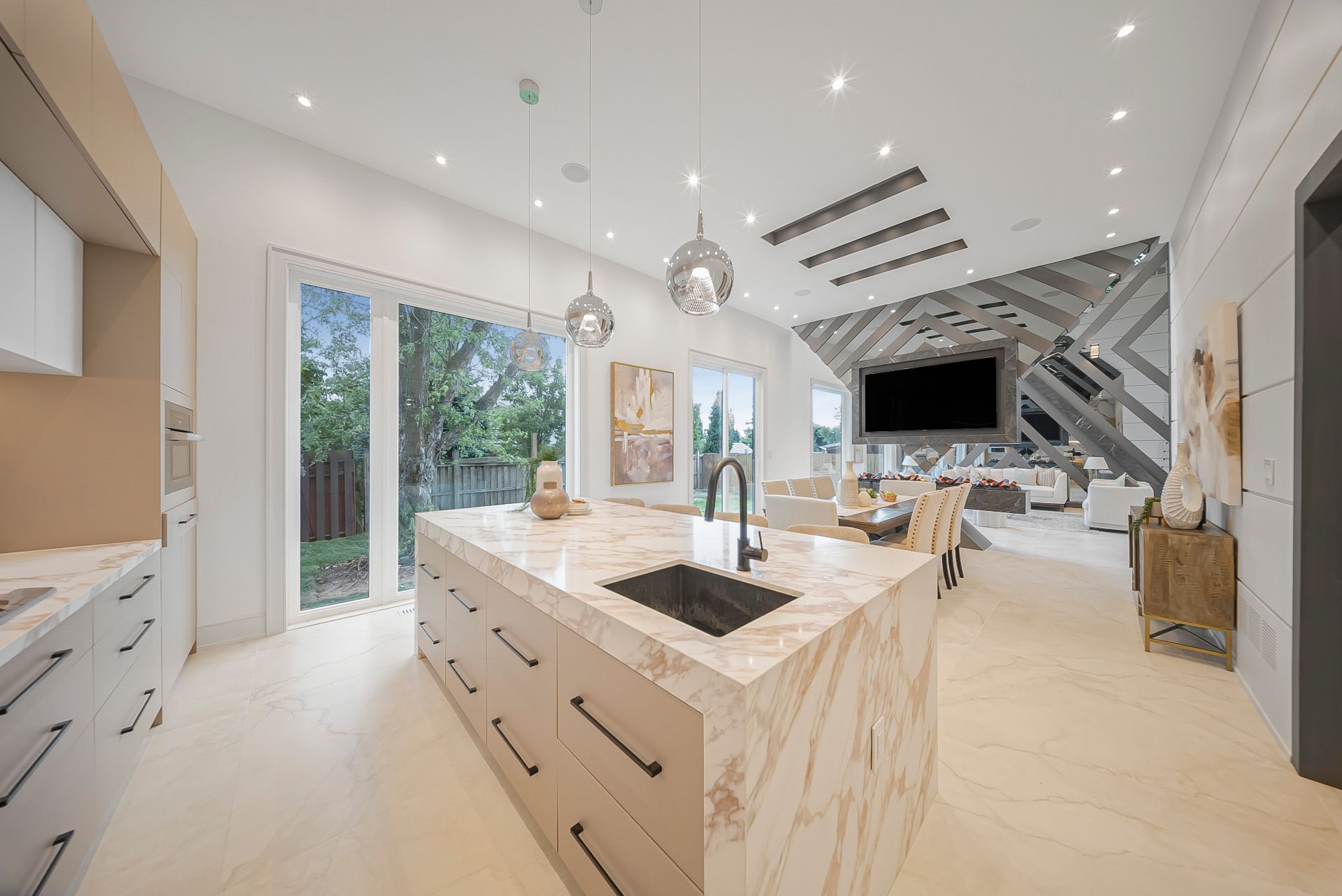 This newly built modern custom home offers over 5000 sqft. Of lavish living space. Whether you're commuting, enjoying the outdoors, or raising a family, this location on a quiet street of oakville offers the perfect balance of convenience and lifestyle. This elite modern home is design and built by zarina construction. As you step through the oversized front door, you're welcomed by a dramatic 23-ft foyer with heated italian tile flooring that flows through the main level. The main level features a private home office, an elegant living room with a stunning marble, wood, and mirror accent wall, and a breathtaking open-to-above family room. Anchored by a custom diamond-pattern feature wall and a double-sided dimplex fireplace, large windows, this space is the heart of the home -open, bright, and welcoming. The gourmet kitchen is a chefs dream, offering a spacious island, custom cabinetry, and built-in miele appliances. A separate spice kitchen keeps bold flavors contained and the main kitchen spotless. The layout flows seamlessly into a formal dining area with a walkout to the fully fenced backyard. Upstairs, you will find four generous bedrooms, each with its own ensuite bathroom featuring custom floating vanities, integrated sinks, heated tile flooring, and calming finishes. The primary suite is a luxurious retreat with a custom walk-in closet and a spa-like 5-piece ensuite with a freestanding tub, curbless shower, and dual vanities. A laundry room on this floor adds convenience. The finished basement offers 11. 5-ft ceilings, a bright open rec area, a second kitchen, two bedrooms with a shared bath, and for the ultimate movie night experience, there's a dedicated theatre room fully equipped with 4 dedicated speakers for a true cinematic experience. This home also includes 16 built-in speakers throughout. With a basement walkout and large windows bringing in natural light. This home is a reflection of modern luxury tailored to your lifestyle.