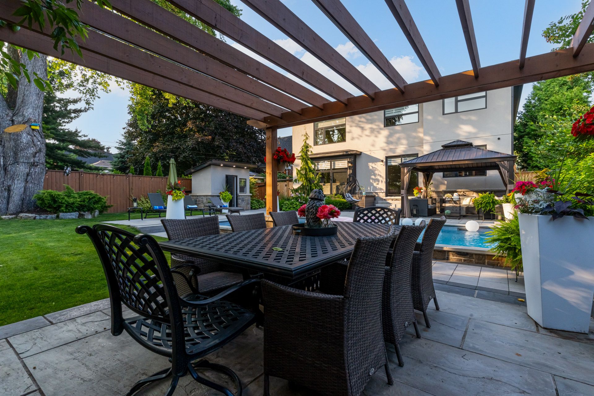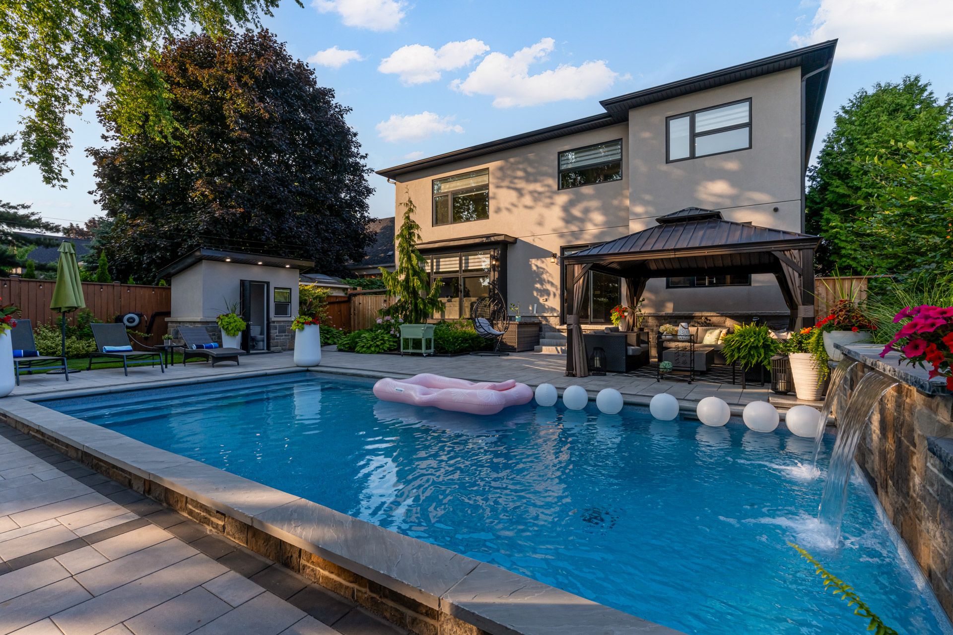 Luxury living in lakeview. Welcome to this custom-built masterpiece in the heart of applewood, where timeless design meets modern functionality. Set on a premium 58 x 129 lot, this stunning home offers over 4,000 sq ft of total living space, expertly crafted for both everyday comfort and unforgettable entertaining. Step inside to soaring ceilings, wide-plank hardwood floors, and sun-filled, open-concept living. The chef-inspired kitchen features high-end appliances, quartz countertops, a large island, and seamless flow into the spacious living and dining areas, perfect for hosting or relaxing with family. Upstairs, find 4 generously sized bedrooms, each with custom closets and spa-inspired bathrooms. The primary suite is a true retreat, featuring a walk-in closet and a luxurious ensuite. The fully finished basement boasts 9 ceilings, a large rec room, additional guest space or office, and a second kitchen or bar, offering flexible living options. Outside, the expertly designed backyard oasis includes a sleek in-ground pool, professional landscaping, and a fully serviced outdoor cabana with change room and bathroom, creating a true resort experience in your own backyard. Located in a family-friendly neighbourhood with top-ranked schools, easy access to major highways, transit, parks, and shopping, this home offers exceptional value and lifestyle. Don't miss your chance to own a true gem in one of mississauga's most coveted communities.