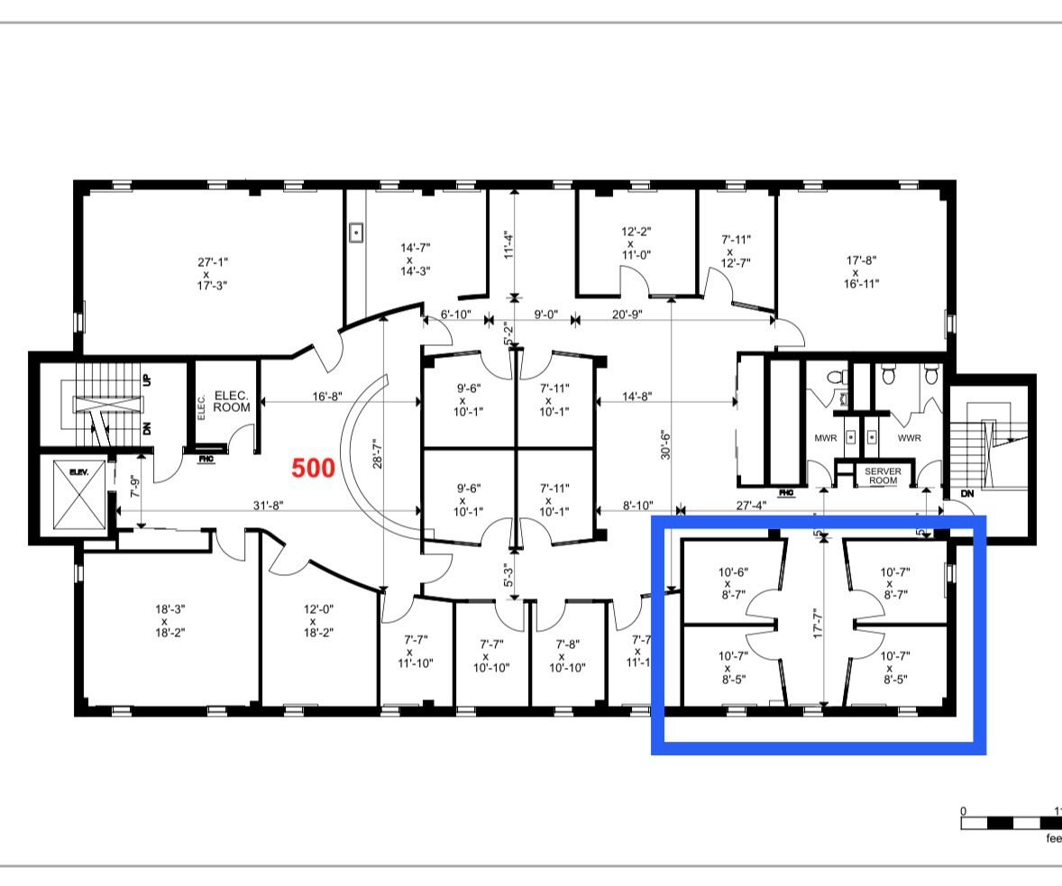 • Rare chance to rent four spacious, furnished corner offices on the top floor.