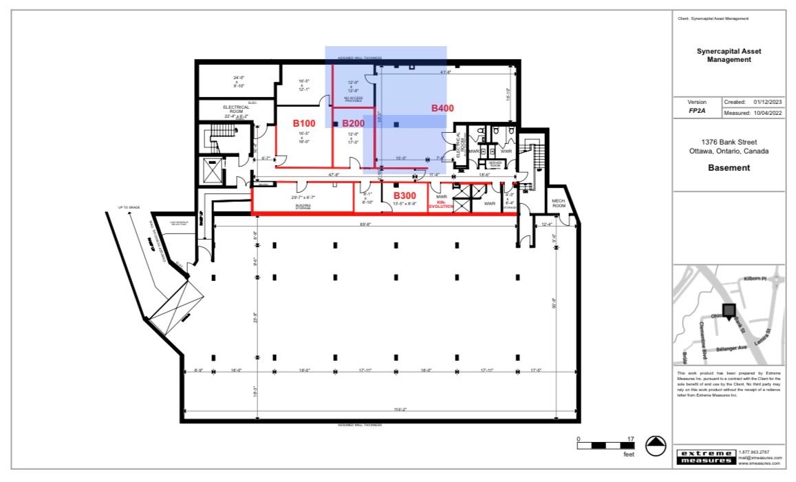 Approx 625 rentable square feet of turn-key office space in basement of well-managed office building! Currently divided into 2 large rooms forming an "l" shape, and can be divided further. Landlord can provide/organize desired fit-up at cost, pro-rated over the lease term! Space is currently used as physiotherapy/osteopathy/rmt wellness practitioners but has wide variety of applications. See marked-up floorplans in tandem with the following description: the proposed new space crops some of the (current) b400 open floor plan and closes it off for owner personal use; walls erected to divide the new space and doors opened between spaces as tenant requires. There is some flexibility re: placement of walls; possible inclusion of all or some gym equipment in the rental. Equipment is not for sale unless tenant is leasing space. All utilities and operating expenses included in the rent - fully gross lease! Escalations of $50/mo/year. Excellent location close to 417, riverside drive,bank street, and billings bridge shopping plaza. Building is home to professional tenants such as law offices, mental wellness practitioners, not-for-profit, technology, etc. Video walk through is available upon request.