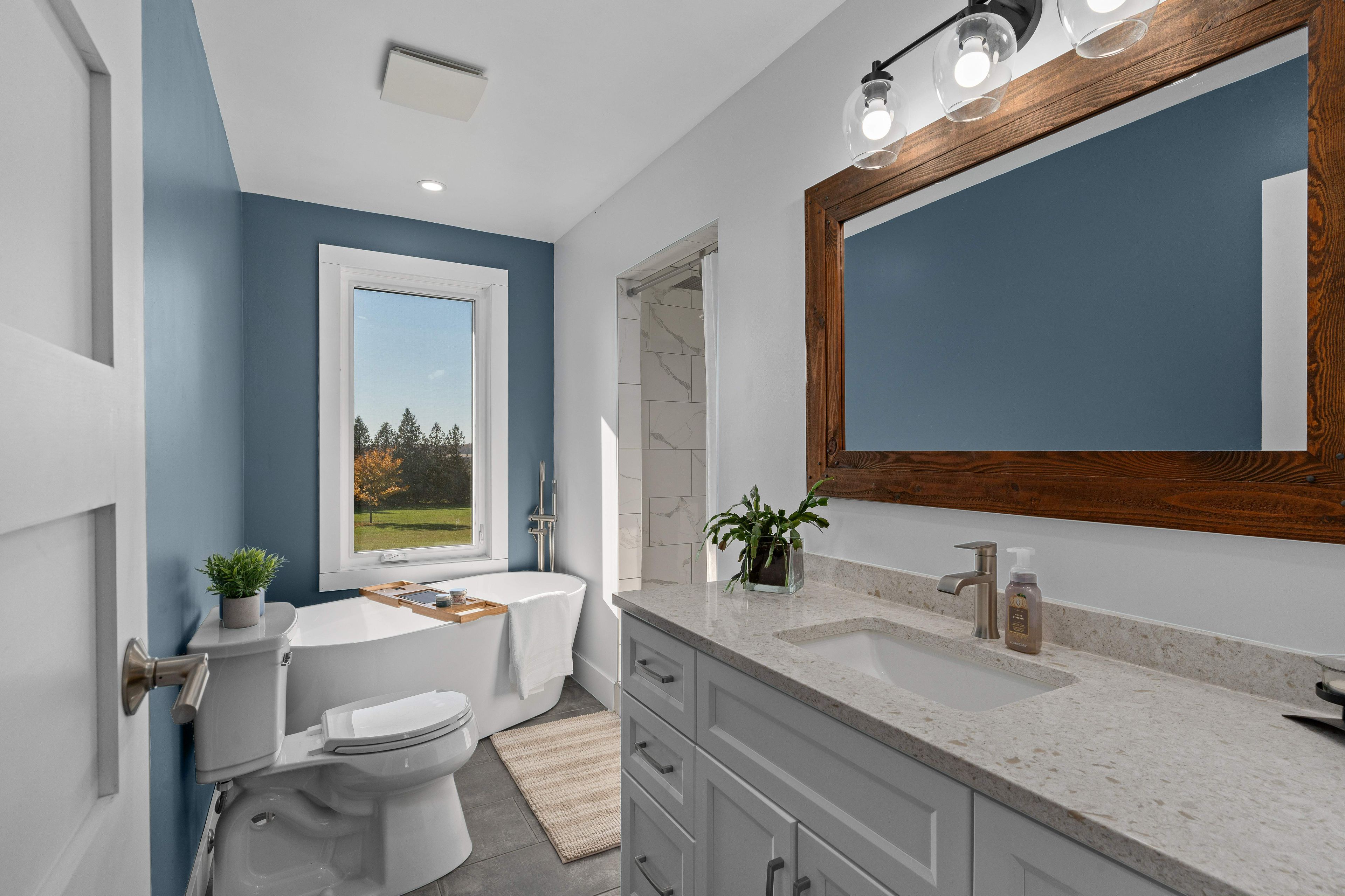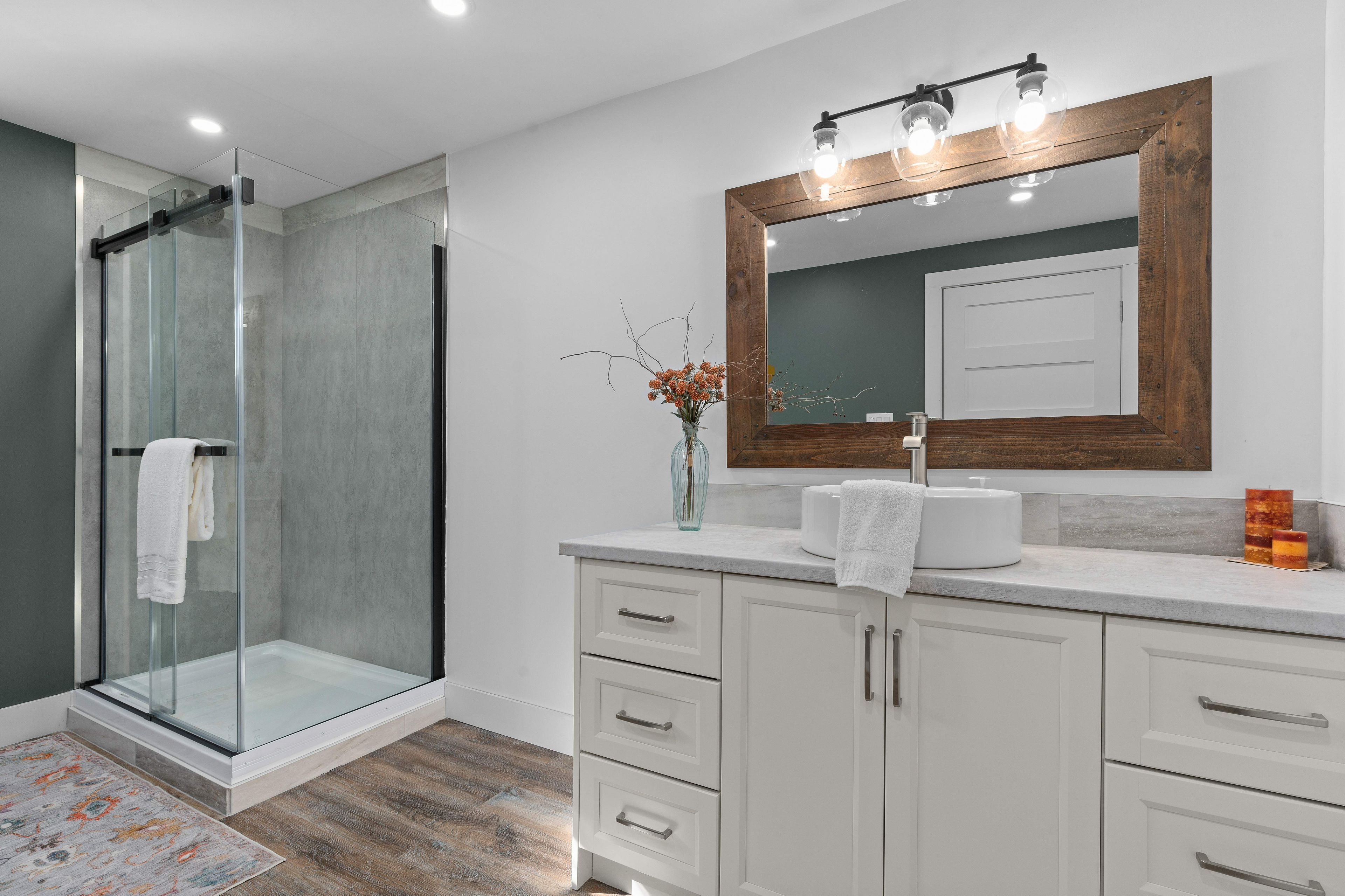 • Upgraded features include radiant heated bathroom floors and a walk-in cedar closet.