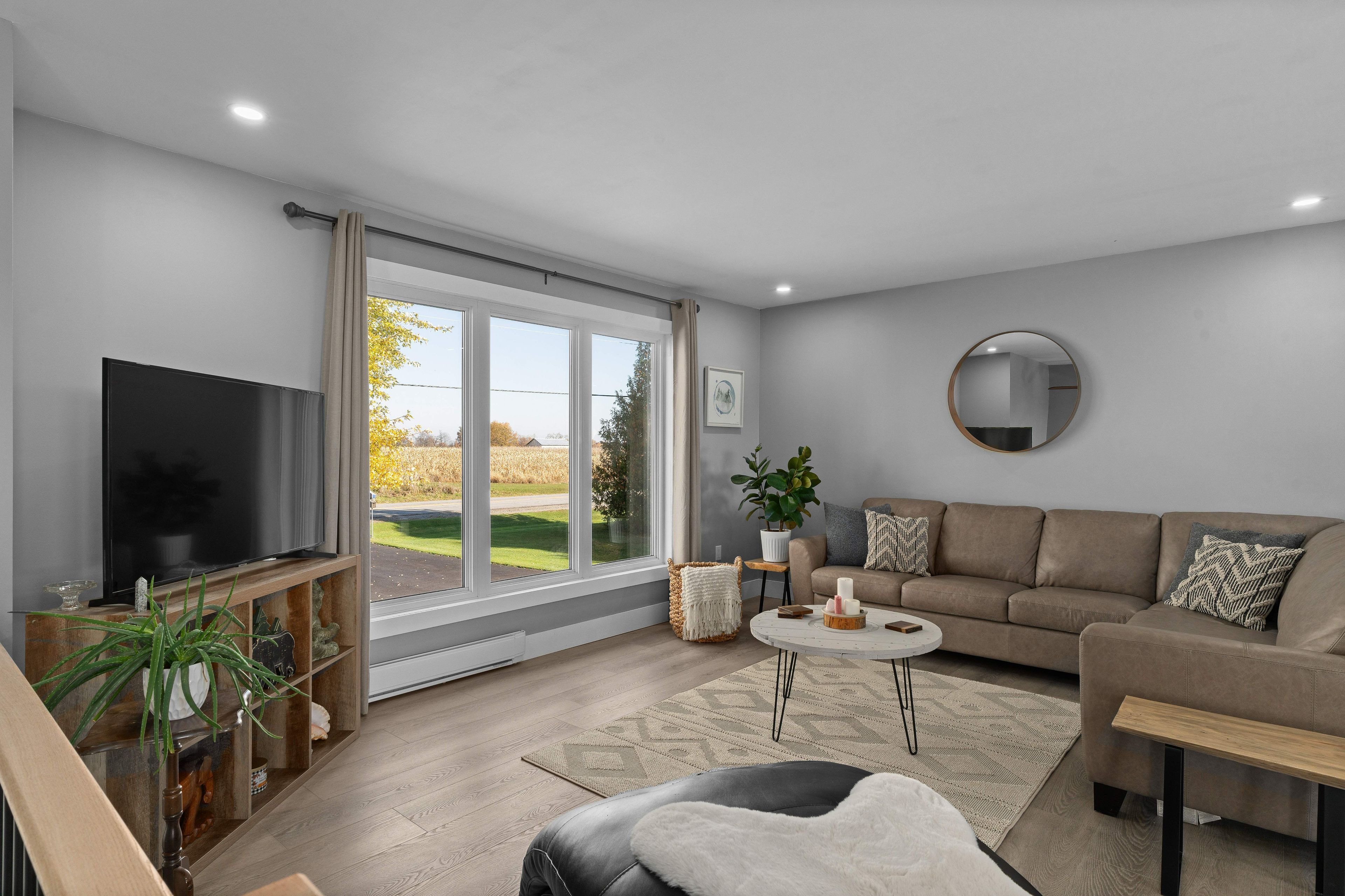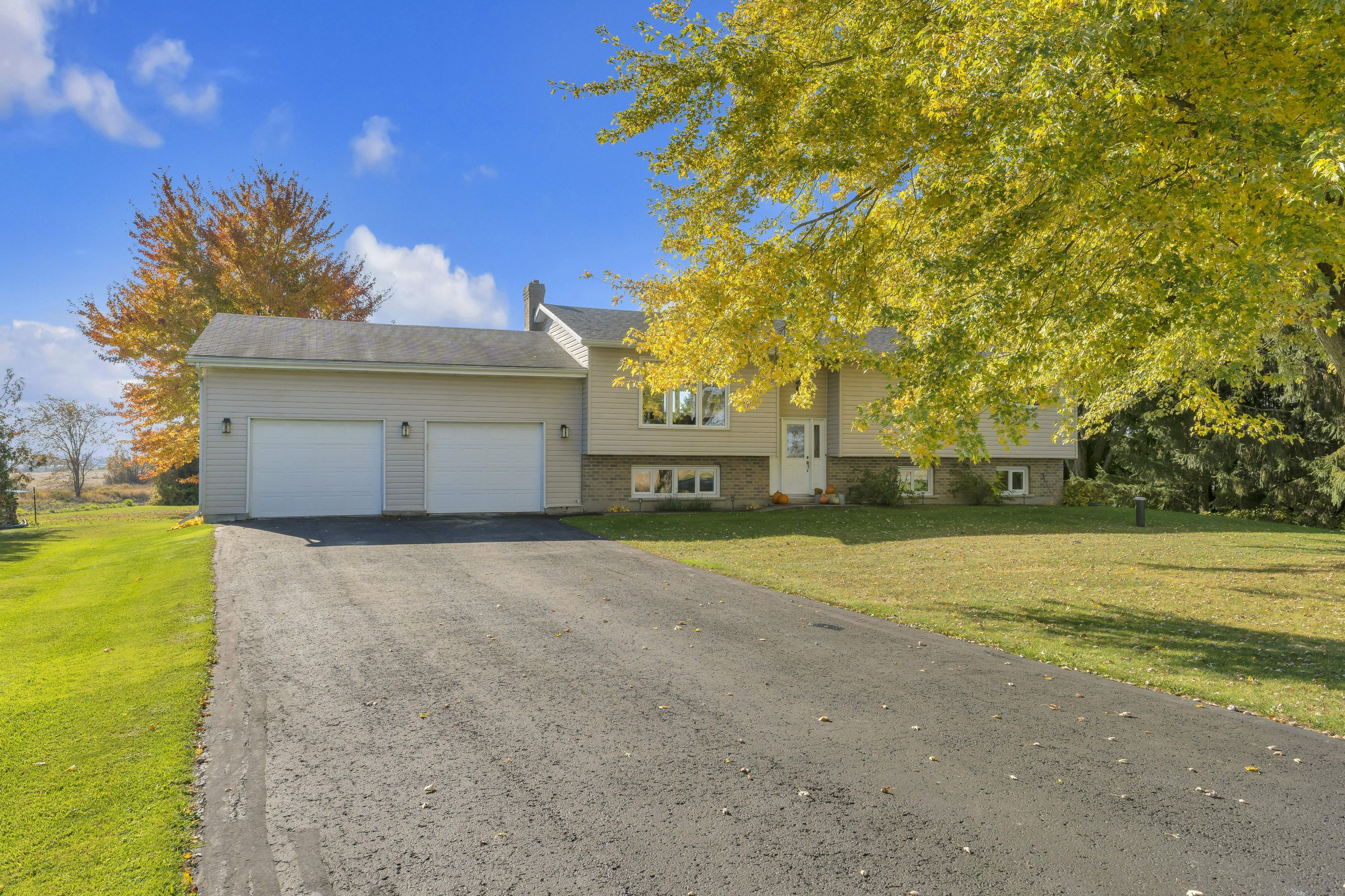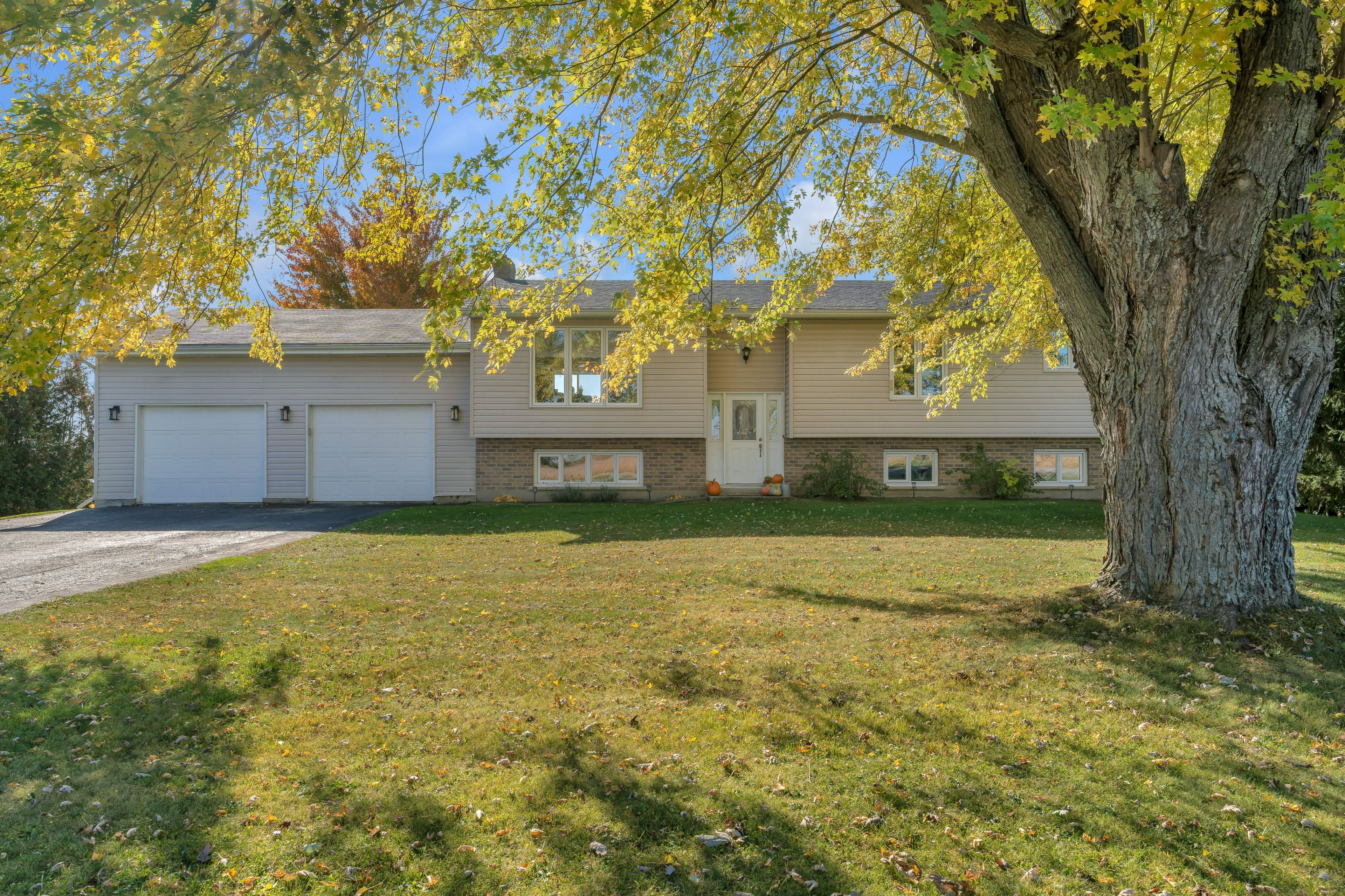 Situated on a peaceful 1. 03 acre parcel of land, this magazine-worthy and meticulously updated raised bungalow, is only a short drive into gananoque and minutes away from marble rock conservation area, surrounded by fields and open pink skies. Discover open concept living at its best as it flows through the large living room, into the dining area which opens onto new composite back decks and a south facing fieldscape, all framed in by a neatly guarded row of cedars. Back inside, an 8' quartz island with seating, stainless appliances and kitchen cabinets for days. Follow the hallway down to three large bedrooms with built-in closets and a chic 4 pc. Bathroom with radiant heated floors, a free-standing tub with a floor-mounted faucet and a divine rainfall shower with enough space for all your friends... If that's your thing. On those long chilly nights, gather 'round the crackling fire in the family room and fetch more wood up a separate walk-up entrance into the oversized two car garage with more additional room to house all your toys. On the way down the hallway, you'll pass by a heavenly smelling walk-in cedar closet, a large fourth bedroom with an additional walk-in closet and another show stopping 3 pc. Bathroom with a fully glassed in shower. Too many updates to mention, this home has had no surface untouched. Heat pump (2022 heating/cooling). Sump pump (2024), water softener (2024), well pump (2019), patio door (2024). Nothing to do but unpack the truck, kick off your boots and start up your zach bryan playlist. Welcome home!