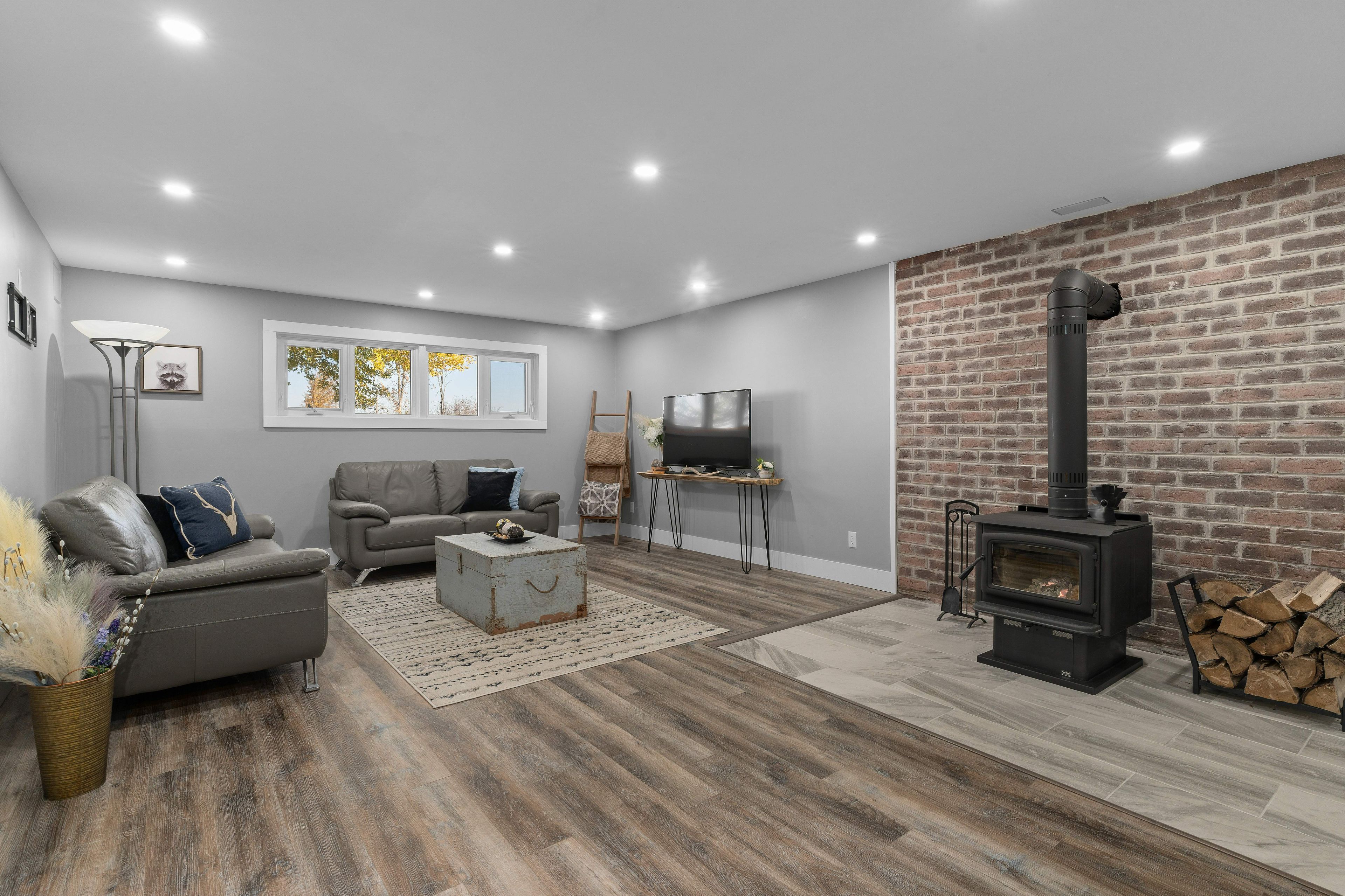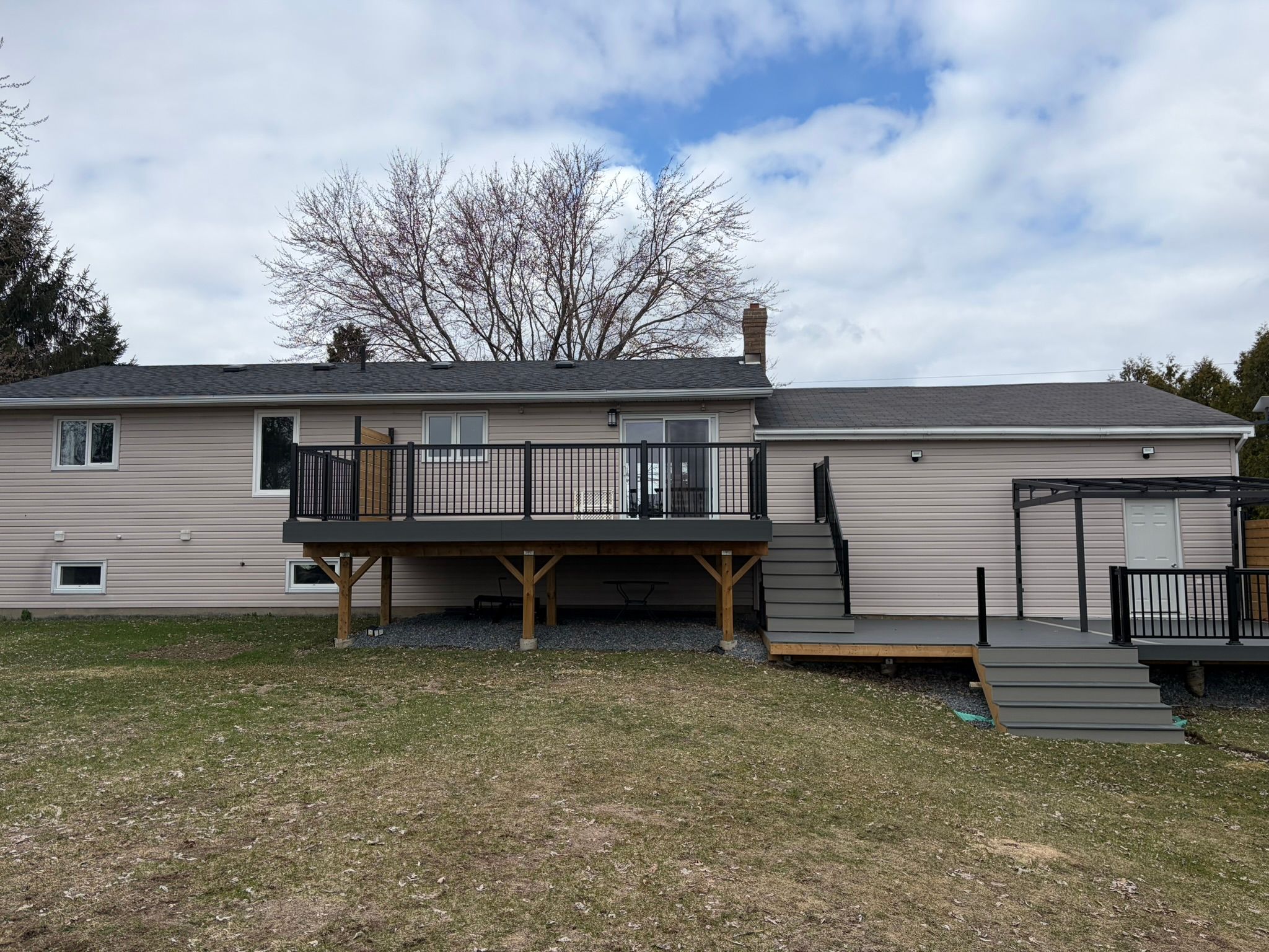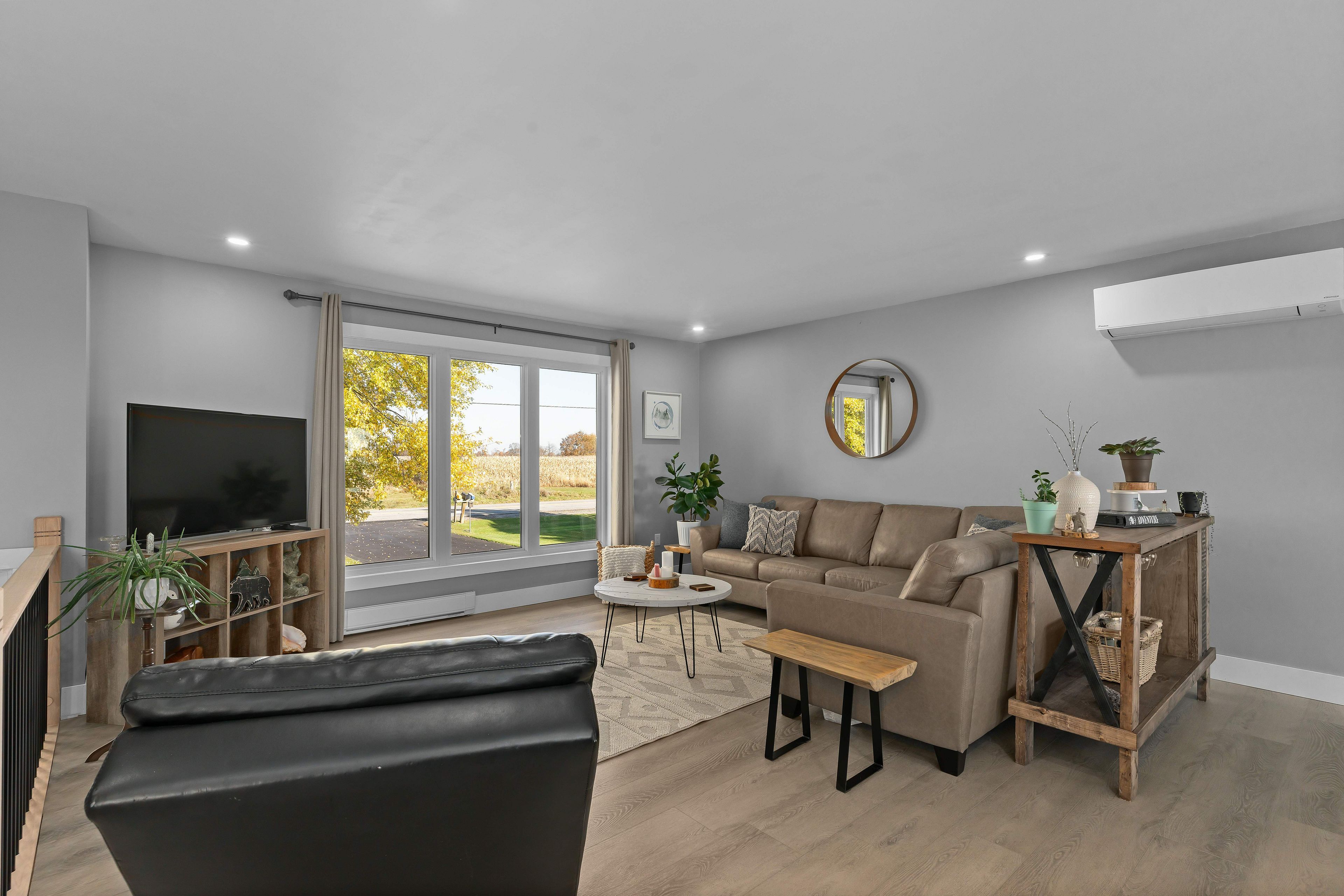 Situated on a peaceful 1. 03 acre parcel of land, this magazine-worthy and meticulously updated raised bungalow, is only a short drive into gananoque and minutes away from marble rock conservation area, surrounded by fields and open pink skies. Discover open concept living at its best as it flows through the large living room, into the dining area which opens onto new composite back decks and a south facing fieldscape, all framed in by a neatly guarded row of cedars. Back inside, an 8' quartz island with seating, stainless appliances and kitchen cabinets for days. Follow the hallway down to three large bedrooms with built-in closets and a chic 4 pc. Bathroom with radiant heated floors, a free-standing tub with a floor-mounted faucet and a divine rainfall shower with enough space for all your friends... If that's your thing. On those long chilly nights, gather 'round the crackling fire in the family room and fetch more wood up a separate walk-up entrance into the oversized two car garage with more additional room to house all your toys. On the way down the hallway, you'll pass by a heavenly smelling walk-in cedar closet, a large fourth bedroom with an additional walk-in closet and another show stopping 3 pc. Bathroom with a fully glassed in shower. Too many updates to mention, this home has had no surface untouched. Heat pump (2022 heating/cooling). Sump pump (2024), water softener (2024), well pump (2019), patio door (2024). Nothing to do but unpack the truck, kick off your boots and start up your zach bryan playlist. Welcome home!