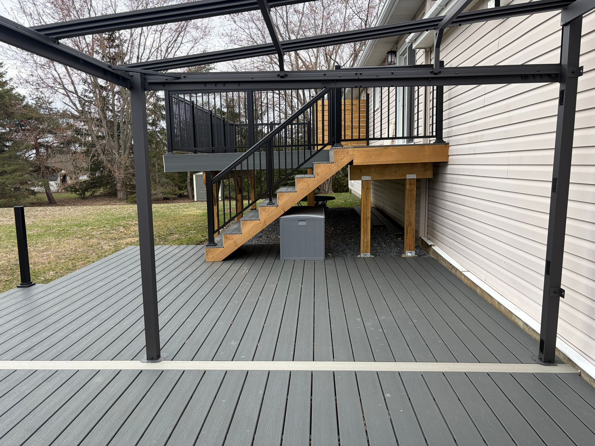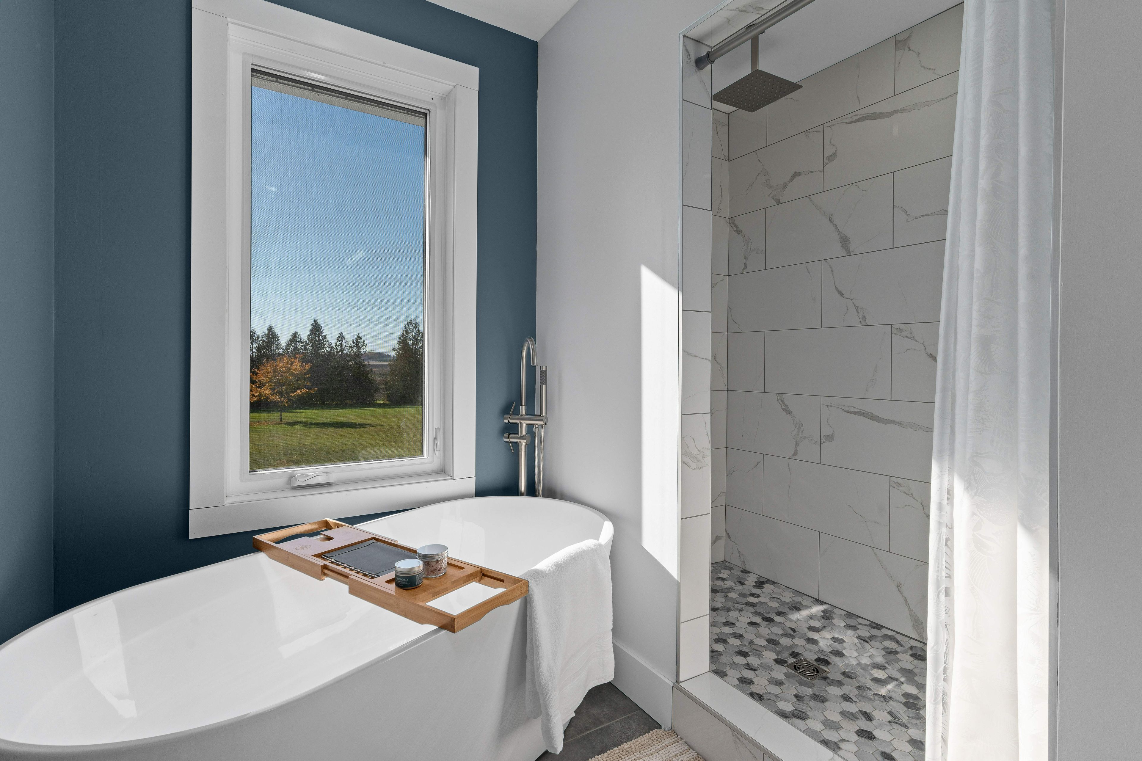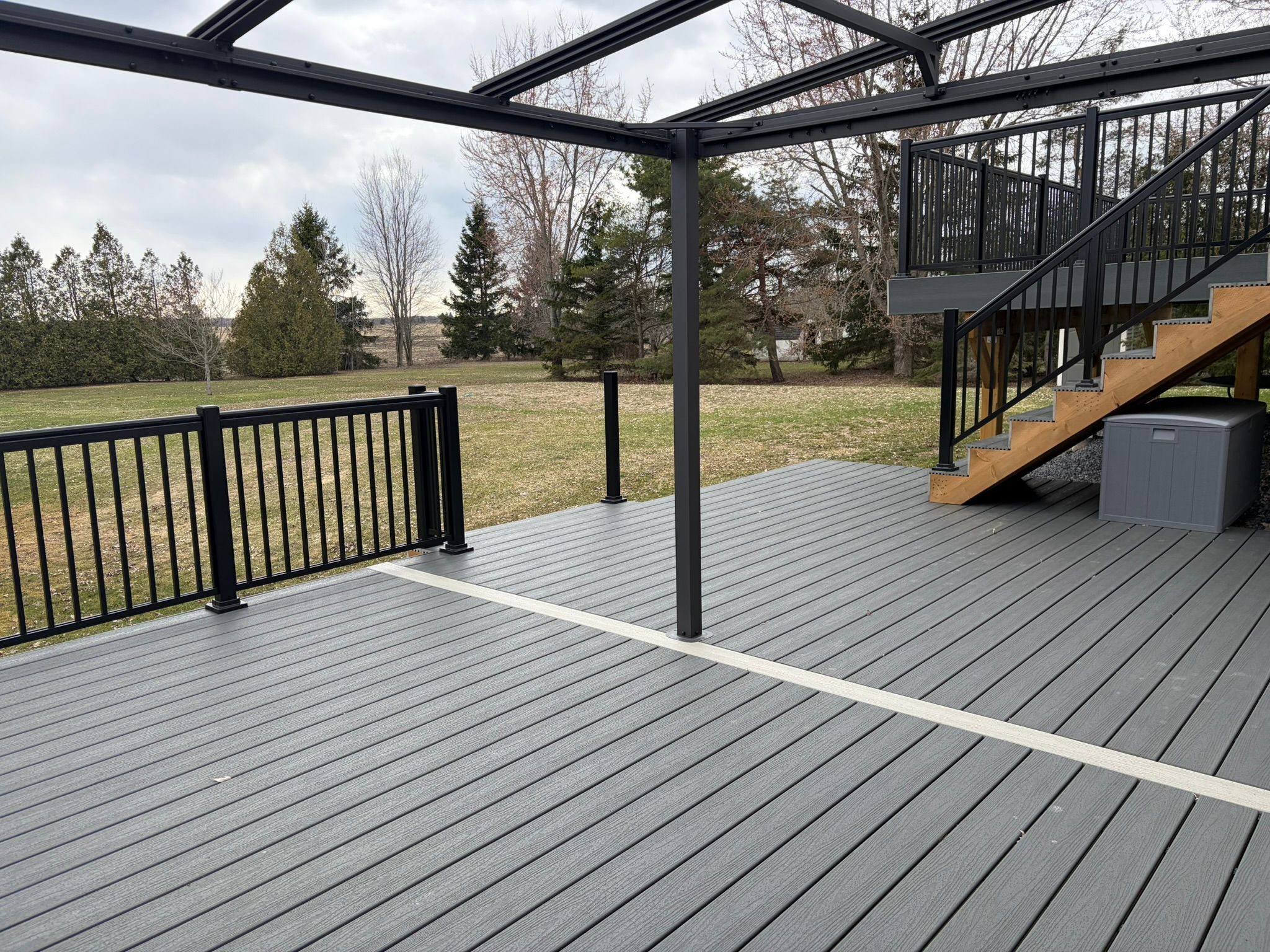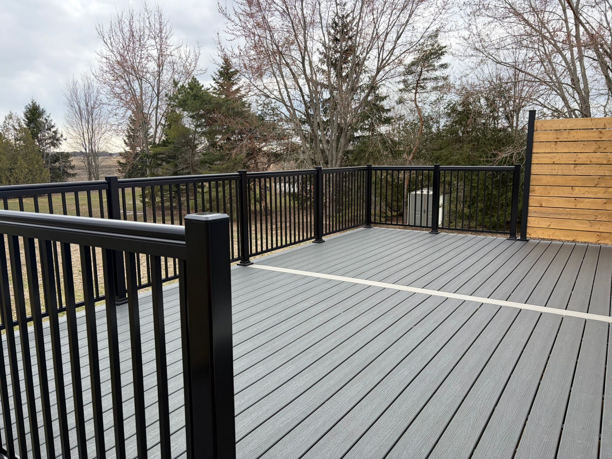 • New composite decks overlook serene fields surrounded by lush cedars.