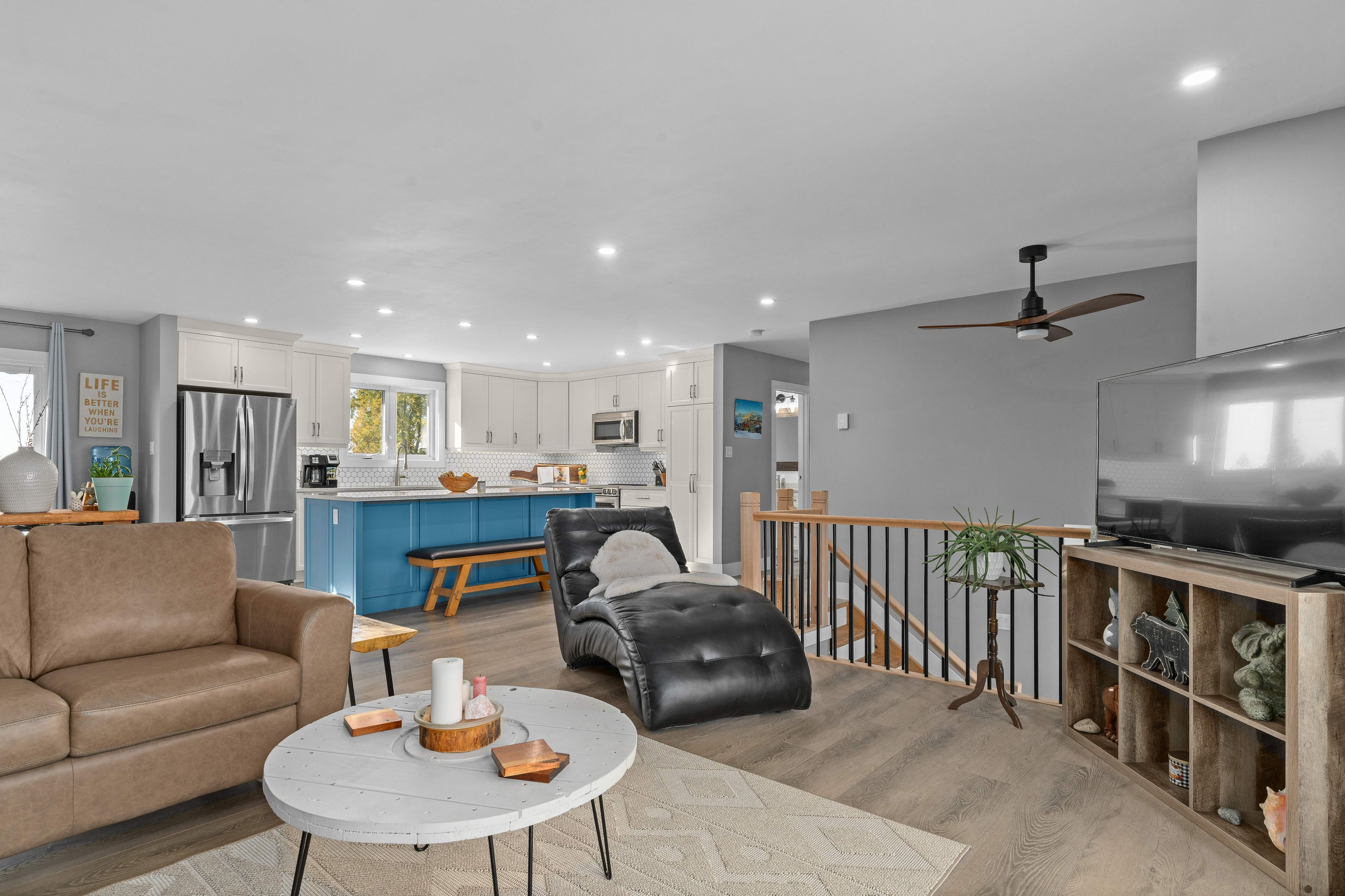 • Open concept living space with large rooms and modern finishes throughout.