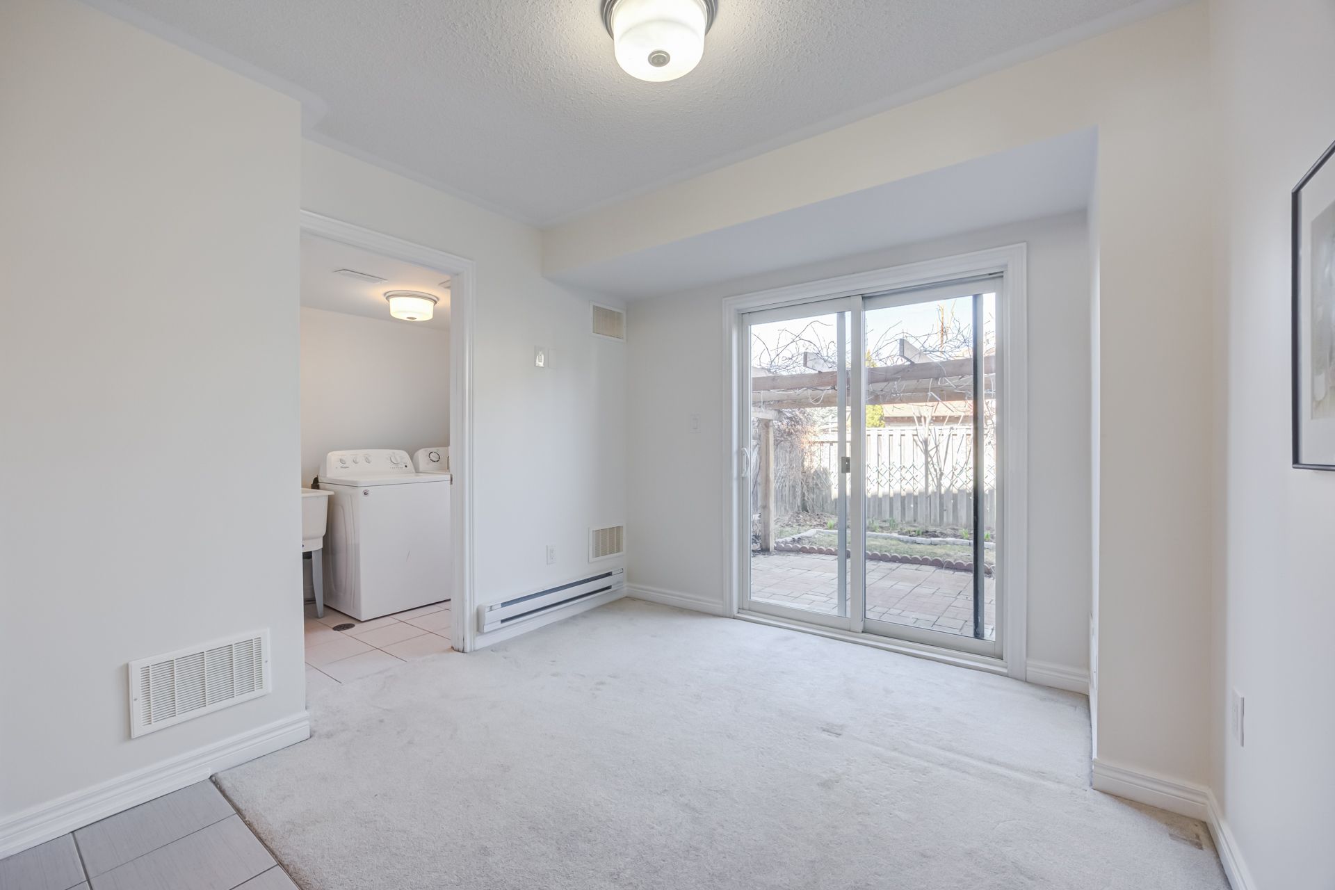 Located in centre of east credit neighbourhood, this bright, all above-ground freehold townhouse is perfect for first time buyers or a startingfamily. Ideally positioned overlooking the park, this home offers a peaceful setting while the front entrance conveniently faces visitor parking foreasy access. The heart of the home is soaring 9-foot ceilings on the main floor, its modern, family-friendly kitchen, complete with a stylishbacksplash, centre island, ample pantry space, sleek under-cabinet lighting, and a cozy eat-in area. All brand-new appliances add both style andfunctionality. Retreat to the generous primary suite, featuring a walk-in closet and a spa-like 4-piece ensuite. Two additional well-sized bedroomsshare a 4-piece bathroom. The ground-floor level offers a walk-out to a private, fully fenced backyard oasis, complete with a pergola beautifullycovered by mature grapevines-perfect for relaxing or entertaining. The entire home has been freshly painted and offers abundant storage spacethroughout. Roof has been replaced in 2022. Enjoy low-maintenance living with just a $102/month potl road maintenance fee, plus plenty of visitor parking nearby. Perfectly located in a prime area near schools, steps to the park, trails, vibrant shopping, easy transit, and major highways. Don't miss this incredible gem!