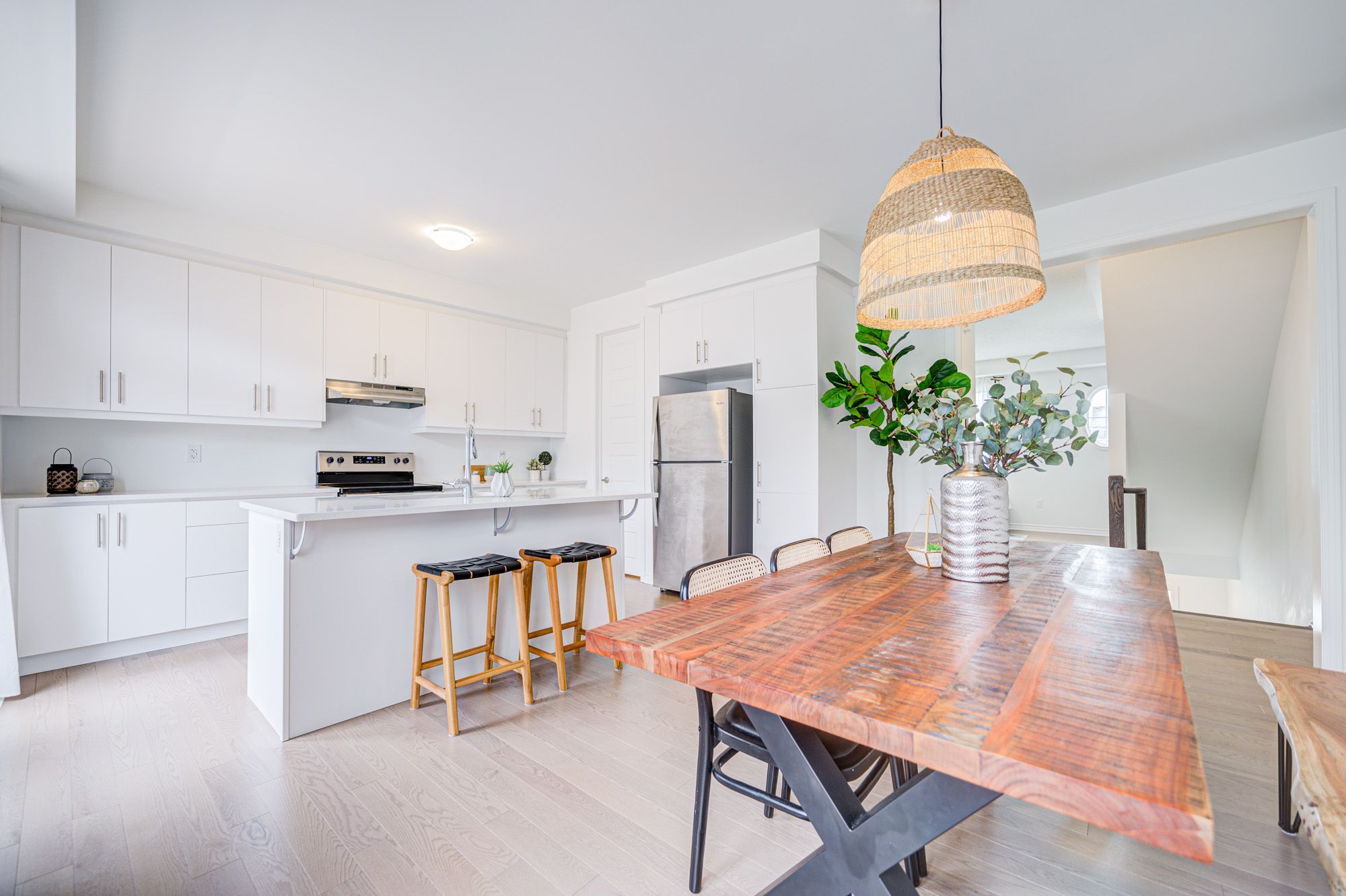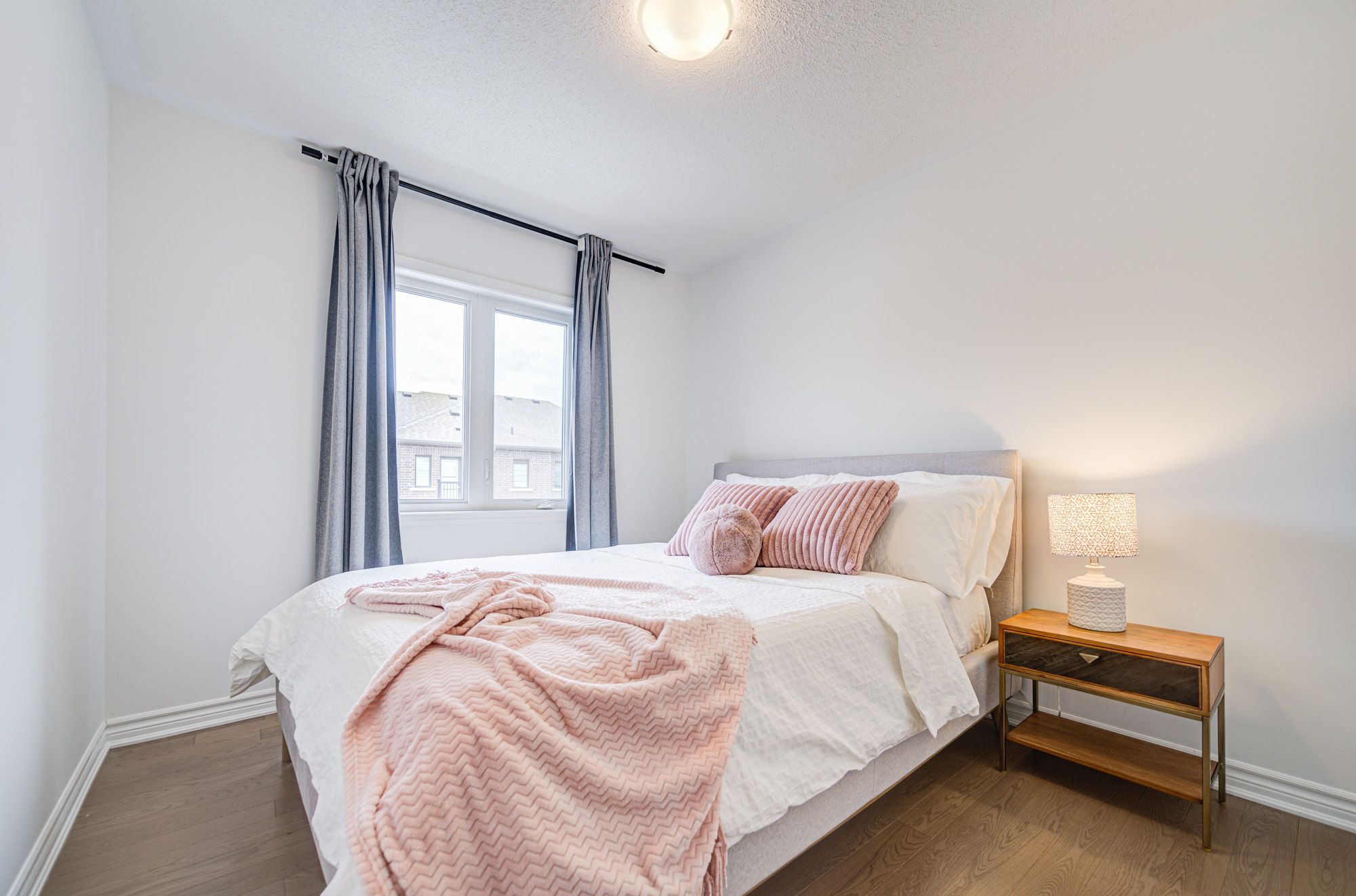 Mattamy townhouse located in the desirable oakville community with all desirable facility nearby! 9 ft ceilings on main & 2nd floors, creating an open & spacious feeling. Three large sized bdrms, primary bdrm with ensuite baths, large walk-in closet, juliette balcony, frameless glass shower. Morden , elegant kitchen w/ island bar, granite countertops, walk in pantry for extra space. High end hardwood floors through-out. Kitchen and dinning area w/o to spacious balcony, ideal for outside entertainment. Stained oak stairs, pot lights... Exceptional quality & meticulous attention to details. Double car garage ( access to main flr) with rear lane drive way, 3 cars parking together with driveway , 5 minutes walk to oakville hospital, close to top schools, public transit, parks, plaza, shopping centre. Mins to sheridan college, hwy 403,407 & qew.
