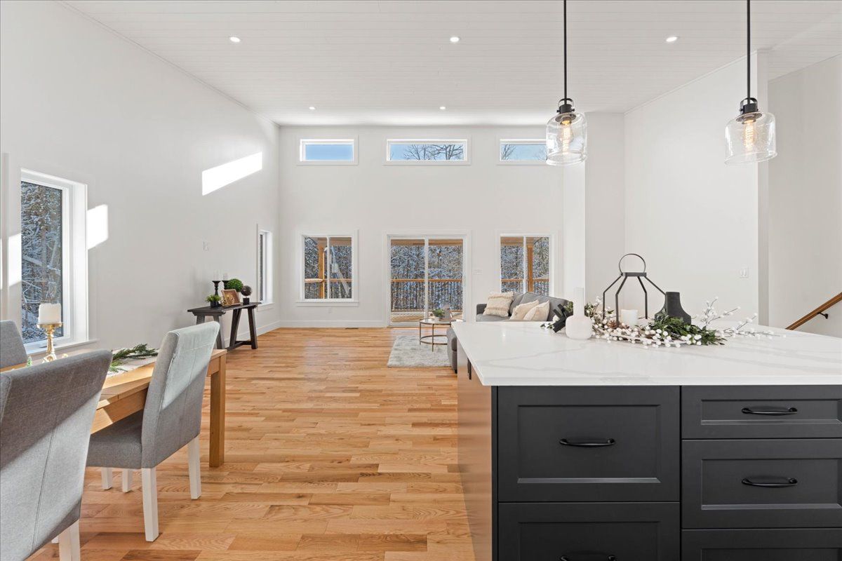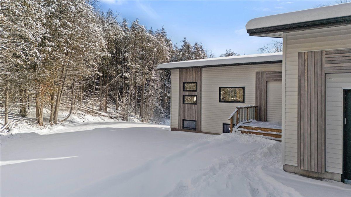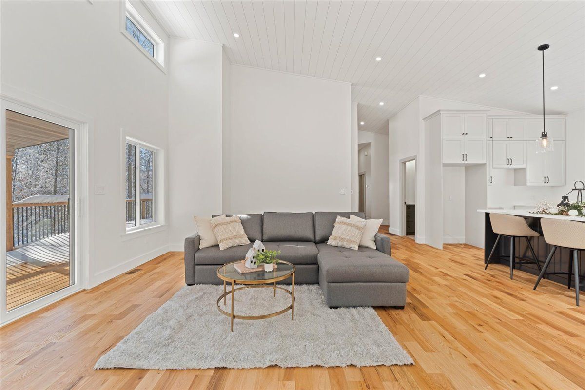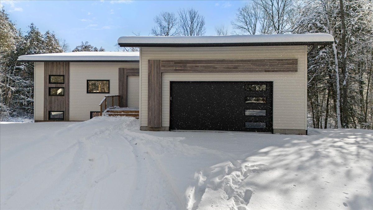 Welcome to this bright, spacious contemporary bungalow, beautifully set on a stunning 1. 93-acre wooded lot in one of the area's most sought-after neighbourhoods. This brand-new build blends modern design with quality craftsmanship and the peaceful charm of a private, tree-lined setting. The open-concept layout features soaring vaulted ceilings and hardwood flooring throughout the main level. Large windows fill the home with natural light, while the spacious living and dining areas flow seamlessly into the kitchen and out to a covered rear deck, the perfect place to relax or entertain while surrounded by nature. The home offers 2 bedrooms and 2 bathrooms, including a luxurious primary ensuite, with a third bathroom already roughed-in in the basement. The full walkout basement provides excellent potential for additional living space, hobbies, or storage as your needs evolve. You'll also appreciate the bright and spacious attached two-car garage, which offers convenience and extra room for storage or workspace. Move-in ready and backed by a full tarion warranty, this home is a rare opportunity to enjoy modern country living in a peaceful, wooded setting. If a modern country hideaway is your vibe, you've just found it.