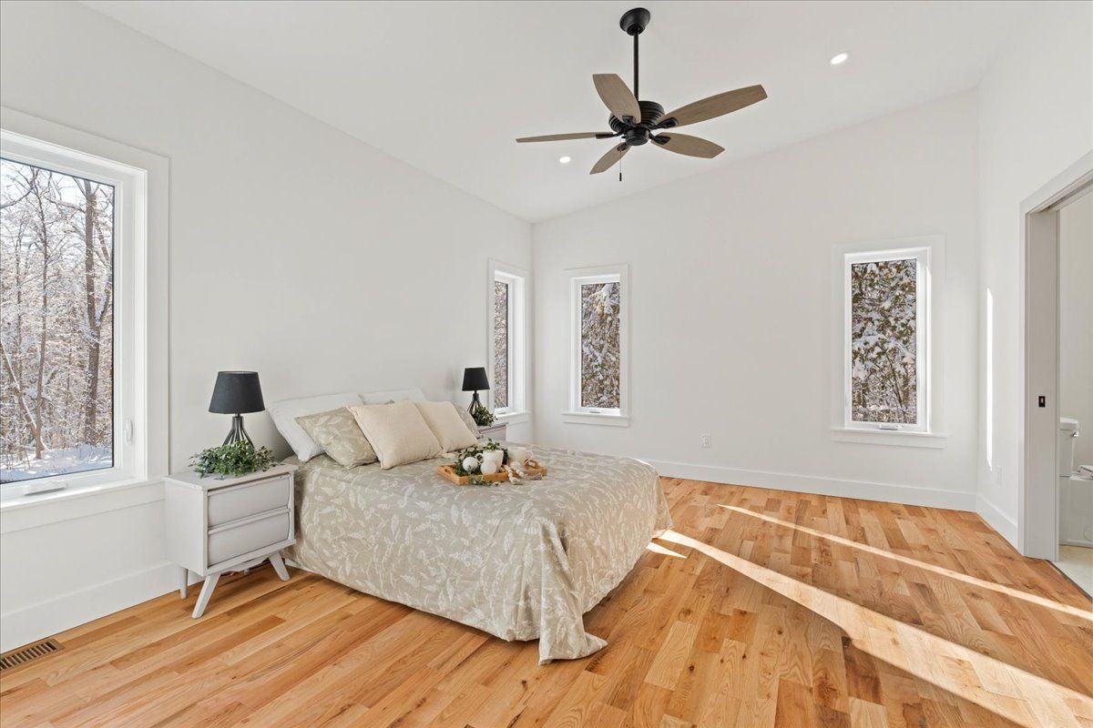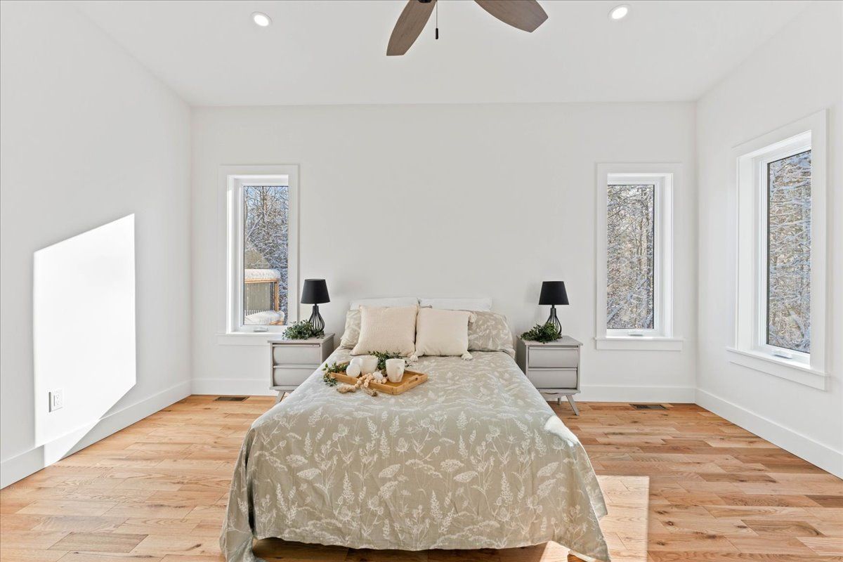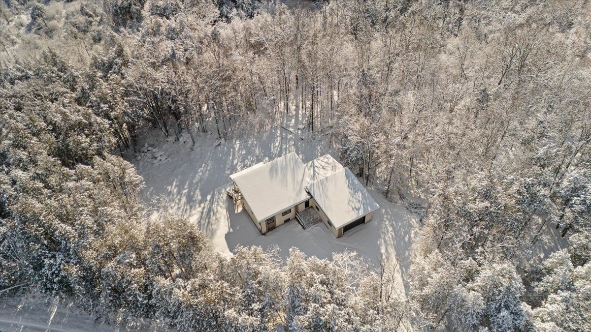 • Bright and spacious contemporary bungalow on a serene 1.93-acre wooded lot.