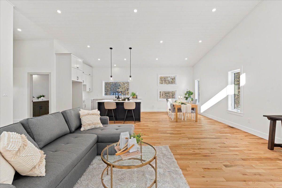 • Open-concept layout with vaulted ceilings and abundant natural light.
