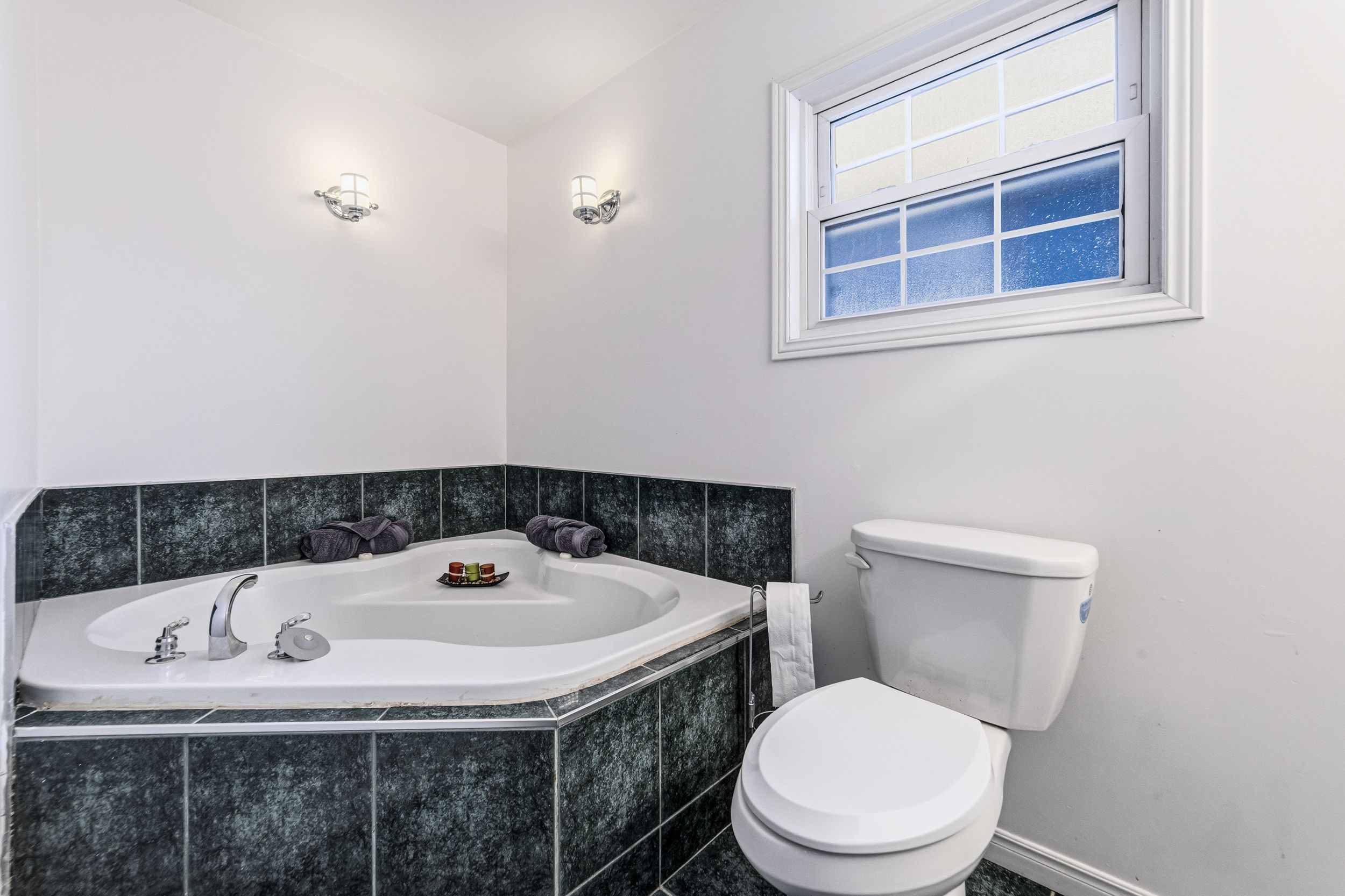 • Generous primary bedroom with a relaxing jacuzzi tub in the bathroom.