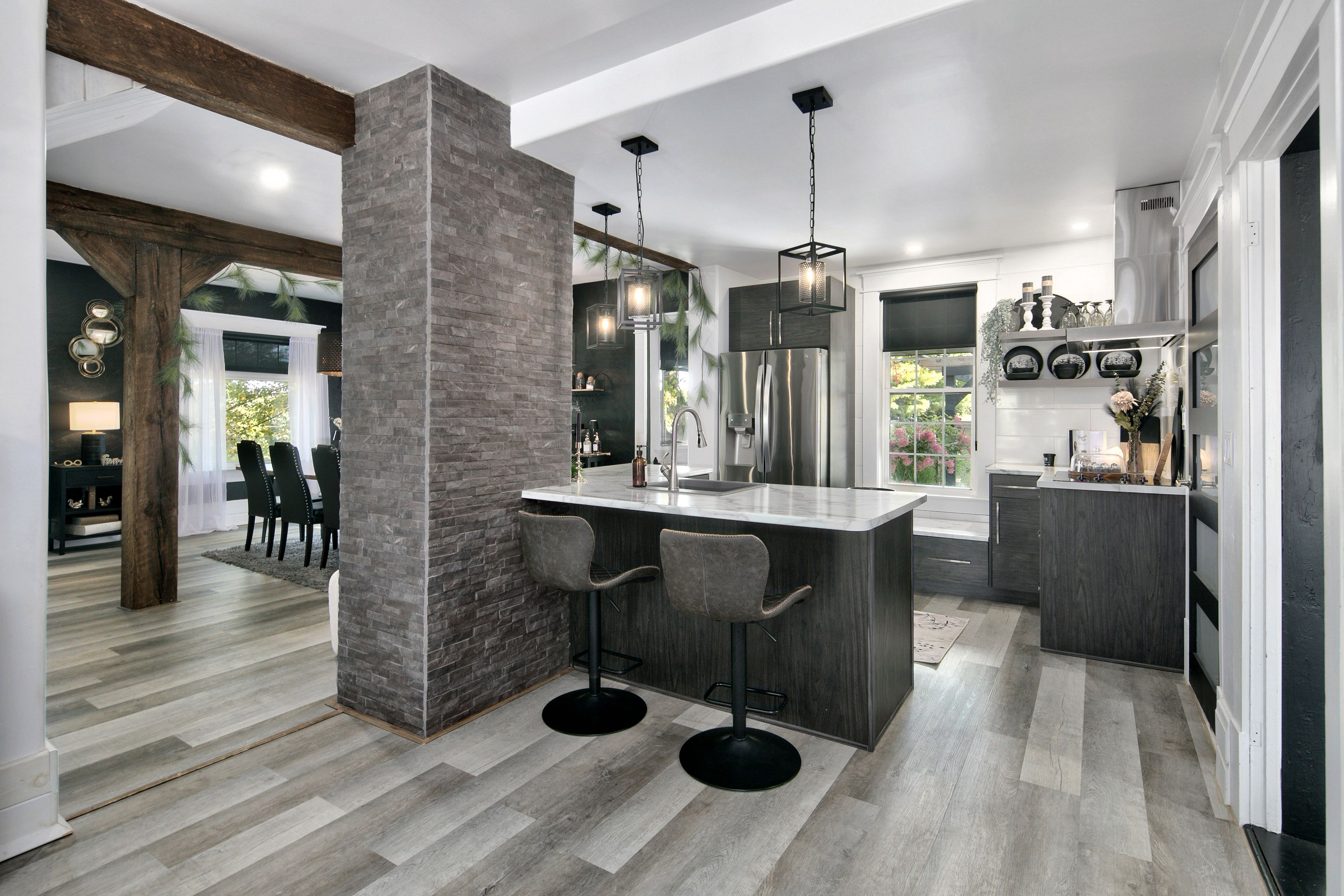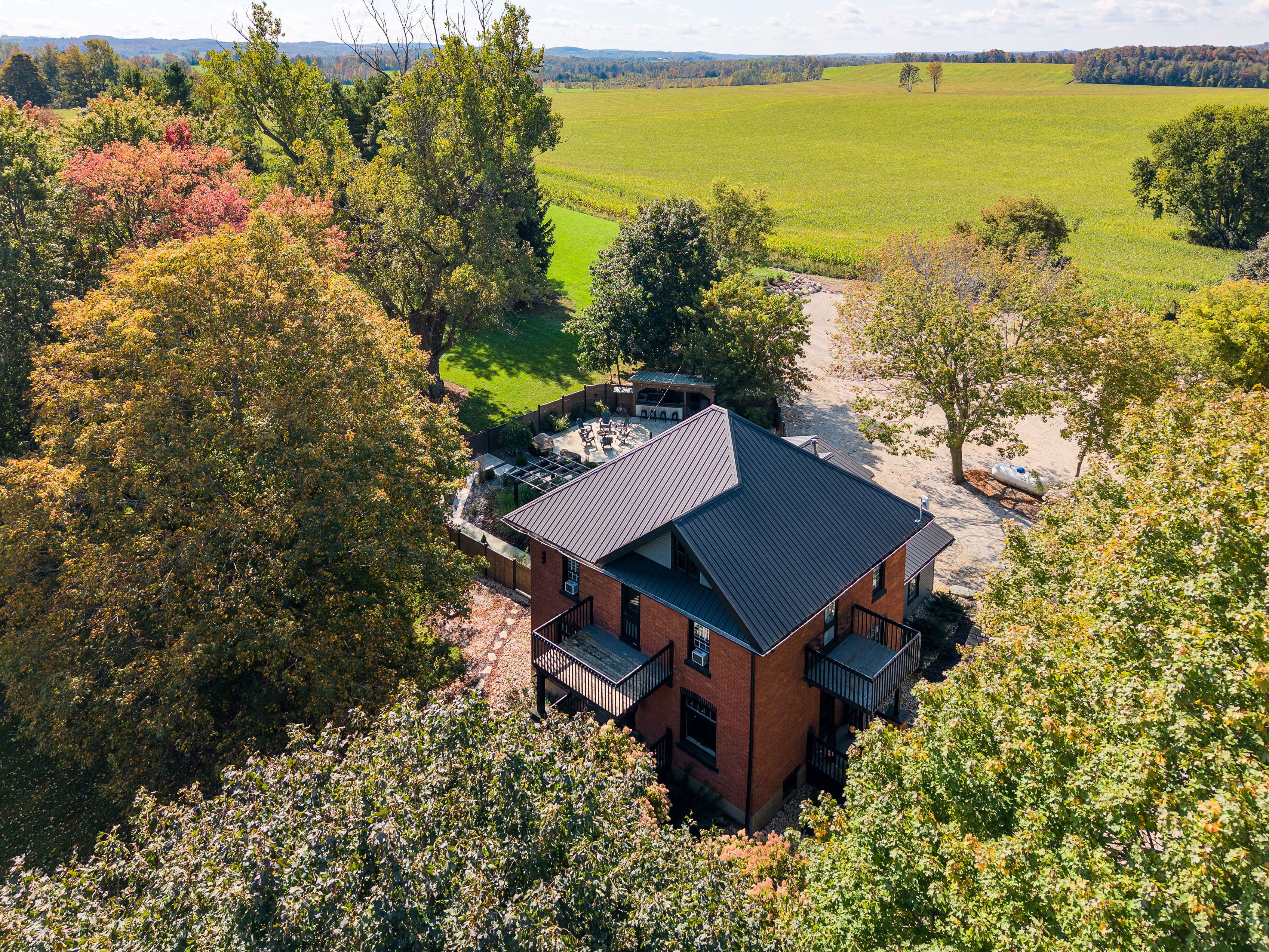 • Renovated century home on a private 6-acre lot with countryside views.