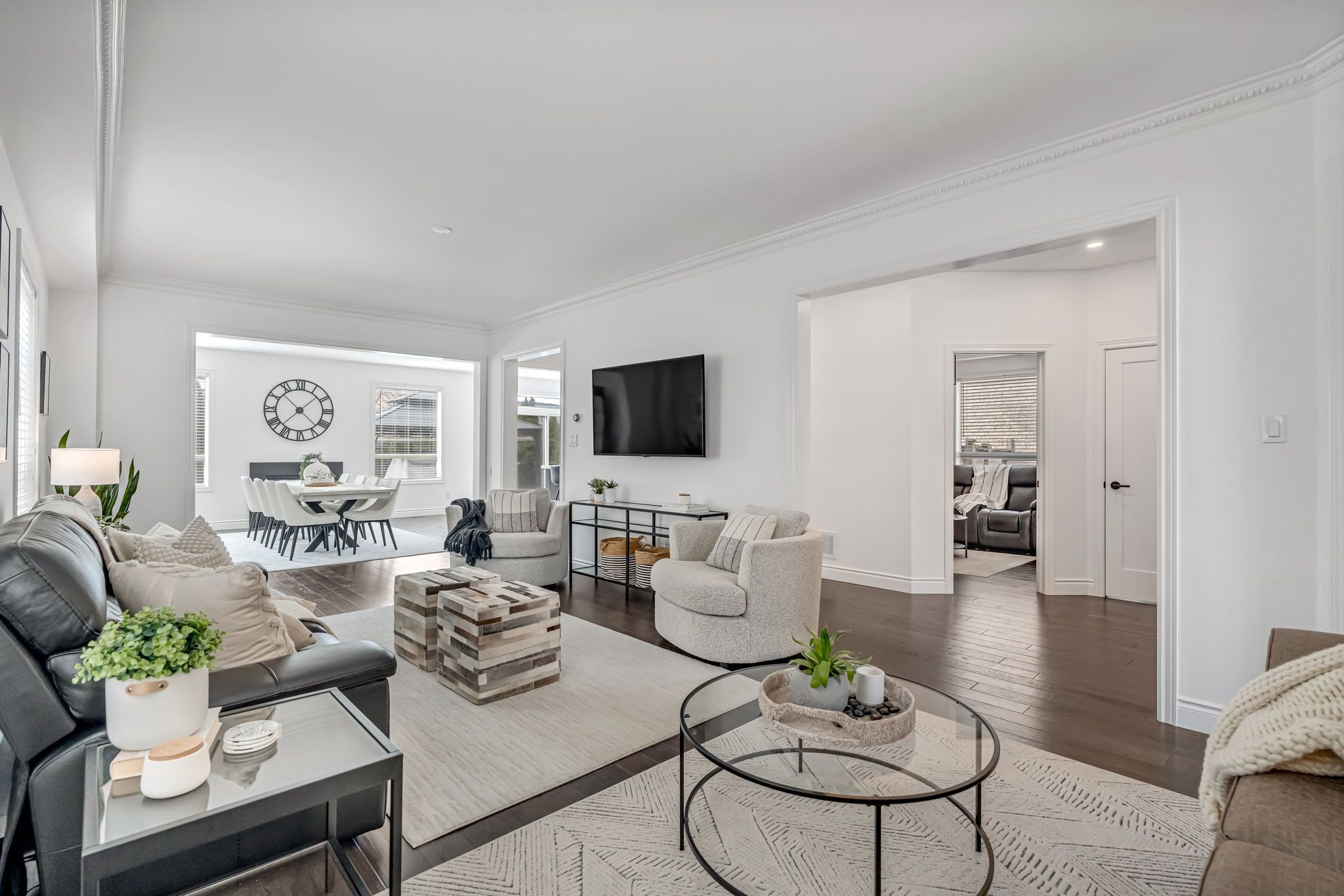 Completely renovated and truly turnkey in sought-after west oak trails. Offering over 3,000 sqft above grade plus a finished basement with a dedicated soundproof home theatre, this 4 bedroom plus main floor den/office, 3. 5 bathroom home delivers exceptional space, style, and functionality for modern family living. The redesigned main level showcases a striking quartz kitchen with a 10-foot island, sleek cabinetry, and seamless " engineered hardwood throughout. Upstairs, the spacious primary retreat features a renovated ensuite, and one of the secondary bedrooms includes the rare advantage of its own private ensuite - ideal for teens, guests, or multi-generational living. Professionally landscaped with a natural stone front porch and concrete walkways. Walking distance to forest trail public school, ranked #1 by the fraser institute.