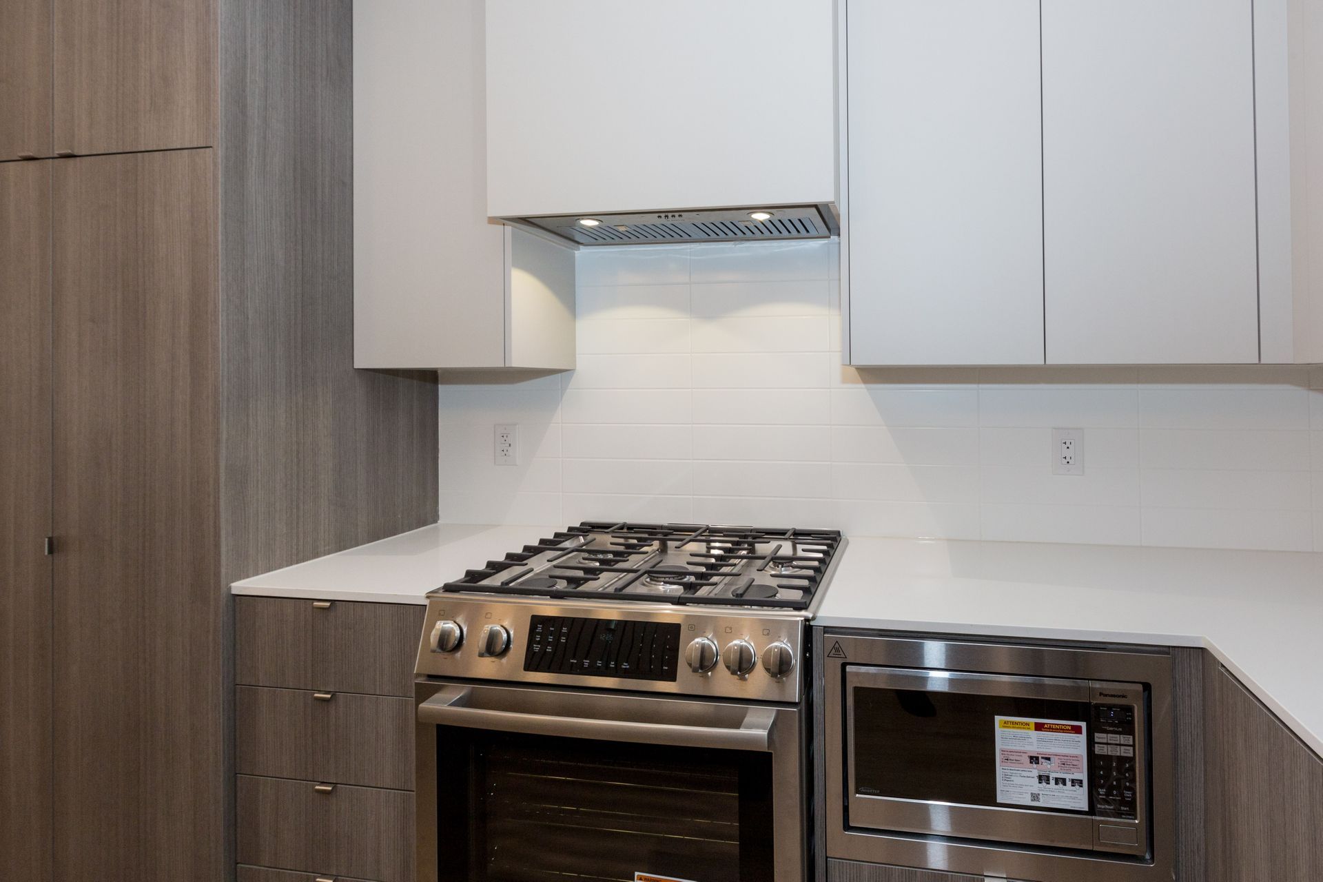 • Gourmet kitchen featuring quartz countertops and stainless appliances.