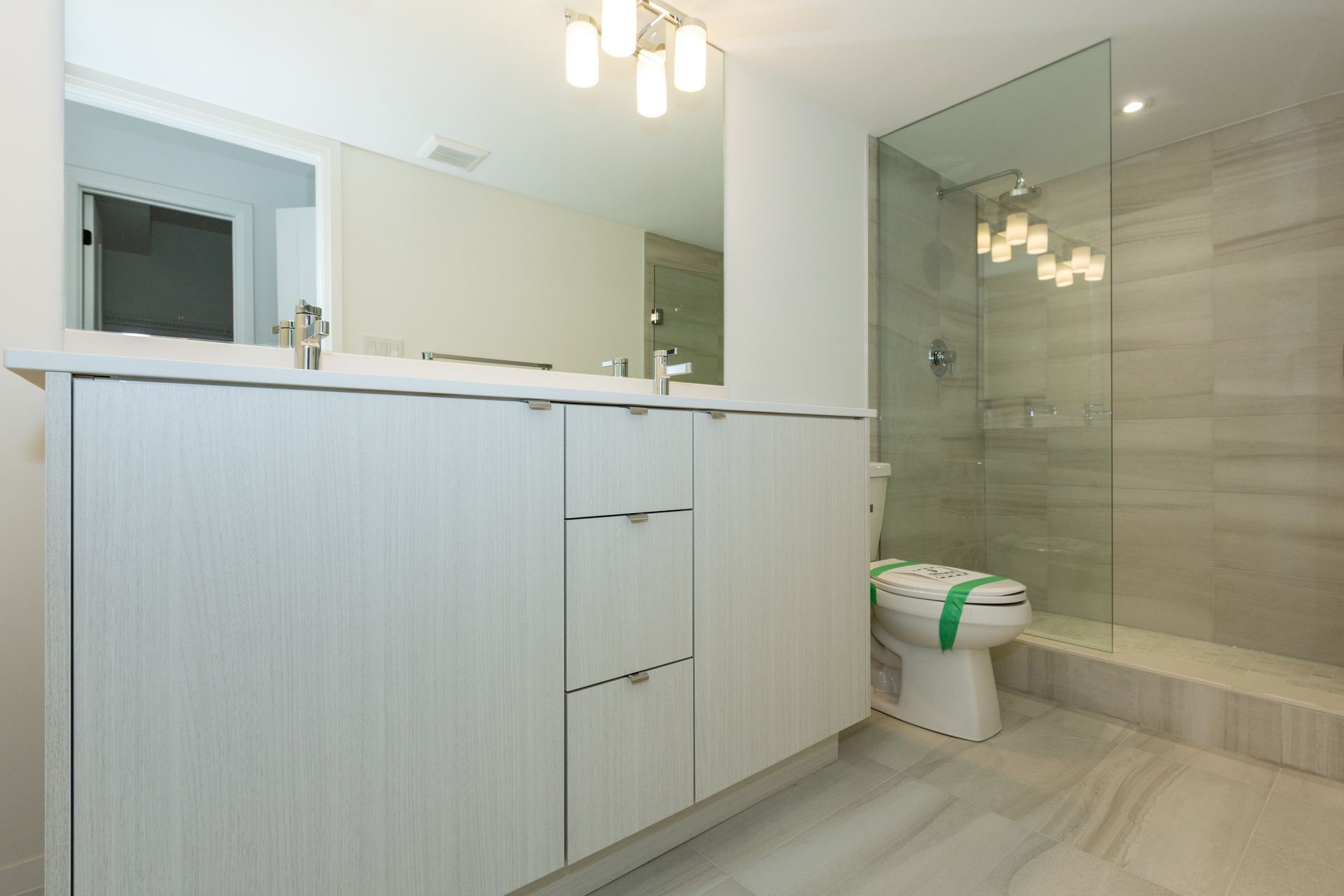 • Luxurious primary suite complete with frameless glass shower and dual sinks.