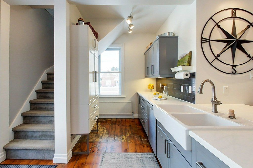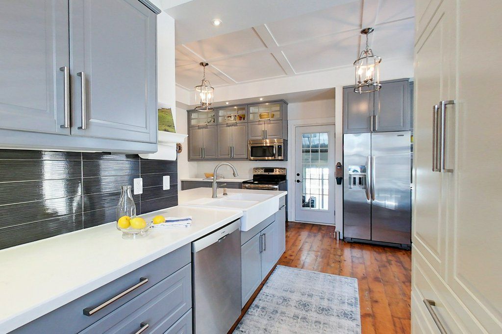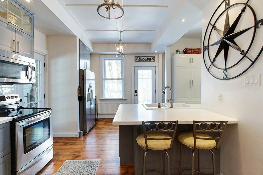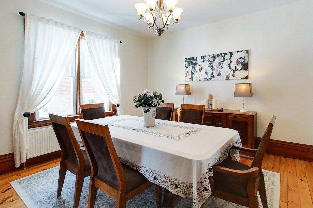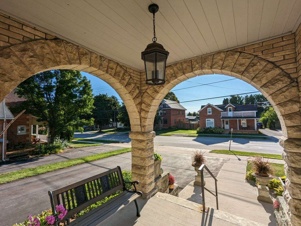 Begin your next chapter in the heart of thornbury in this thoughtfully renovated family home. The journey begins under the stone arches on the front porch. Inside, you will be impressed by the many historic features including the main staircase, 9. 5-foot ceilings, original wood floors, trim, double pocket doors, stained glass and service stairs in kitchen. The renovations compliment the home's heritage while adding modern day function. The large kitchen defines the heart of the home featuring an abundance of counter and cabinet space, pantry, breakfast counter, bar fridge, b/i wine rack, stone counters, a coffered ceiling and it opens into the dining room, designed for family dinners and gatherings. You will be drawn into the front living room by the corner gas fireplace and original stained glass window, known as the "wedding window" back in the day. The solid, pocket doors conveniently separate the living room from the den/office. A 2-piece bathroom complete the original main floor. Upstairs you will discover the wide hall, high ceilings, laundry area, 5-piece bathroom and four bedrooms, including a primary suite with full dressing area and 3-piece ensuite. Both upstairs bathrooms have in floor heat. Enjoy escarpment views from the 2nd and 3rd floors. The attic media room is a fun place to watch movies and sporting events. The bonus room at the back of the home brings the outdoors in featuring exposed red brick, heated floors, cathedral ceiling, pub table and 3 walk outs to the larger patio with bbq area, dining space, gardens, seating area and hot tub. Enjoy the smaller patio with fire pit further down the fully fenced yard. Additional features: oversized driveway, storage shed and basement with workbench, dog bath and work sink, 200 amp panel, metal roof. Just a short walk from downtown shops, school, library, community centre, your favourite restaurants, and the bay, this home defines four-season living with golf, trails & skiing all nearby.