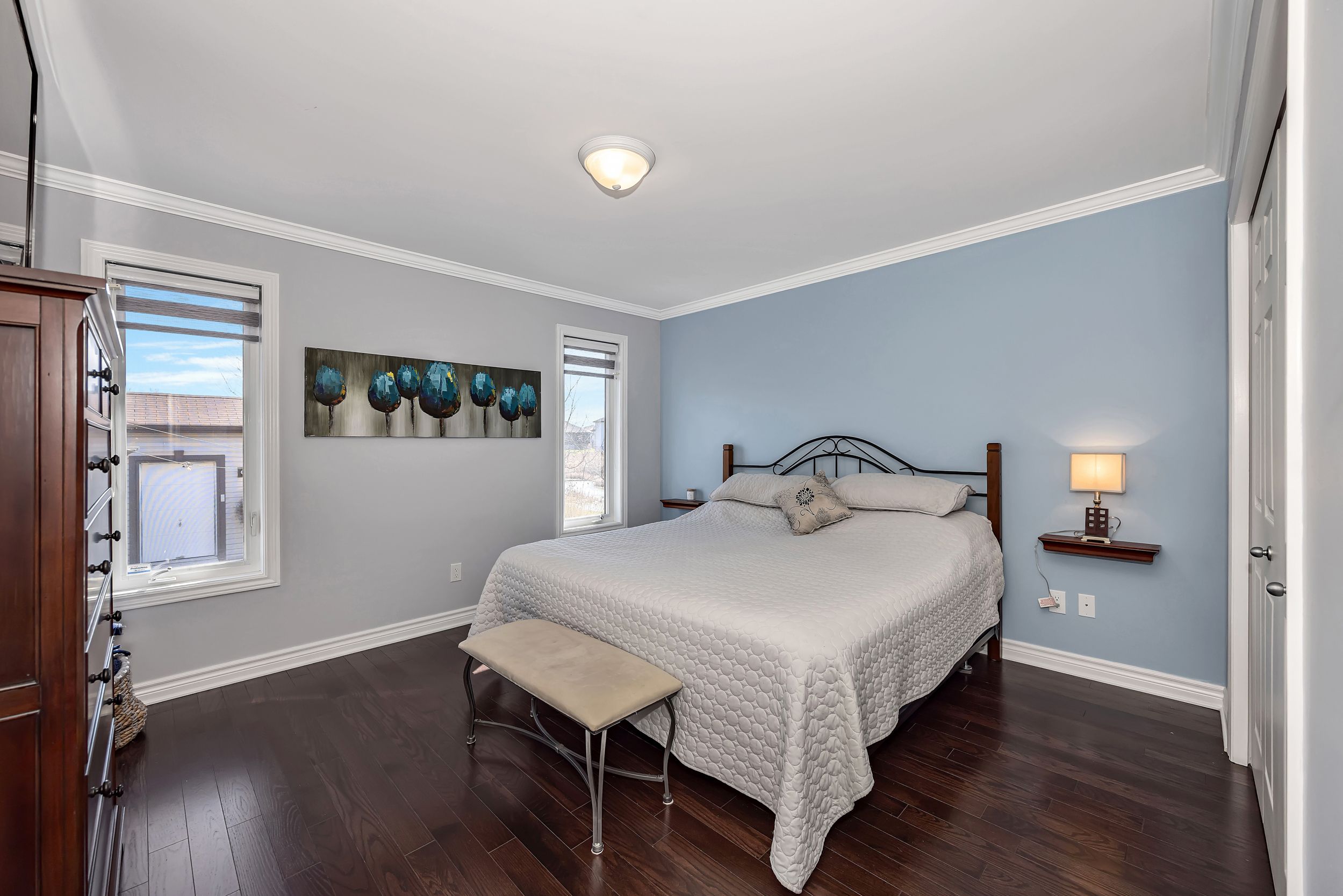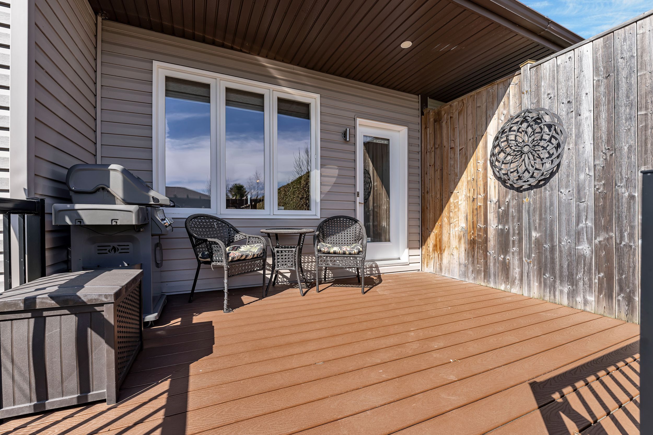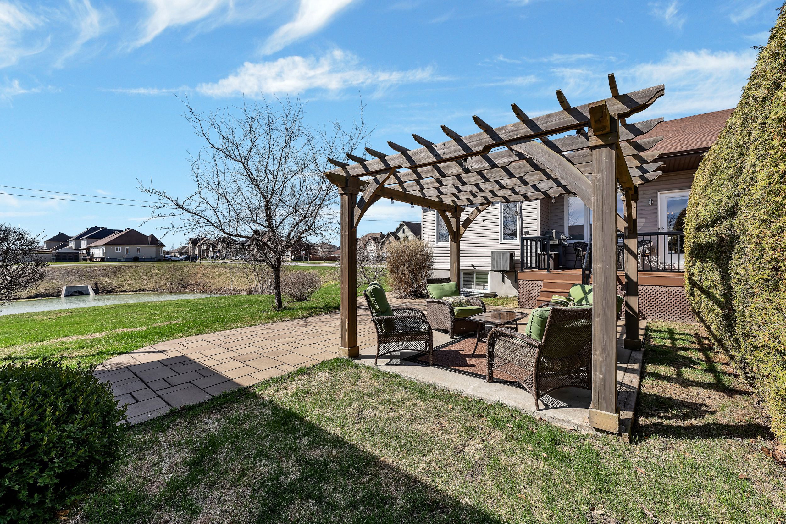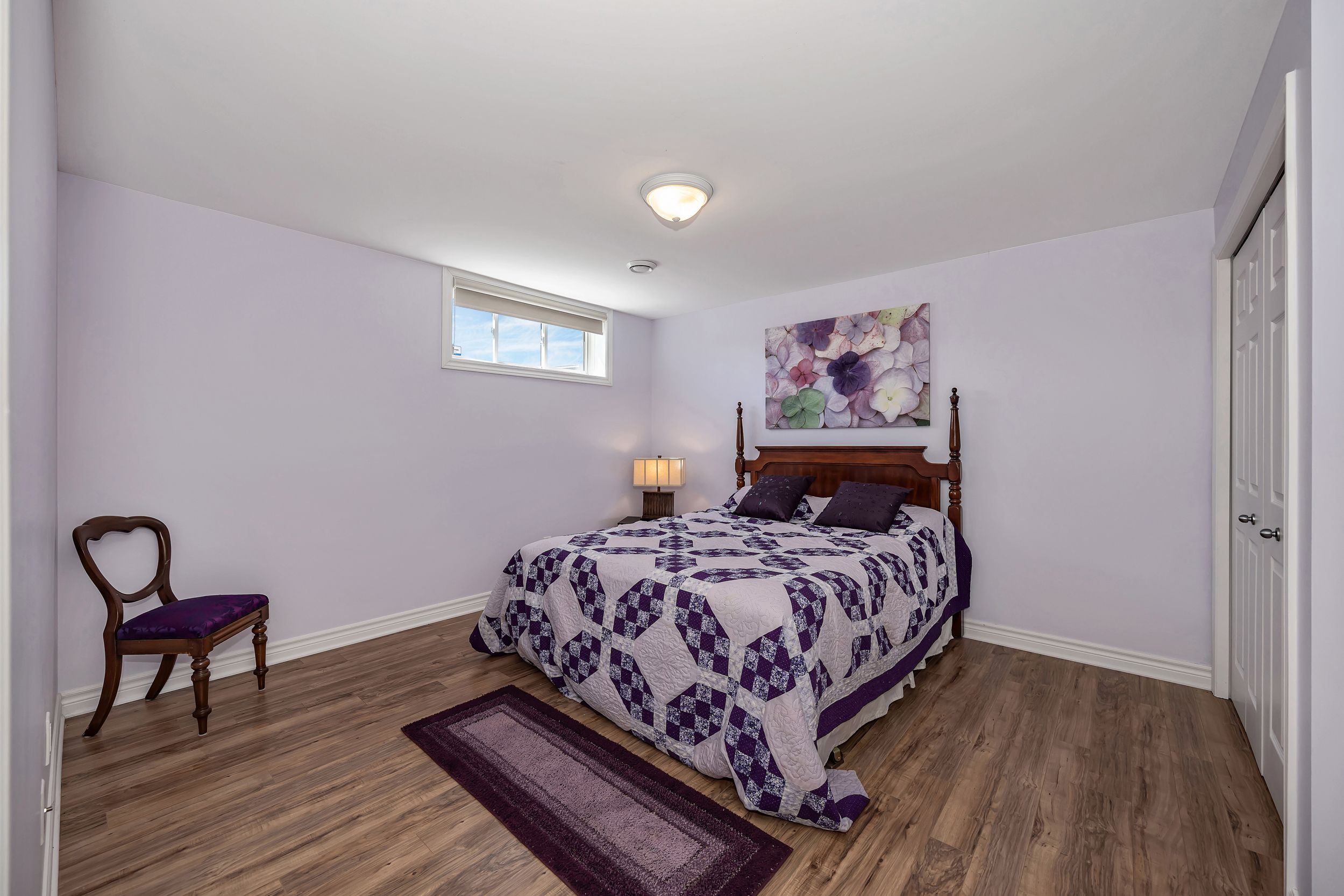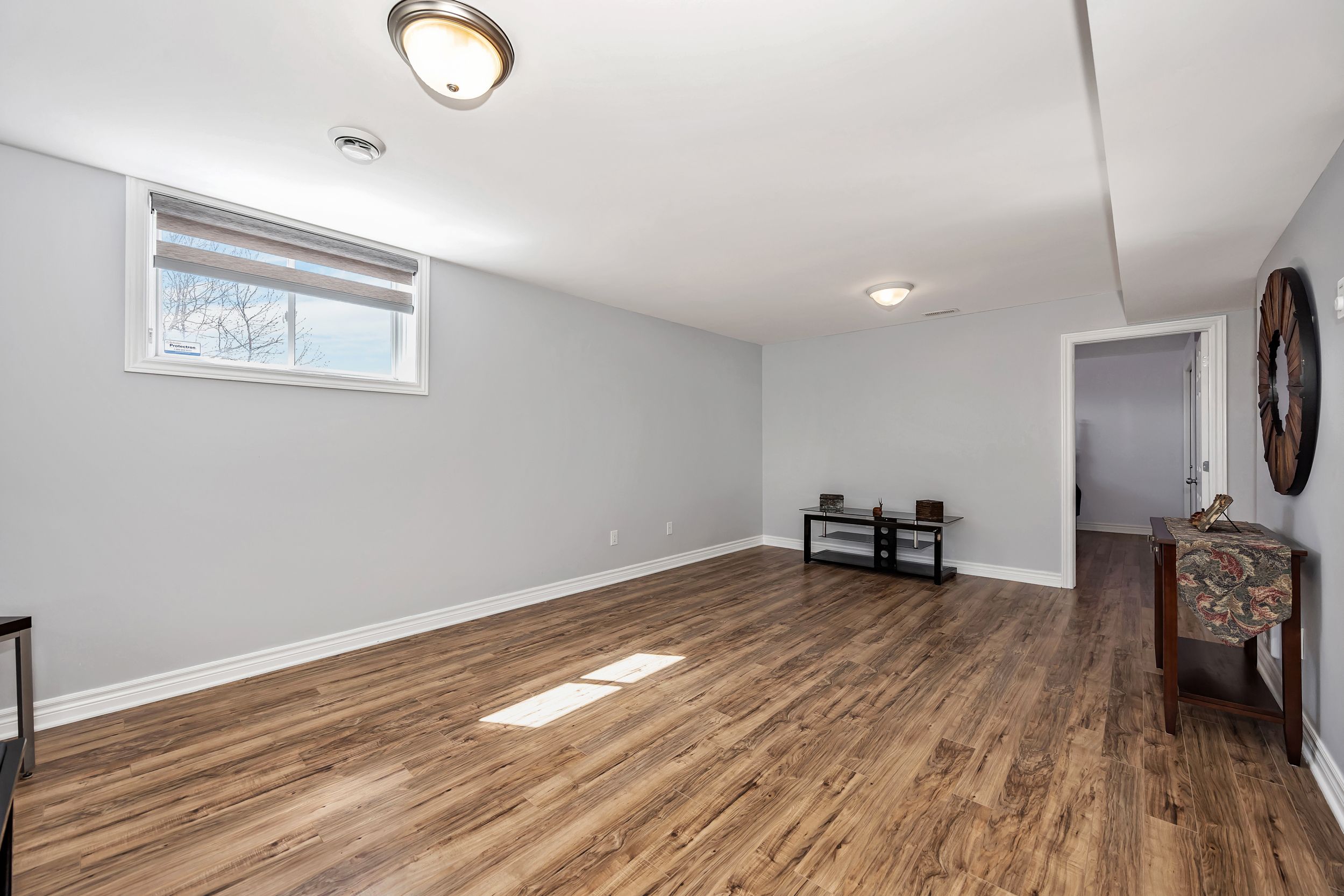 Stunning semi-detached home with no rear neighbours and beautiful pond views on the south side. This extremely well-maintained 2+1 bedroom home offers a functional layout, a bright kitchen with quartz countertops, ample cabinetry, and gleaming solid hardwood floors on the main level. The main floor also features a 4-piece bathroom and a warm, inviting living space. The fully finished basement provides excellent additional living space with a family room, third bedroom, 3-piece bathroom, and a spacious storage area. The garage is fully finished with pvc walls and epoxy flooring, offering a clean and practical space. Outside, enjoy a fully landscaped property with a double-wide driveway, manicured lawn, composite deck, natural gas bbq hookup, interlock patio with pergola, large storage shed, mature shrubs for added privacy, and peaceful views of the pond. Additional features include all appliances, window blinds, garage door opener, storage shed, piano in the basement, generlink installed and ready for your generator, hydro approx. $1,016 for 2025 and natural gas approx. $773 for 2025. Homes like this do not come on the market often. Do not miss your chance to make this your little piece of paradise.