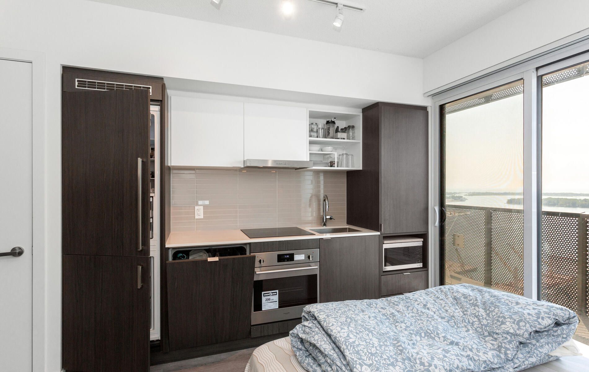 Sugar wharf -brand new building - south facing studio open concept kitchen living room - ensuite laundry, stainless steel kitchen appliances included. Engineered hardwood floors, stone counter tops. Full-sized washer & dryer & well-maintenance unit. Steps away from farm boy, loblaws, lcbo, shoppers, restaurants, sugar beach, a 2-acre park, and new george brown & ocad campuses. Union station, st lawrence market, and the financial district are all 10-12 minutes on foot. Direct access to future path and tdsb school internet included