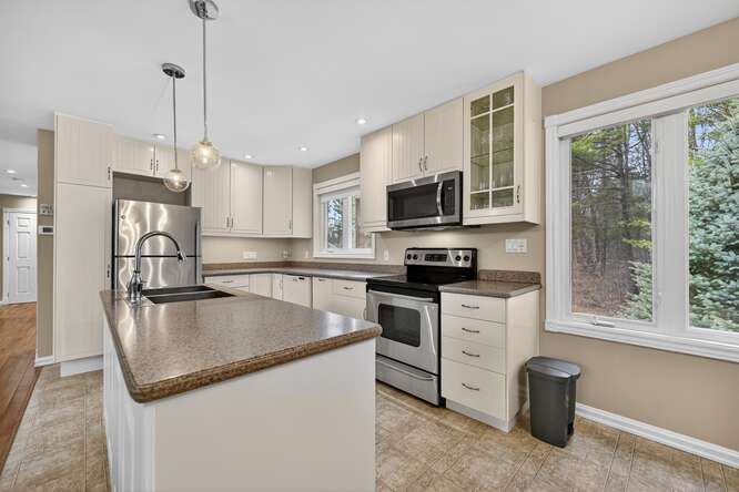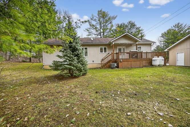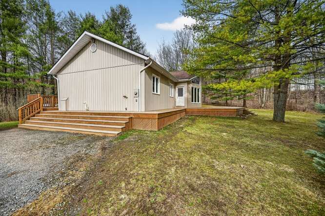 Welcome to 138 escott rockport rd, mallorytown. Nestled on a wooded lot, just a short walk north of rockport and the st. Lawrence river, you will find a quaint 3+2 bedroom, 2 bath bungalow waiting for you to make it your own. The large wrap around deck allows plenty of entertainment space or to sit back and enjoy the scenic yard and wildlife. The main floor boasts comfortable living with hardwood floors mostly throughout, open concept kitchen/living room/dining room, vaulted living room ceiling, main floor laundry and the primary bedroom is complete with a 4pc ensuite and walkin closet. The fully finished basement provides ample space for your family and guests. Propane furnace and central a/c new in 2020, hot water heater in 2025. The large 3 car garage provides plenty of space to store vehicles. This home is conveniently located only minutes from a park for kids, the 1000 island parkway trail with summer & winter fun, 10 min walk to rockport, 4 min drive to the 401 with a short drive to gananoque, brockville and kingston. Whether you're looking for a great year round home or an exciting summer get away, this home is a must see. Come check out 138 escott rockport rd before it is gone.