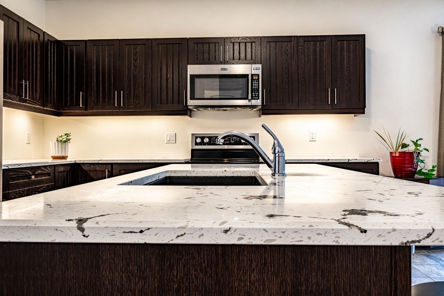 • Thoughtfully designed kitchen with quartz countertops and recent appliances.
