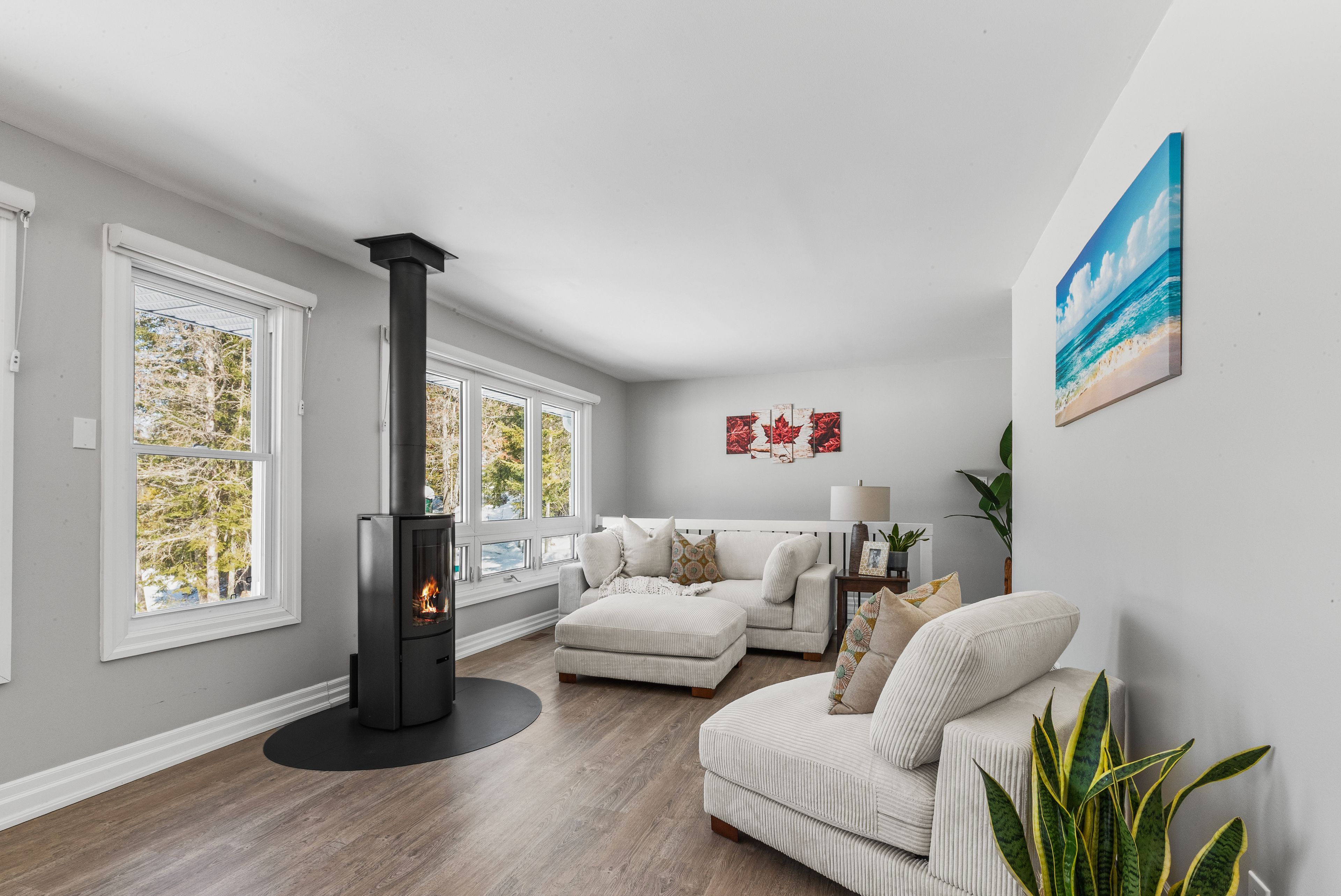 Nestled in a serene and secluded setting, this fully renovated three-bedroom cottage is a perfect blend of modern comfort and natural beauty. Boasting an impressive 726 feet of pristine water frontage, this gem offers breathtaking views and an enviable southwest exposure, ensuring you bask in all-day sunshine and spectacular sunsets. Just steps from the shore, this cottage is a rare find; you could not replicate such a prime location today. Enjoy the tranquility of your private beach while being conveniently located only 10 minutes from arrowhead provincial park and 15 minutes from downtown huntsville. Here, you'll find a vibrant selection of restaurants, golf courses, and grocery stores, making every amenity easily accessible. For those quick errands, a small grocery store in novar is just a five-minute drive away, providing the convenience you need while maintaining the peaceful retreat vibe. This cottage is not just a home; it's a lifestyle. Imagine sipping your morning coffee overlooking the gentle waves or winding down with friends around a fire pit as the sun sets over the water. With its fresh renovations, immaculate interiors, and stunning outdoor spaces, this property is designed for both relaxation and entertainment. Whether you're seeking a year-round residence or a weekend getaway, this cottage offers the ideal escape from the hustle and bustle of everyday life. This cottage is also currently a very successful airbnb and in a township where a permit is not required - excellent opportunity to make an income while not there. Don't miss this opportunity to own your own slice of paradise-schedule a viewing today and experience firsthand the magic of lakeside living!