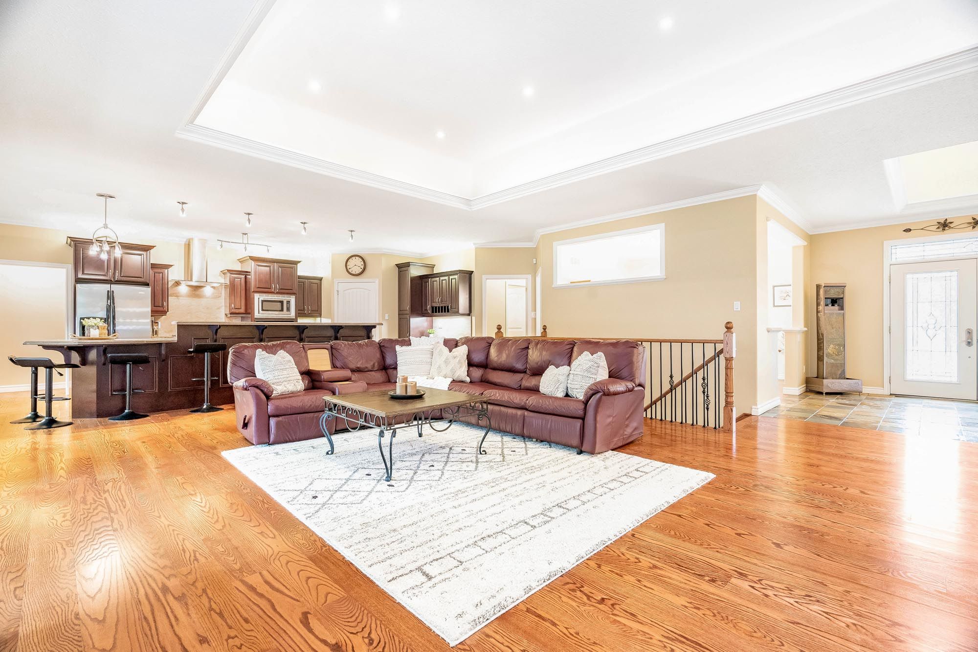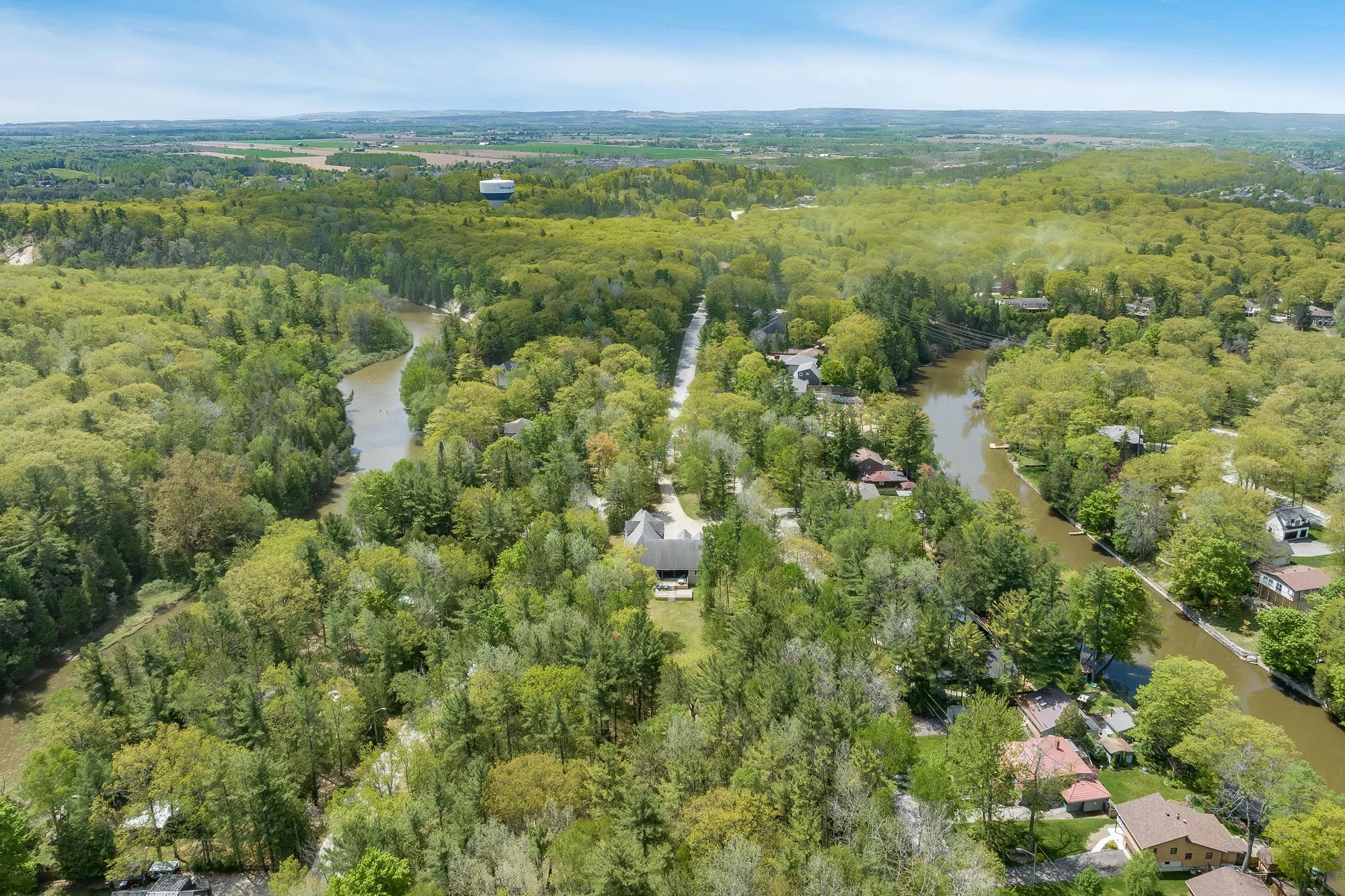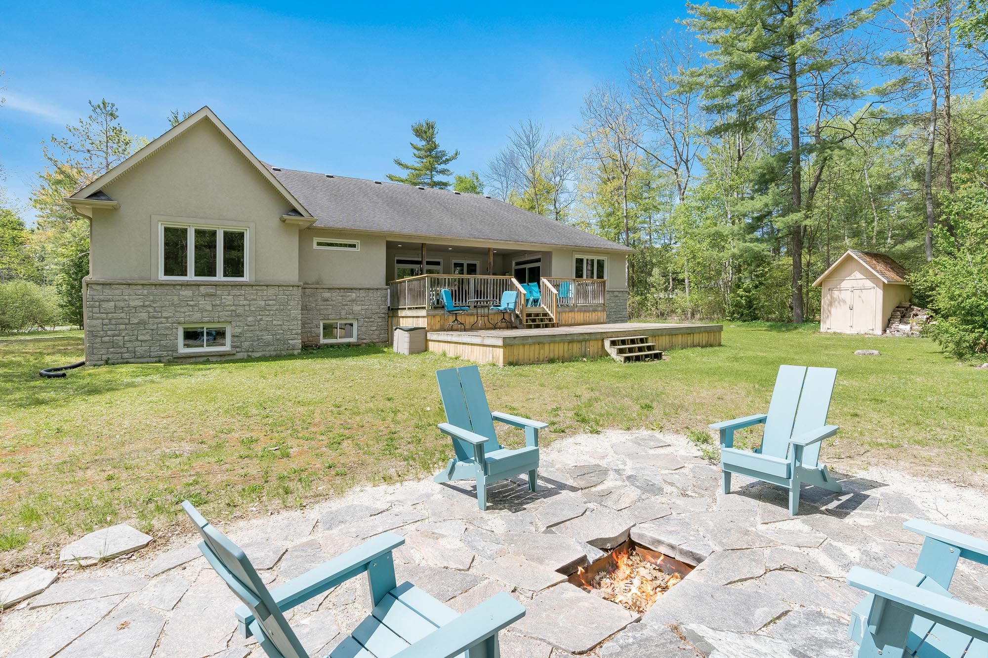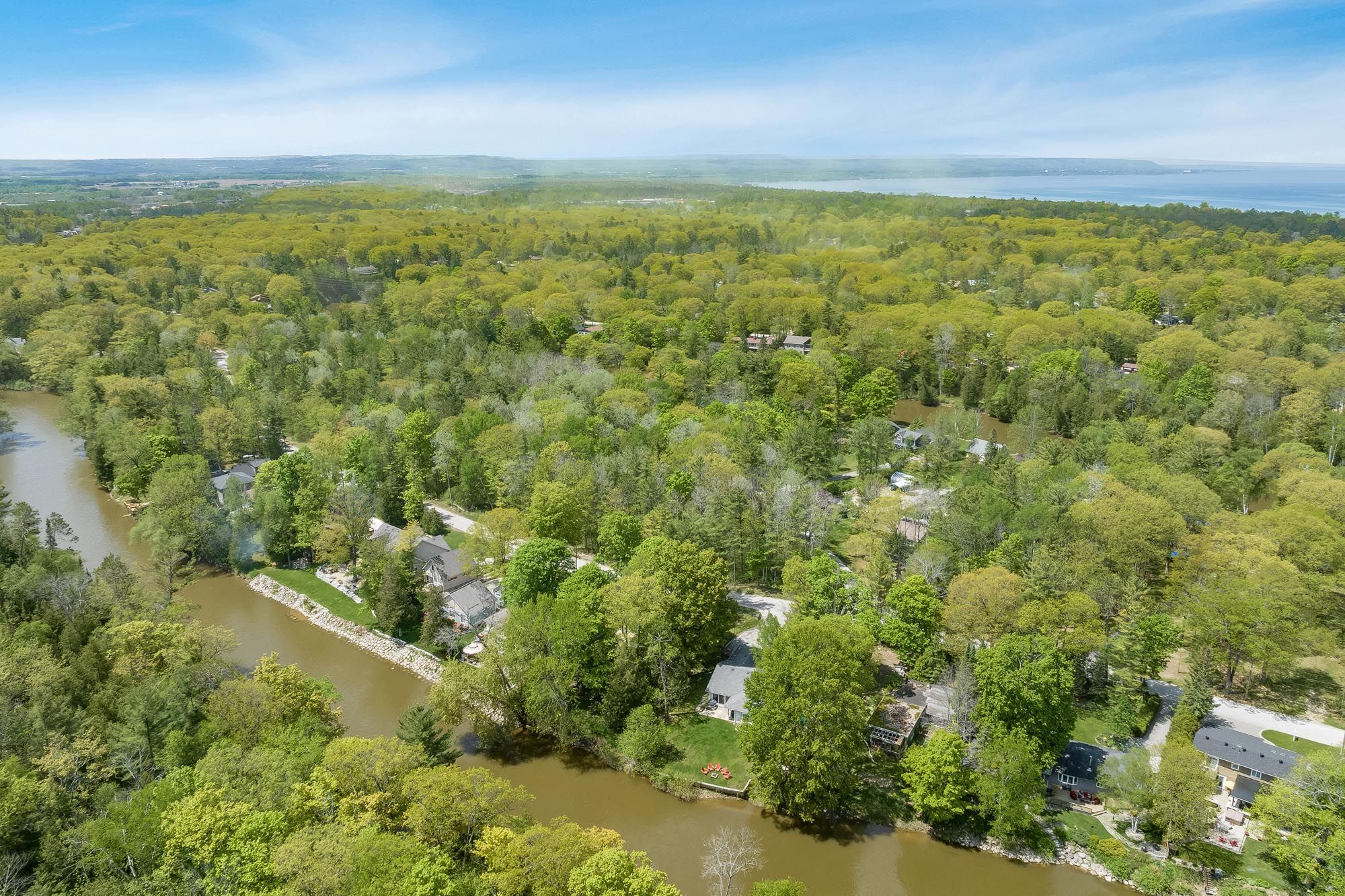 Top 5 reasons you will love this home: 1) a rare 5. 6-acre setting surrounded by trees and nature, while being just steps to the nottawasaga river and only minutes from shopping, schools, and the sandy shoreline 2) with over 8,500 square feet of finished living space, this home is designed for large families or multi-generational living, offering 4,669 square feet above grade plus a fully finished lower level 3) the stunning main level design welcomes you with soaring 18' tray ceilings, a stately oak fireplace, an impressive wall of glass doors leading to a two-tiered deck with a screened-in room, and a chefs kitchen shining with granite countertops, custom maple cabinetry, premium appliances, a wine cooler, and an oversized pantry, all flowing into a formal dining room ready for memorable gatherings 4) the luxurious bedrooms and suites include four spacious rooms on the main level, highlighted by a primary retreat featuring a three-sided fireplace, spa-like ensuite, and walk-in closet, with the lower level delivering its own garage entrance and functions almost as a separate residence with a fifth bedroom, bright family room with gas fireplace, custom wet bar, gym, and even a hockey locker room 5) no detail was overlooked in the premium features and endless possibilities this property features heated bathroom floors, dual furnaces, upgraded sound-proofing, 400-amp service, and solid 10 concrete foundation walls, coupled with a fully insulated 30'x45' triple garage with a finished loft, perfect for a studio, workshop, or guest suite, while the forested backyard stretches over 1,100 feet, creating an unmatched private sanctuary.