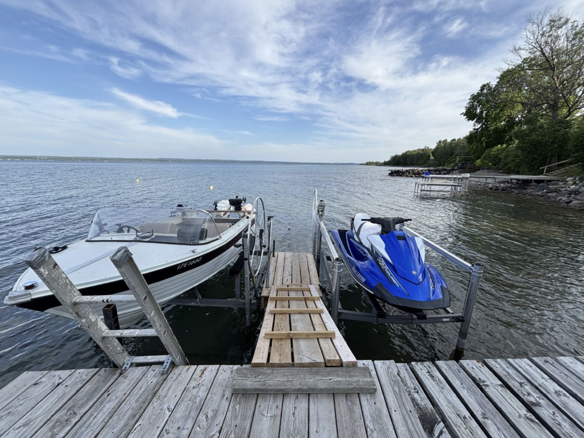 Have you been searching for an enchanting property with breathtaking views of georgian bay at a reasonable price? Your search ends here. This beautiful home is nestled on a picturesque lot surrounded by mature trees and vibrant perennial gardens, offering both charm and privacy. Entertaining is effortless with seamless access to a spacious deck from the kitchen, dining, and living areas. The bright, efficient kitchen is complemented by a stylish coffee bar, perfect for your morning routine. The main level features a comfortable bedroom and a modern 3-piece bathroom (updated in 2024), along with all-new flooring throughout the upper level. Downstairs, the lower level offers an additional bedroom with a large window overlooking the front lawn, along with a newly updated 4-piece bathroom (2023). The inviting family room, complete with an electric fireplace insert with customizable flame colours, is ideal for gatherings or cozy nights in. Step outside and enjoy how two separate decks and a patio extending your living space into the outdoors. The expansive side yard is perfect for summer games, entertaining, or relaxing evenings around the fire pit. Start your mornings with breakfast on the deck while taking in stunning water views. Additional features include a paved driveway with parking for up to six vehicles, a new side door, and a high-efficiency furnace and a/c system (2020). The sellers have thoughtfully converted the third bedroom into a dining room, which can easily be reverted back to a three-bedroom layout if desired. This is a rare opportunity to own a serene retreat with modern updates and captivating views-don't miss it. Last and certainly not least there is water access to a dock where the sellers have kept there boat and jet ski and they spend time going for a swim and looking for the next big trout or salmon.