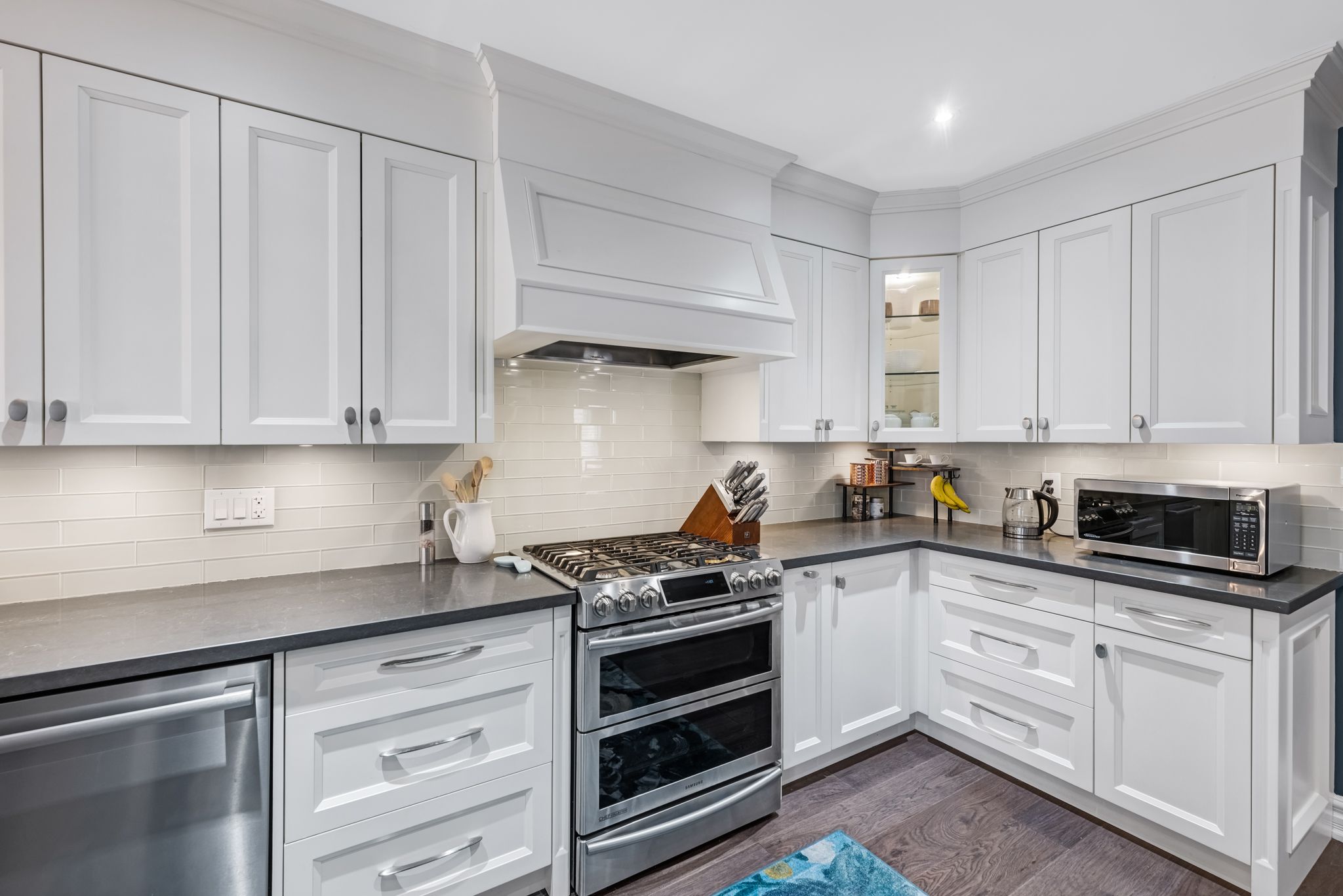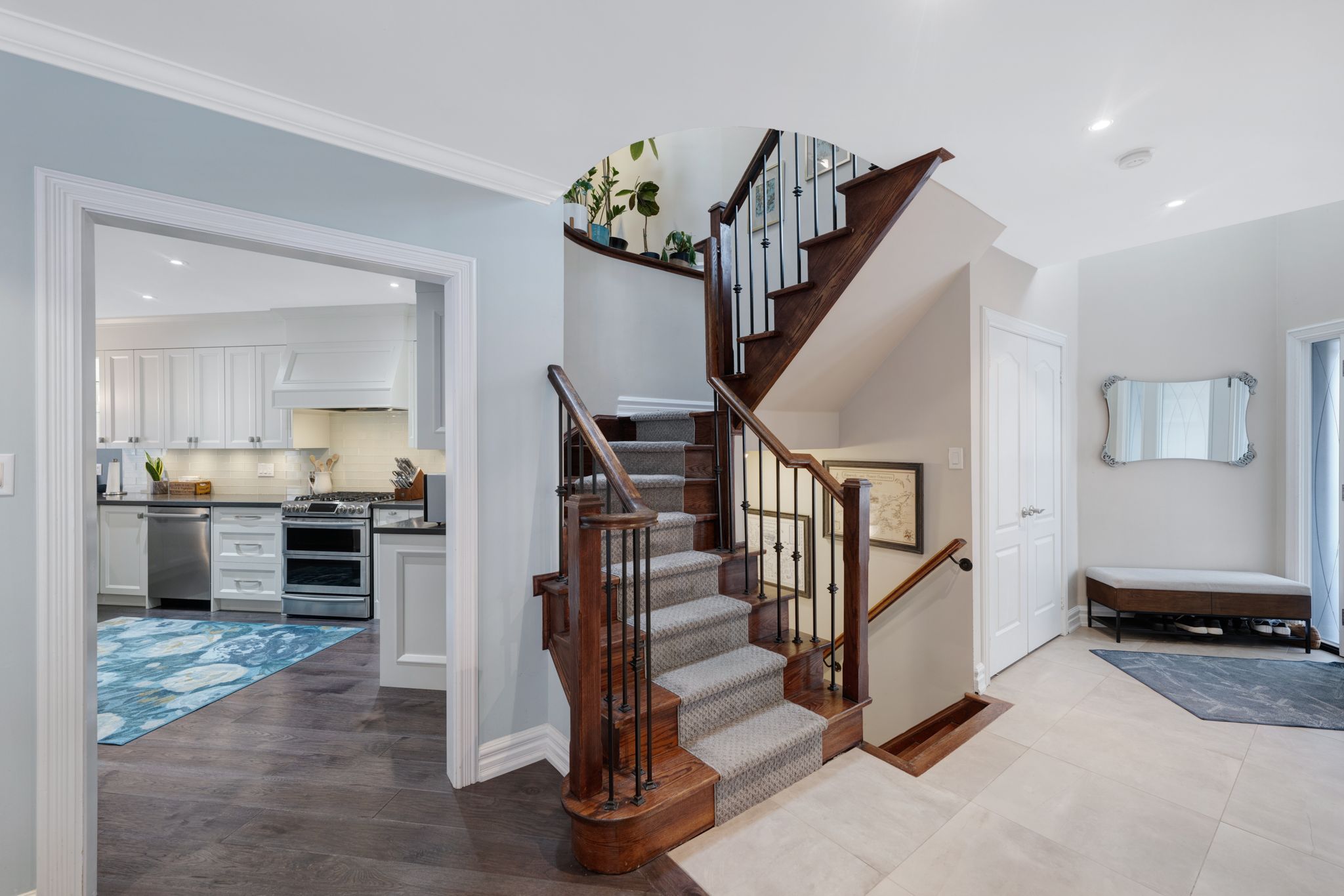 • Renovated kitchen with premium stainless steel appliances, including new fridge and dishwasher.