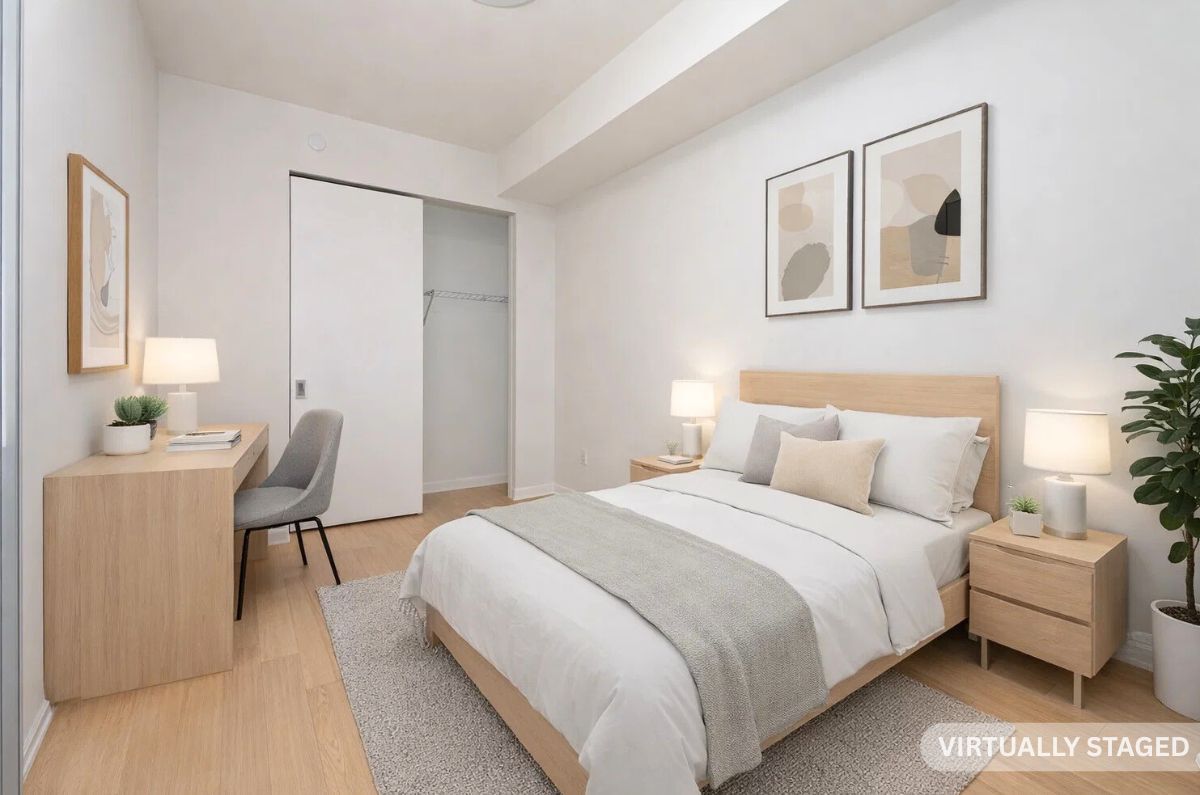 Welcome to this bright and inviting 2-bedroom, east-facing condo offering the perfect blend of character and convenience. Bathed in morning light, this thoughtfully designed suite features rich hardwood floors throughout and a stunning feature brick wall that adds warmth and urban charm. The spacious kitchen showcases beautifully panelled cabinetry, providing both style and ample storage. Enjoy the ease of ensuite laundry, along with the added value of a private balcony - perfect for your morning coffee - plus dedicated parking and a locker for extra storage. Ideally located within walking distance to the subway, the vibrant shops and cafés of bloordale, macgregor park, and the charming streets of roncesvalles. Situated in an excellent school district, this home offers an exceptional lifestyle in one of the city's most desirable neighbourhoods. A perfect opportunity for professionals, couples, or small families seeking comfort, character, and a great sense of community !