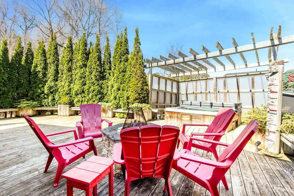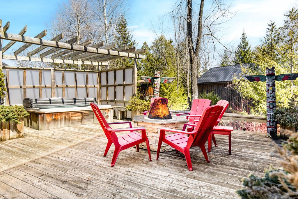 Seasonal spring/summer/fall rental welcome to your perfect blue mountain summer getaway. This charming chalet blends a relaxed, swiss-inspired feel with modern updates, all set up to make the most of natural light and easy living. The upper level features a bright, open-concept layout with the primary bedroom, laundry, and a spacious great room that flows into the dining area, bar, and kitchen-ideal for hanging out or hosting. The bar includes sub-zero wine and beverage fridges, and the kitchen is fully equipped with stainless steel appliances, soapstone counters, a wall oven, and a walk-in pantry. Downstairs, there's a second cozy family room with a gas fireplace, plus four bedrooms and two bathrooms-plenty of space for family and guests. Outside, you've got two great spots to unwind: a deck off the main living area overlooking greenery, and a private backyard with a hot tub, gas fire pit, and mature trees for added privacy. Located just minutes from craigleith, blue mountain, the georgian trail, and northwinds beach, you're close to everything-whether it's hiking, biking, or beach days. Flexible rental terms (3-month minimum) and available into the fall season. Hot tub maintenance at tenant's expense and interior sauna not included in rental.