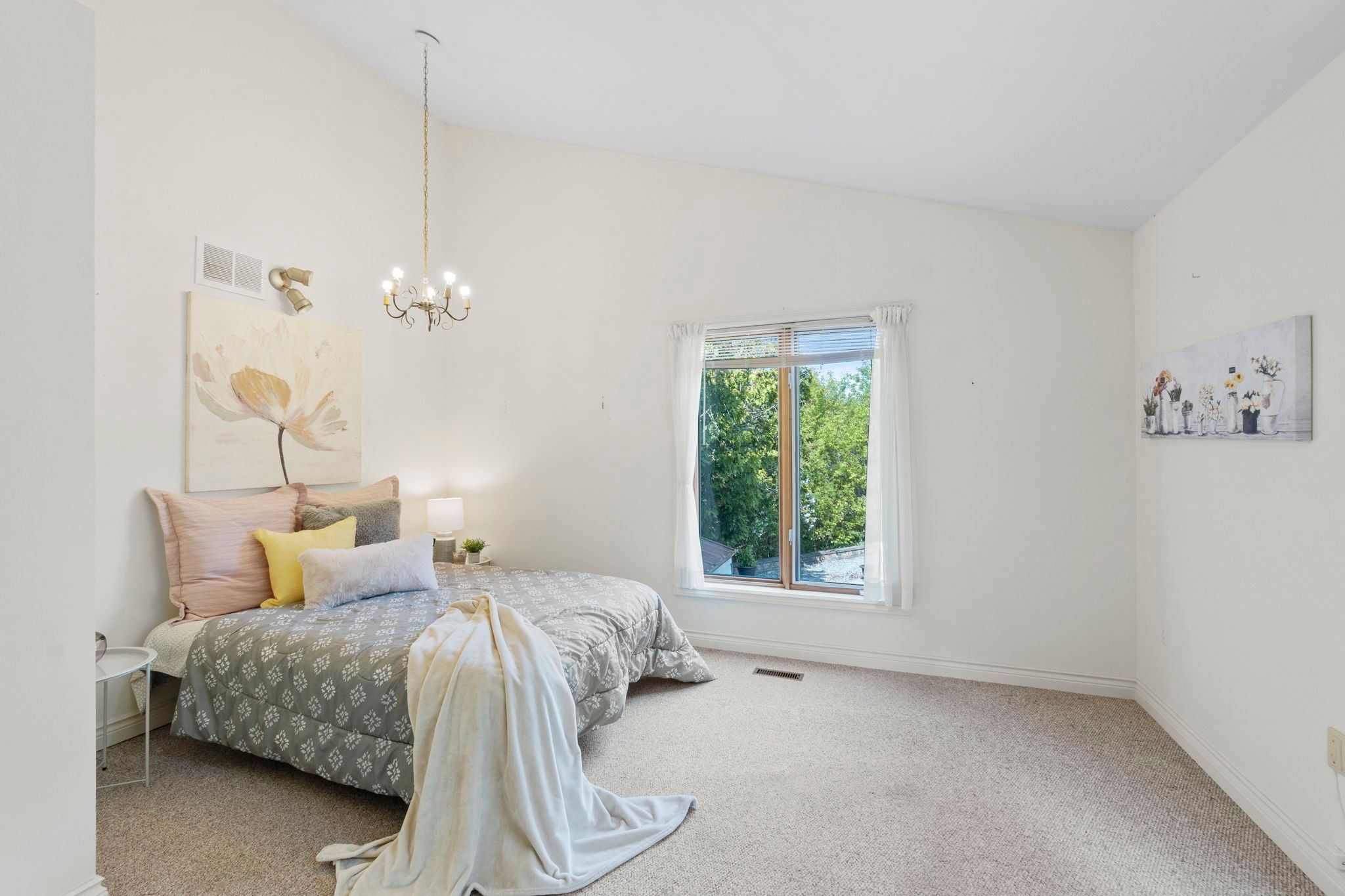 This quality, custom-built 4-bedroom bungalow by renowned builder henry wiersma is ideally situated in a sought-after area just a short stroll to the lake and an easy walk to downtown shops, restaurants, and the waterfront. Enjoy relaxing in the spacious family room or hosting guests in the elegant formal dining room. The bright and cheerful kitchen offers ample cabinetry and is perfect for everyday living and entertaining. The dreamy primary bedroom provides a peaceful escape, while the home's many thoughtful features include a durable metal roof for added peace of mind. The main level is wheel chair accessable including a wheel chair accessable shower. A standout feature is the separate entrance to the lower-level 2-bedroom apartment, complete with a full kitchen and a 4-piece bath ideal for extended family, a caregiver suite, guests, or a great rental potential. Step outside to your private backyard oasis, a perfect retreat for relaxing or enjoying quiet outdoor moments.