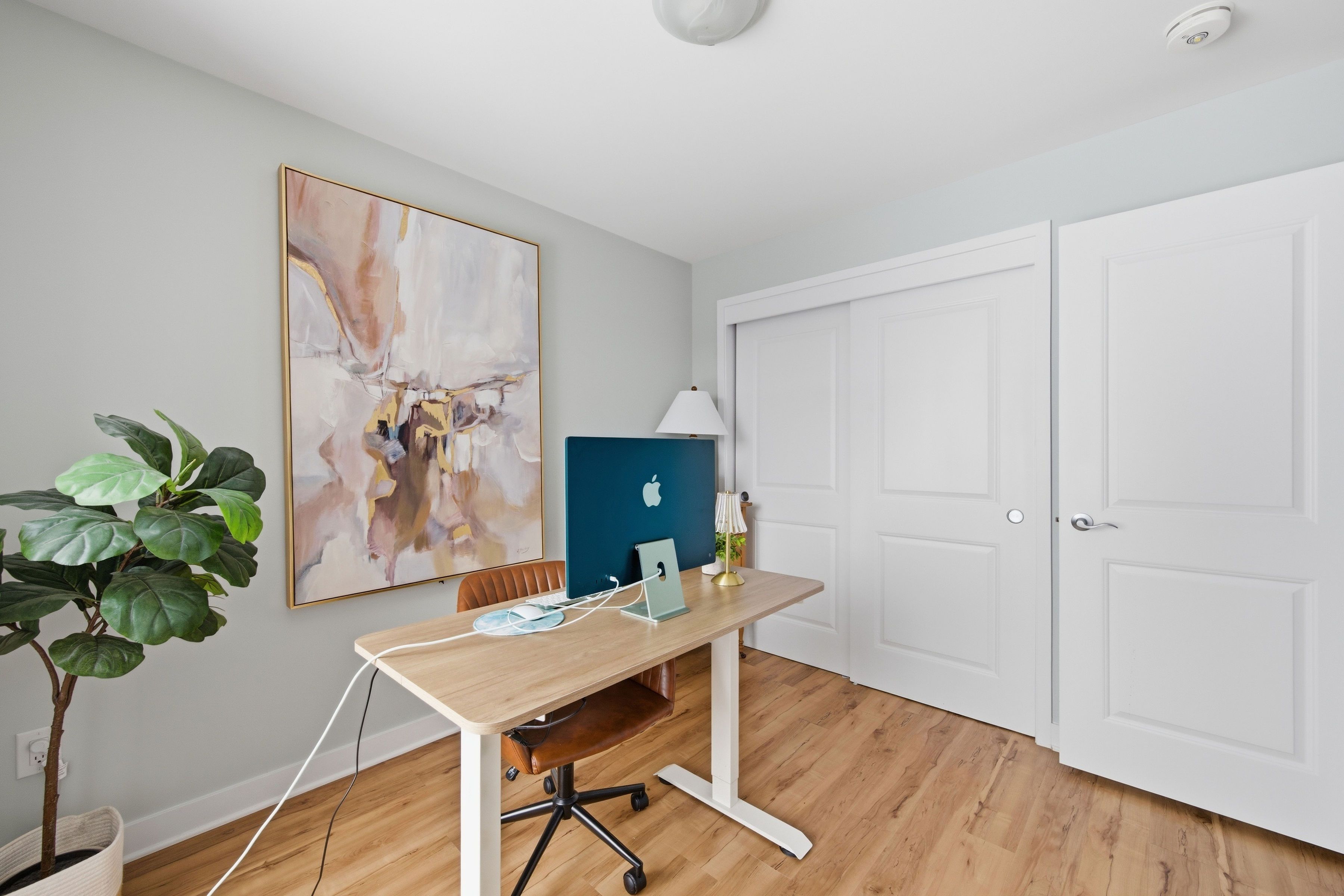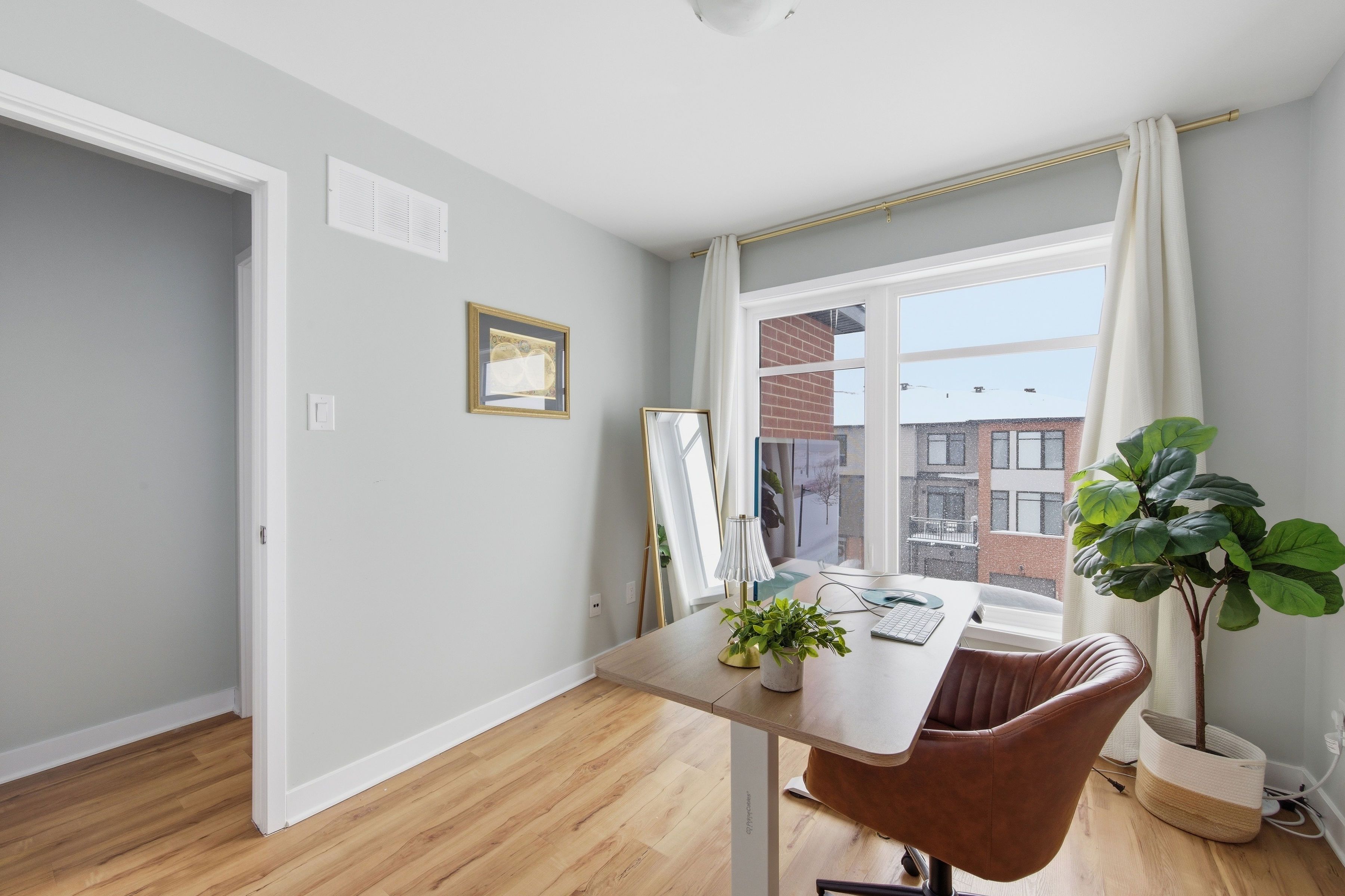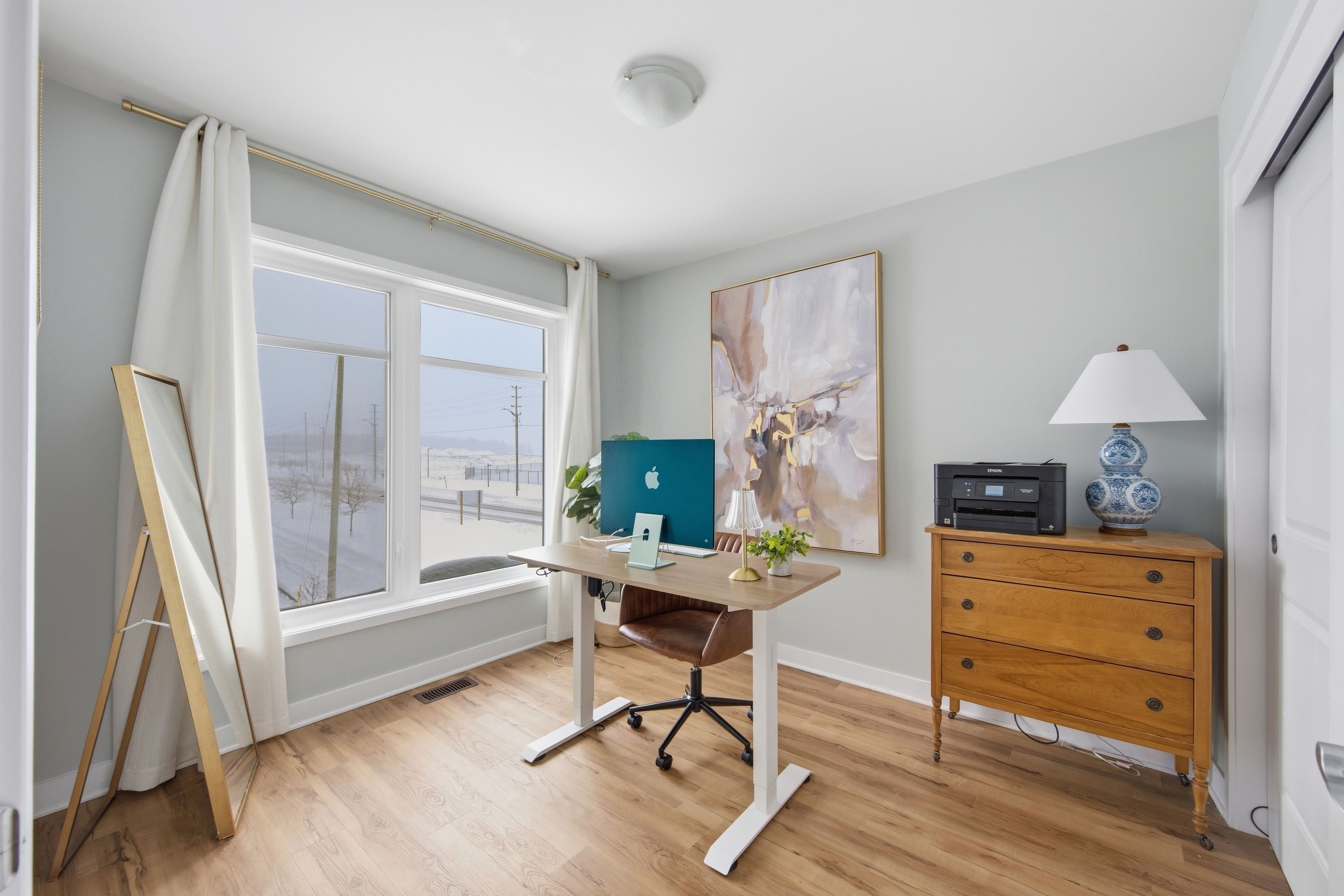 Prepare to be impressed by the stunning and sun-filled eq jude model. Offering 1,378 sq. Ft. Of thoughtfully designed living space, this 2021-built home boasts desirable south-west exposure and a private entrance. The main level features a bright and versatile den, a spacious closet, convenient garage access, and an expansive kitchen that truly anchors the home. Designed with both style and function in mind, the kitchen showcases quartz countertops, stainless steel appliances, a waterline connection, and ample space to entertain or create culinary masterpieces. With its cohesive finishes and charming brick exterior, this home blends timeless design with modern comfort. Upstairs, you'll find two generously sized bedrooms, two full bathrooms, and convenient upper-level laundry - offering both practicality and privacy for everyday living. The perfect place to call home! Open house sunday march 1, 2026 from 2-4 p. M. 24 hour irrevocable on all offers.