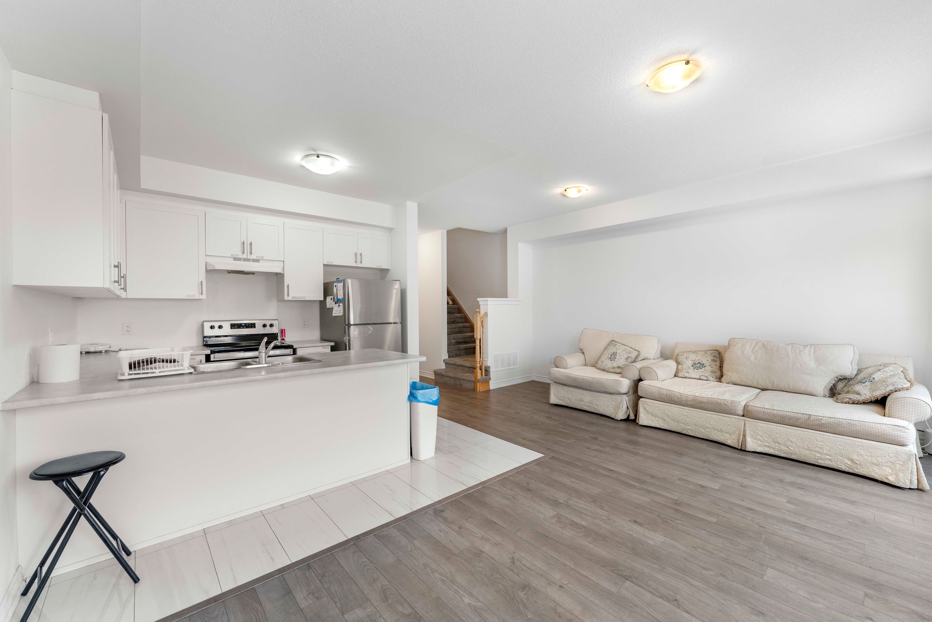 • Open-concept main floor features a modern kitchen and ample counter space.