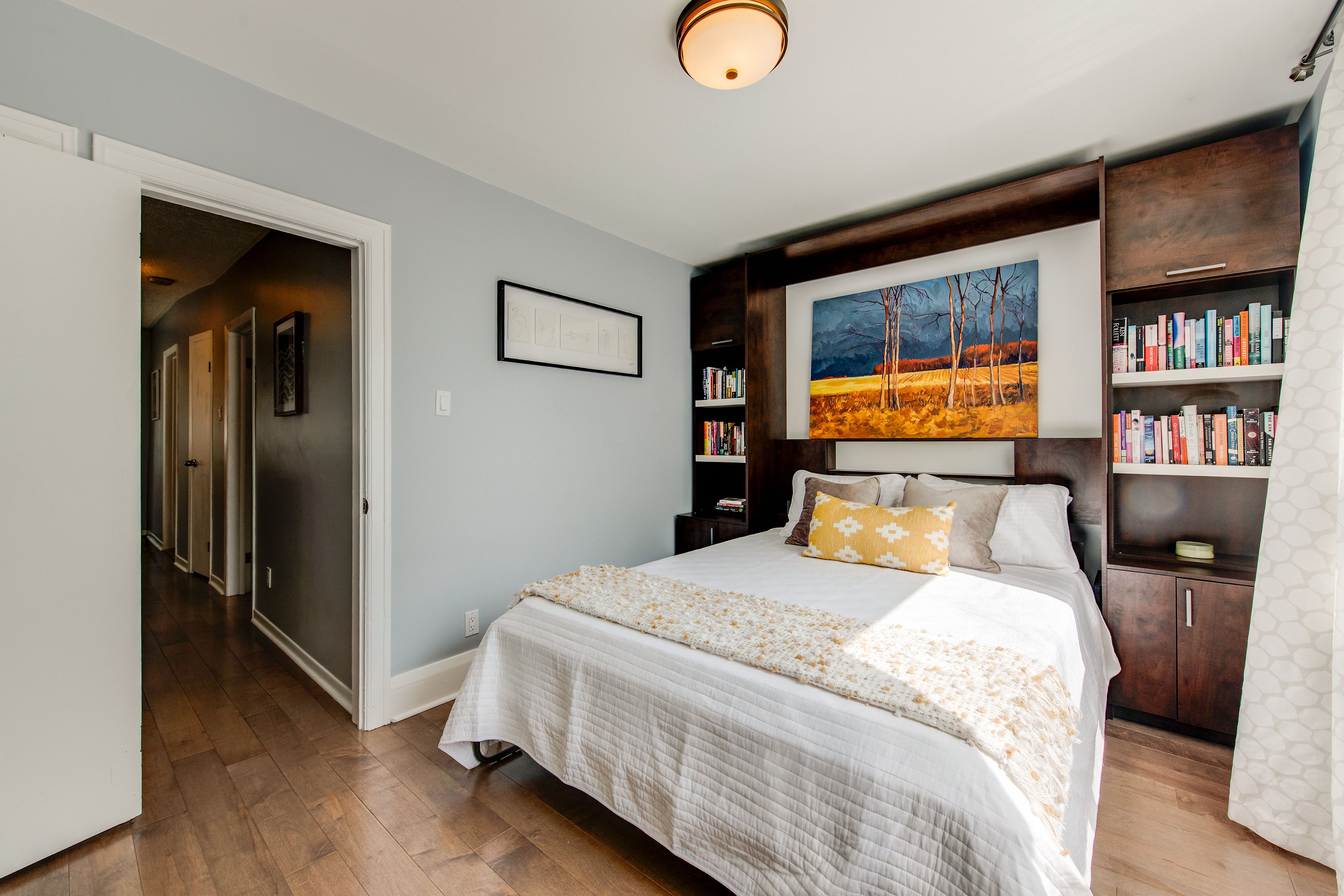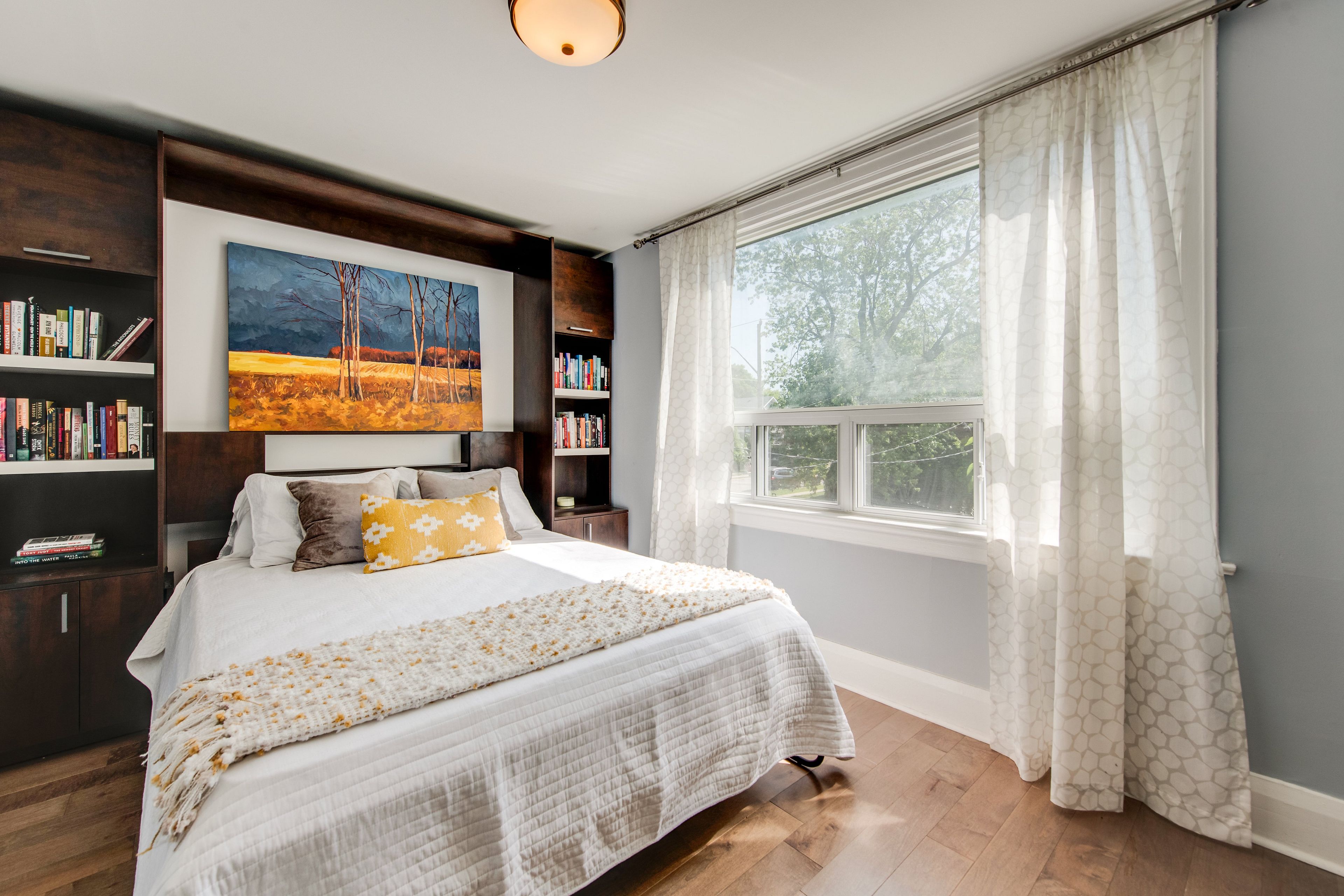 Updated detached home in a prime danforth location, featuring a garage and a main floor powder room. Beautiful maplewood floors throughout, with a bright main floor office flooded with natural light from the skylight and walk-out. The modern kitchen boasts quartz counters and plenty of storage, including a pantry. The basement rec room has heated floors, and the laundry room includes a kitchen rough-in. There is potential for an in-law suite by opening the drywall to the separate side entrance. Laundry hook-ups are also available on the main floor, in the current office. The primary bedroom offers a full wall of closets with built-in organizers, while the large third bedroom features a murphy bed perfect for using the space as a guest room and second home office. Enjoy your maintenance-free backyard with a gas line for your bbq, or relax on the covered front porch and take in this family-friendly street. All within walking distance to the coveted rh mcgregor school, ttc, parks, shops, cafes, restaurants and danforth has to offer!