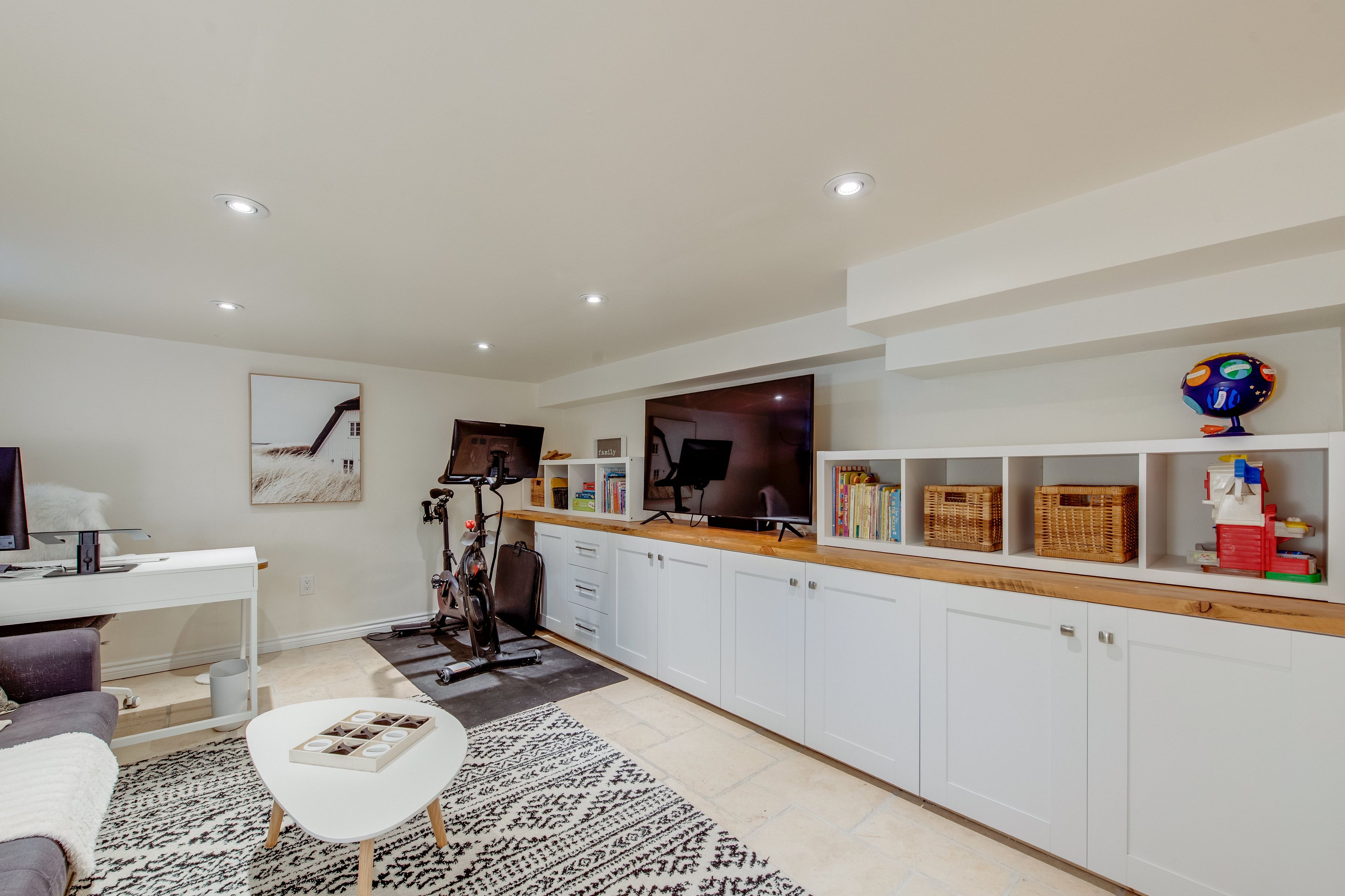 • Finished basement rec room with heated floors for added comfort.