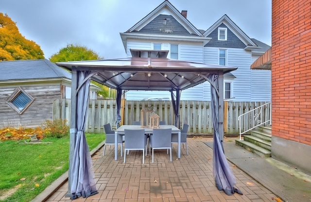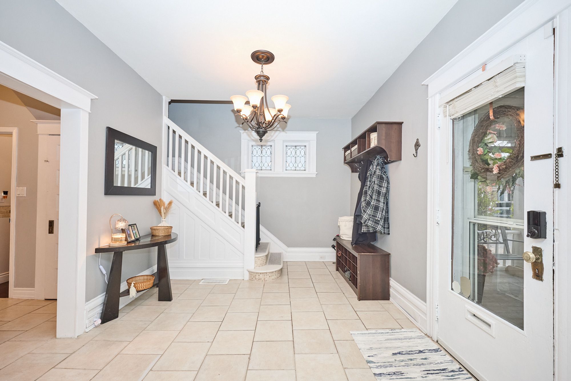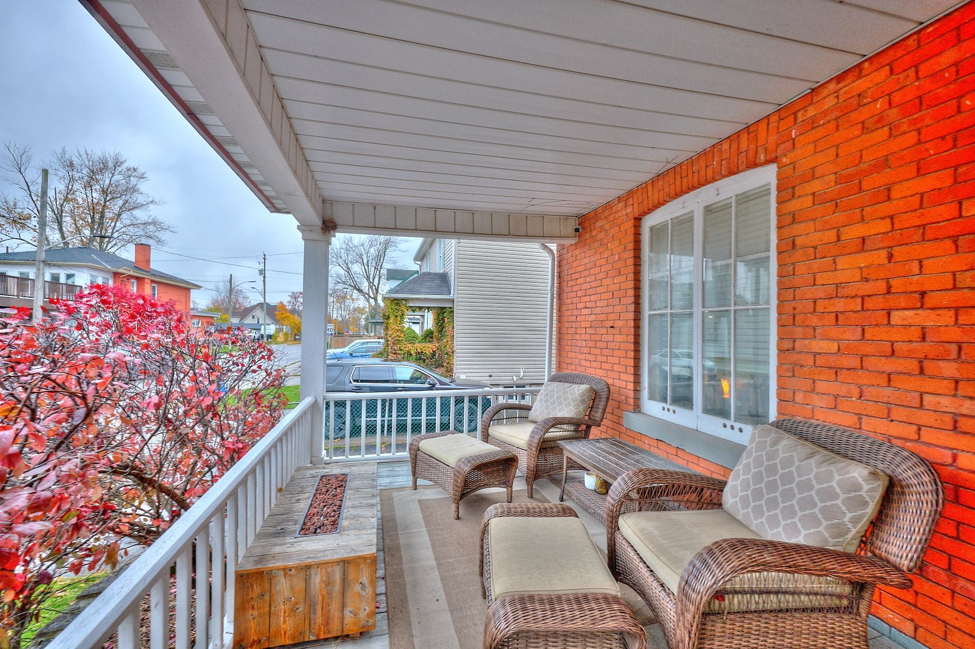 Welcome to this stately all-brick 2. 5-storey home near the welland canal! This immaculate and spacious solid brick home offers timeless character and modern comfort just steps from the welland canal, parks, and everyday amenities. A sprawling covered front porch invites you to enjoy your morning coffee or evening relaxation while taking in the peaceful surroundings. Inside, you'll find 1,776 sq ft of beautifully maintained living space. The main floor welcomes you into a huge foyer and boasts 8-foot ceilings throughout, grand maple hardwood floors, and large windows that flood the home with natural light. The open-concept living and dining areas are ideal for entertaining, complemented by a spacious kitchen with main-floor laundry and a convenient 2-piece bath. Step out to your fully fenced backyard, perfect for pets, play, or quiet evenings outdoors. Upstairs, you'll discover four generous bedrooms, including one with potential for a future walkout balcony, along with a bright 4-piece bathroom. A pleasant surprise awaits in the third-floor walk-up attic - a full-height, versatile space ready to be finished as your dream primary suite, home office, or creative retreat. The basement features a separate entrance, plenty of storage, and excellent potential for future finishing. Outside, a long driveway provides parking for four vehicles, and a double detached garage offers added functionality and space. Meticulously cared for from top to bottom, this stunning welland home combines historic charm with thoughtful updates! Notable updates include: roof 2015, furnace & a/c 2013, upper level flooring 2020. Checkout video tour!