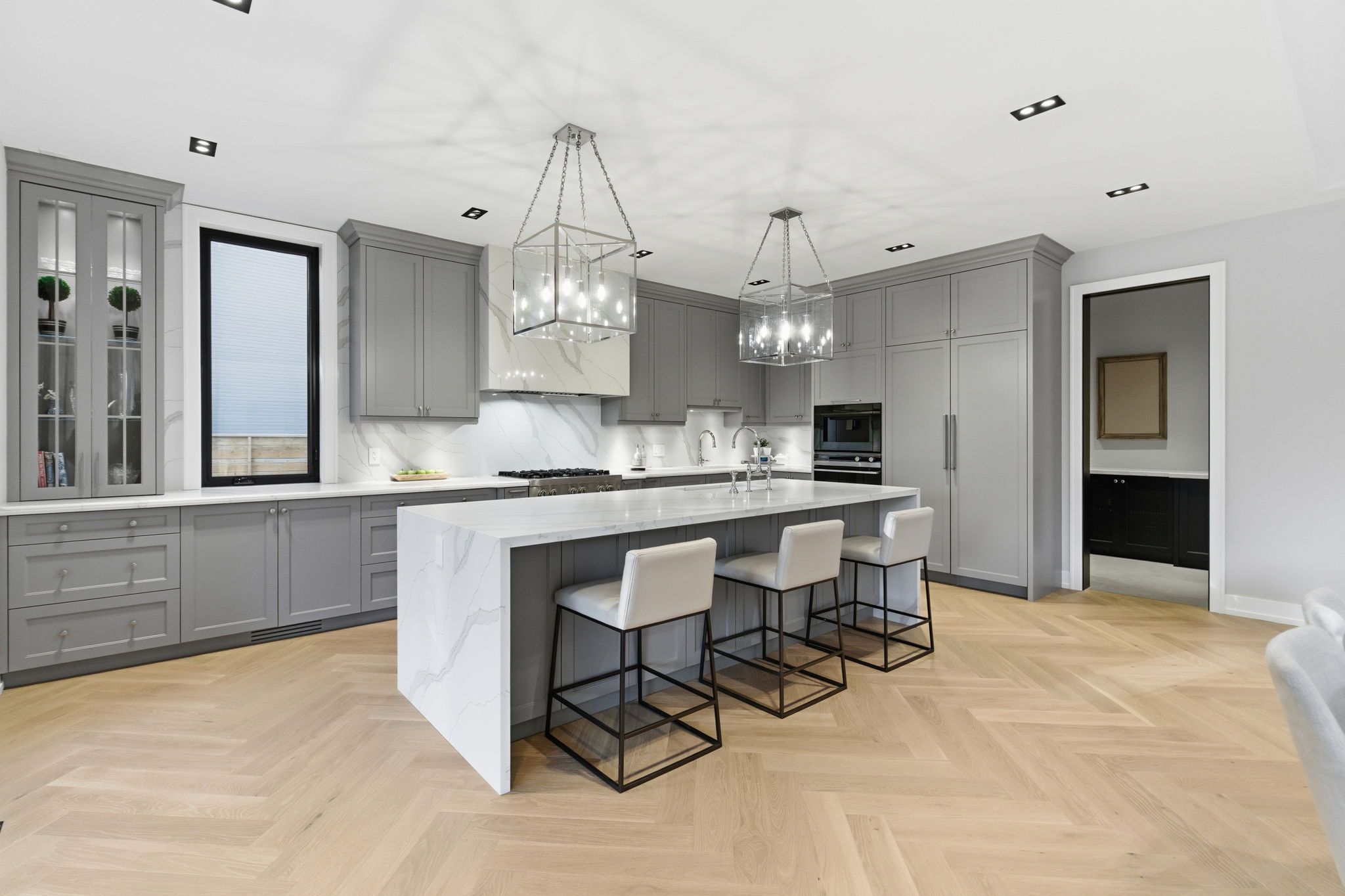 • Stunning chef's kitchen with premium appliances and waterfall island.
