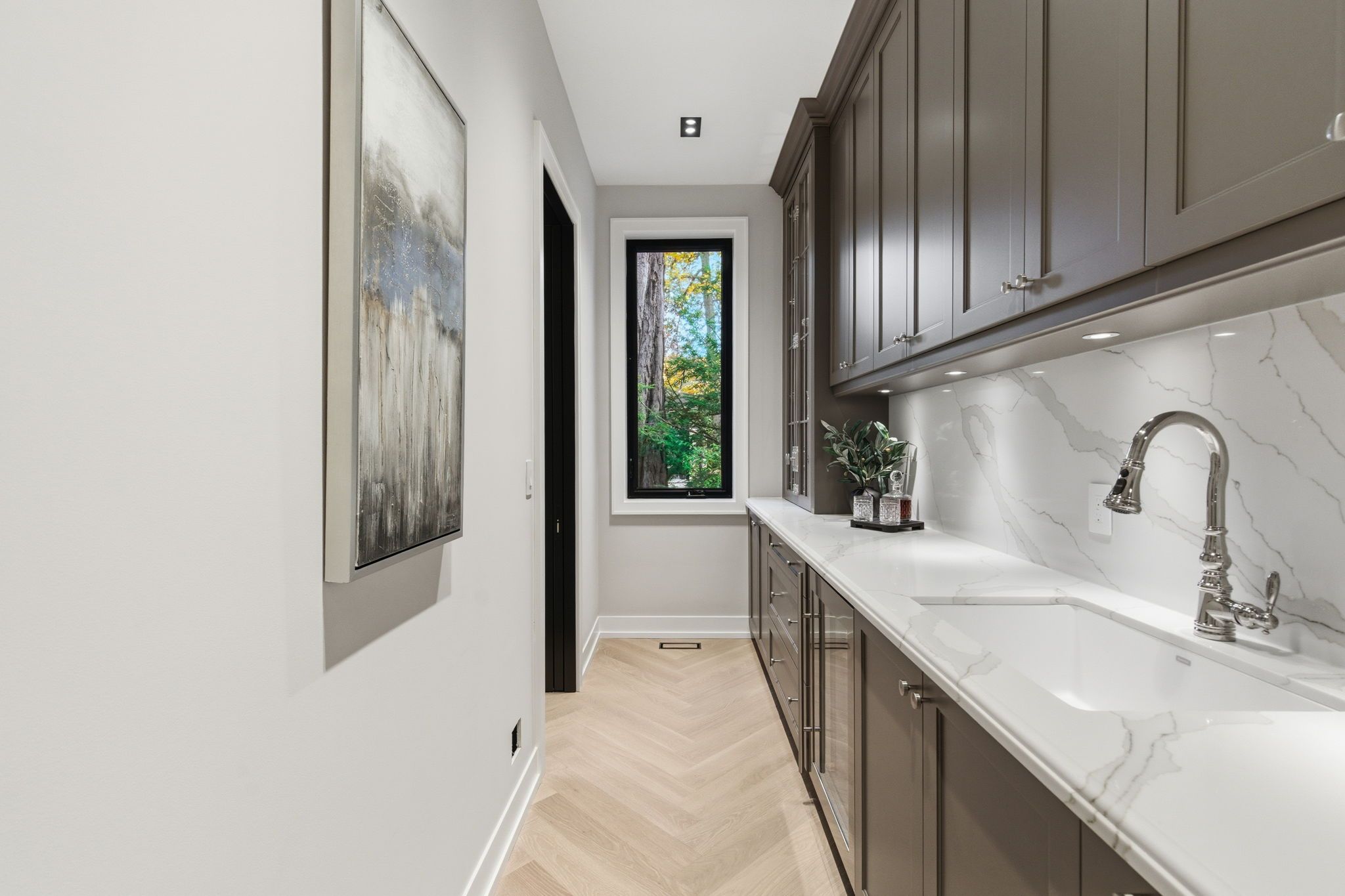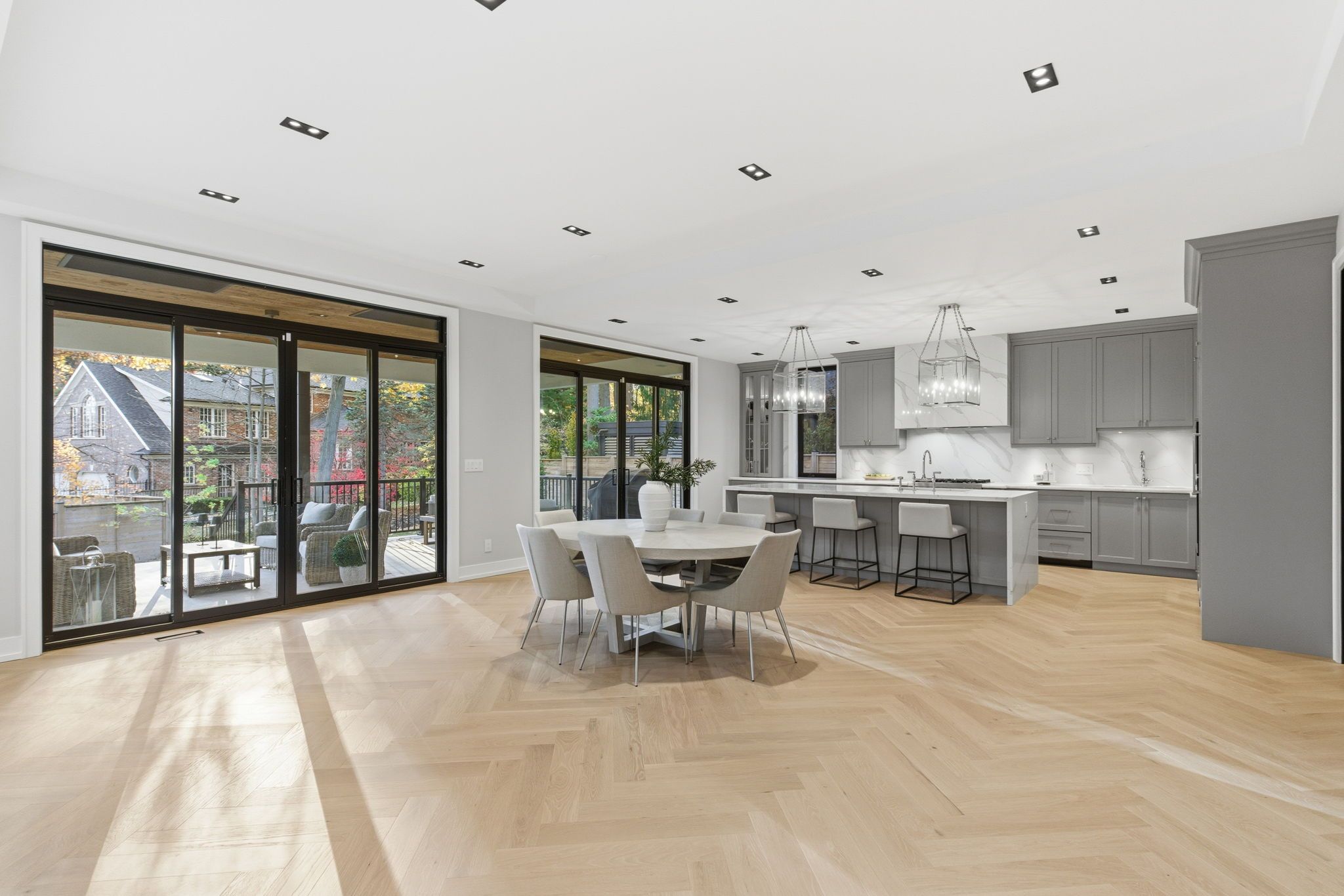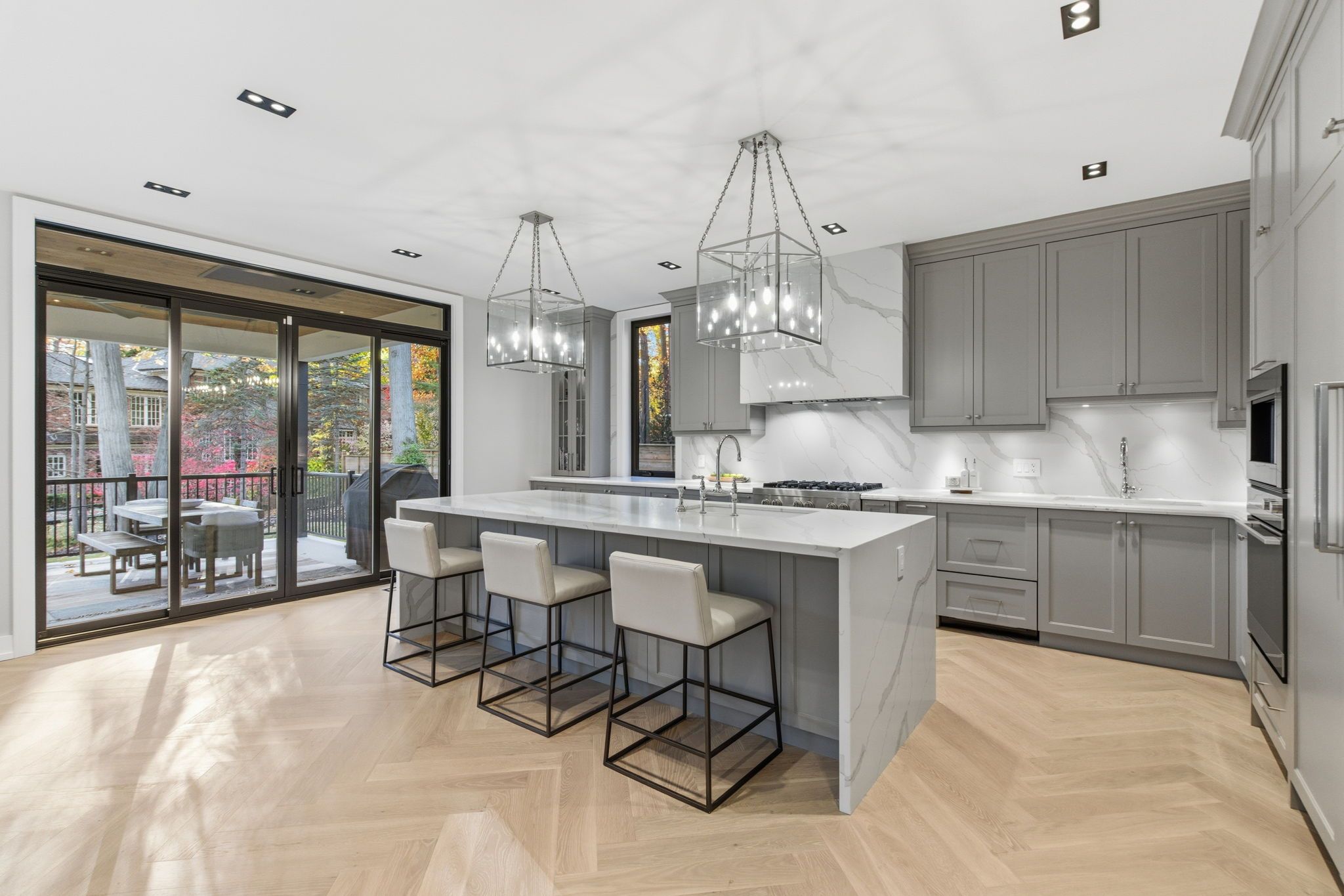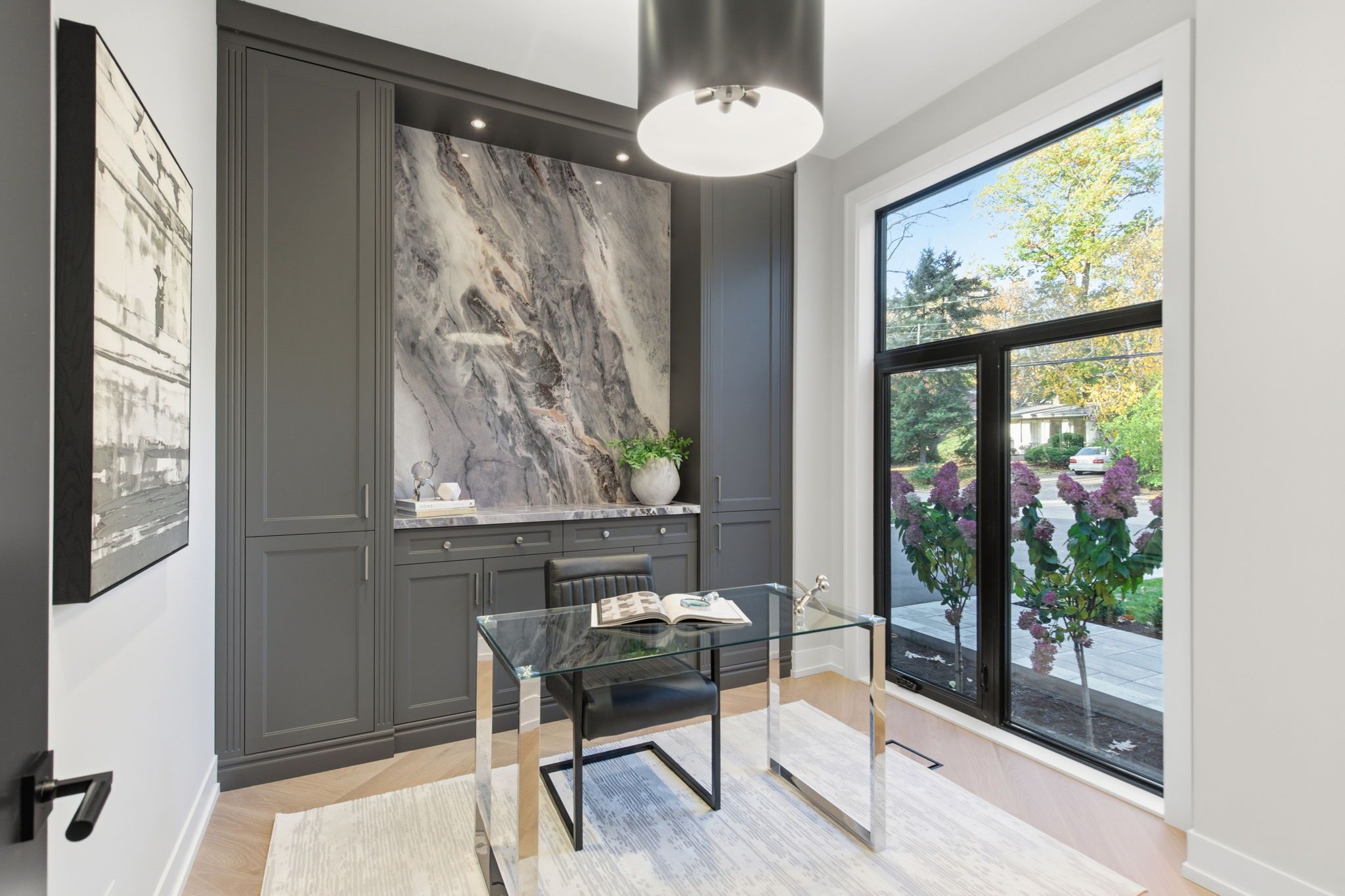 **this listing is located in the area of the #1 elementary school in all of ontario (as per the most recent fraser report)** an exceptional custom-built estate, this stunning modern georgian masterpiece offers over 7,500 sq. Ft. Of refined living in the heart of mineola west, just 400 meters from kenollie public school. Set on a quiet, private lot, the home blends timeless elegance with cutting-edge design. The striking stone facade, black-framed windows, and metal roof with dormer accents exude curb appeal, while manicured gardens and an 8-car driveway complete the impressive exterior. Inside, a 26-ft grand foyer with a showstopping chandelier introduces soaring ceilings, herringbone white oak floors, and sleek italian quartz tile throughout. The chef's kitchen is a showpiece, with a waterfall island, premium appliances, and custom cabinetry, opening to a skylit covered porch with a gas fireplace and outdoor kitchen rough-in-perfect for year-round entertaining. The two-storey great room stuns with a 26-ft feature wall, modern fireplace, and 42-bulb chandelier. Upstairs, the primary suite offers a private terrace, a custom walk-in, and a spa-worthy ensuite with heated floors. Each additional bedroom features bespoke detailing and designer finishes. Every bathroom has heated floors. The lower level with heated floors, walkout, and bath/bar rough-ins offers endless possibilities - home theatre, gym, or in-law suite. With dual furnaces, ev charging, smart home readiness, and professional landscaping, this home defines luxury living just minutes from port credit village, top schools, marinas, parks, and the qew. Experience the art of living-refined, inspired, and absolutely unforgettable. Luxury certified.