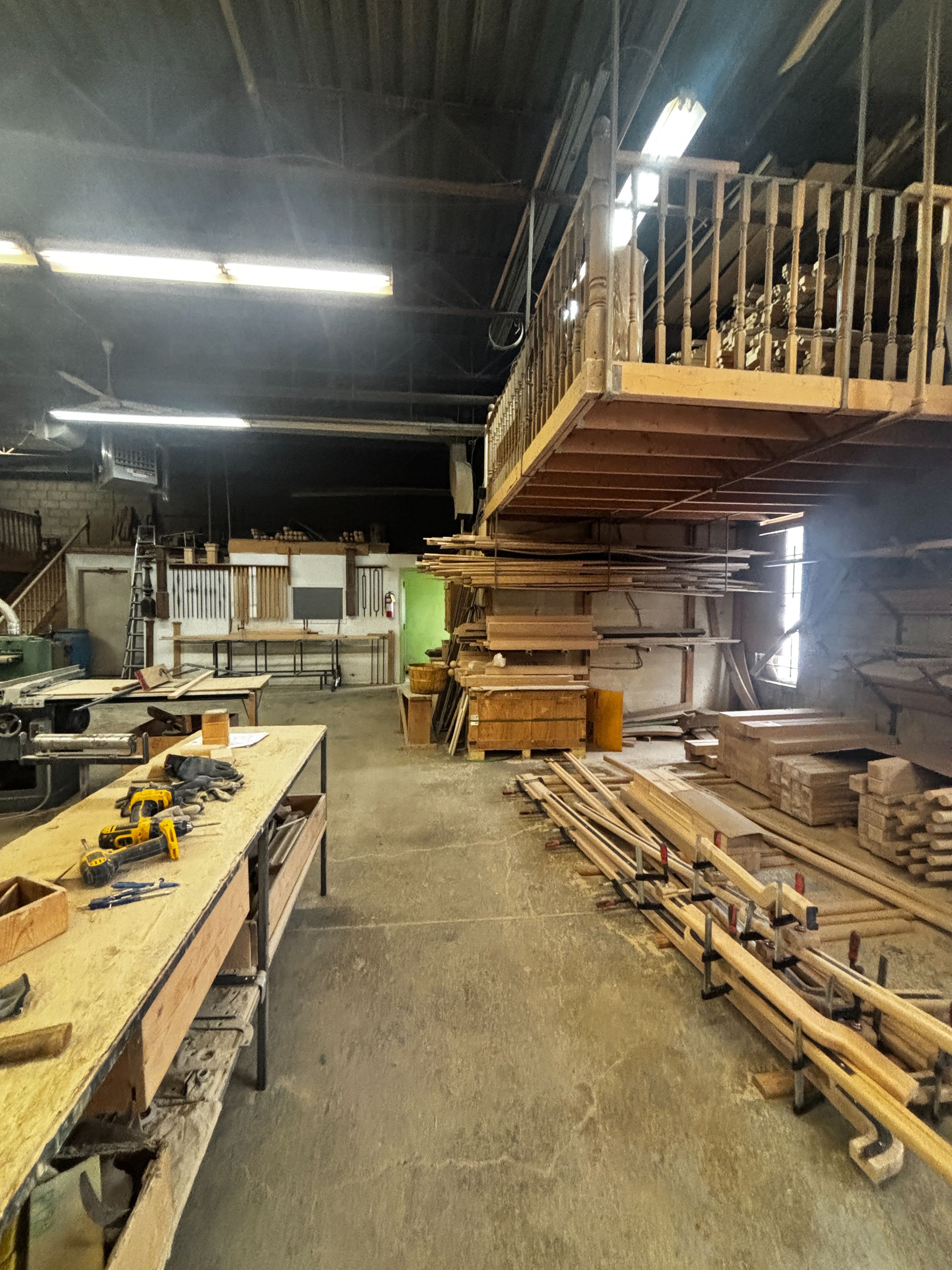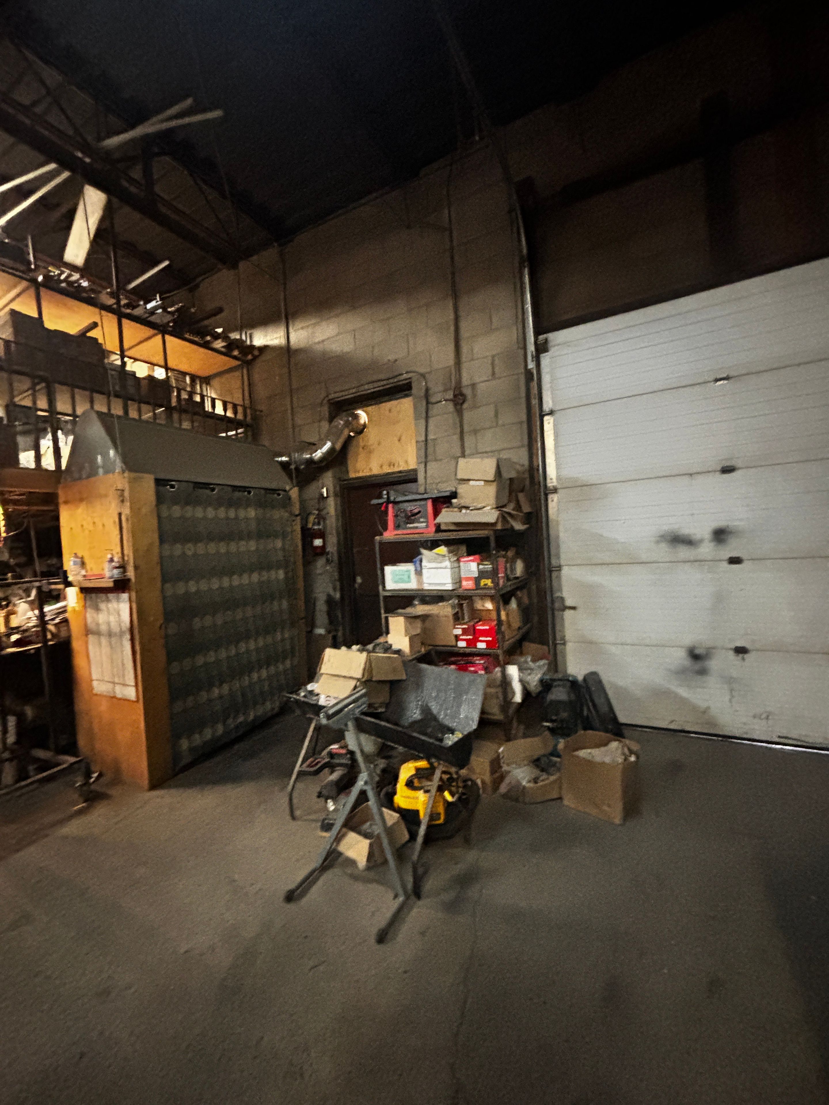 • Open warehouse/shop area suitable for various industrial uses.