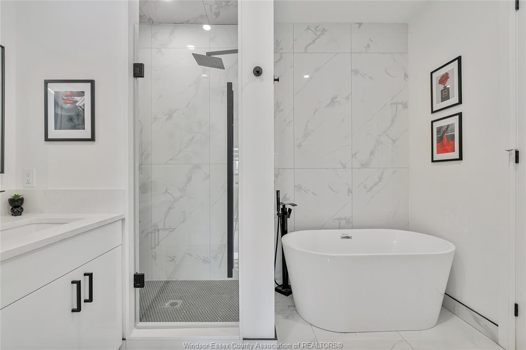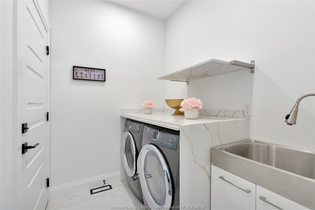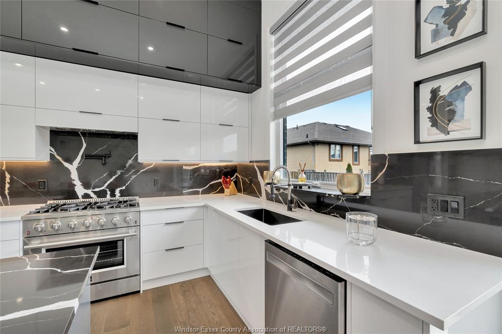 Customized modern lakeshore ranch! This stone and brick beauty spares no expense in making it exquisite. You will be in awe as soon as you enter the foyer with the amazing space and 12 foot ceilings leading to an open bright living room with porcelain highlite wall. Magnificent kitchen with massive quartz island and loads of lovely cabinets that go right to ceiling ! Unique walk-in pantry with full cabinetry. Dining room has special custom wine rack and cabinet. Abundant natural light with oversized and distinctive windows and patio doors. Large primary bedroom with 9 ft. Ceilings, california closet and fabulous 5 pc ensuite bath ,oversized ceramic walk in shower and soaker tub. Two other good size bedrooms with full bathroom and ceramic shower and soaker tub. Hardwood and ceramic flooring throughout. Landscaped front yard with oversized cement driveway enough for 7 cars. Elegant front porch with stone pillars. Don't miss this one !!