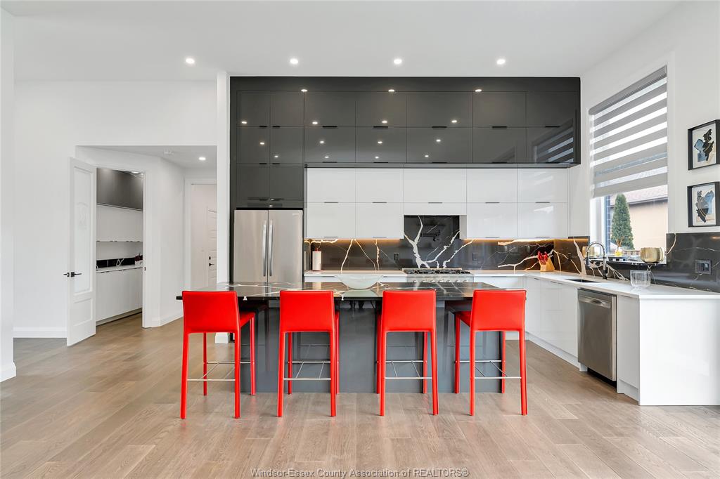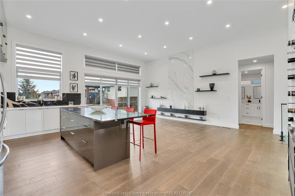 • Magnificent kitchen featuring a massive quartz island and custom cabinetry.