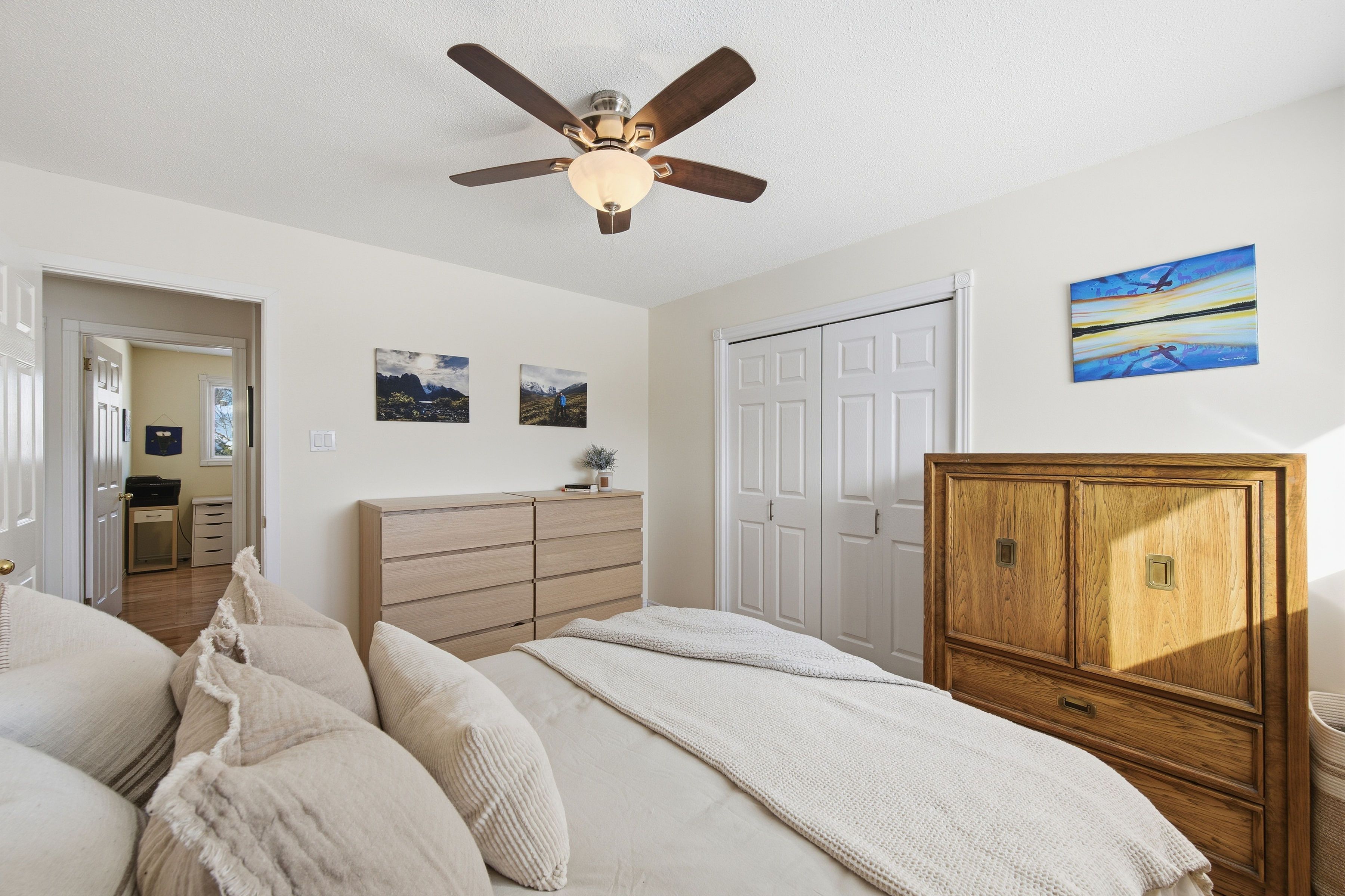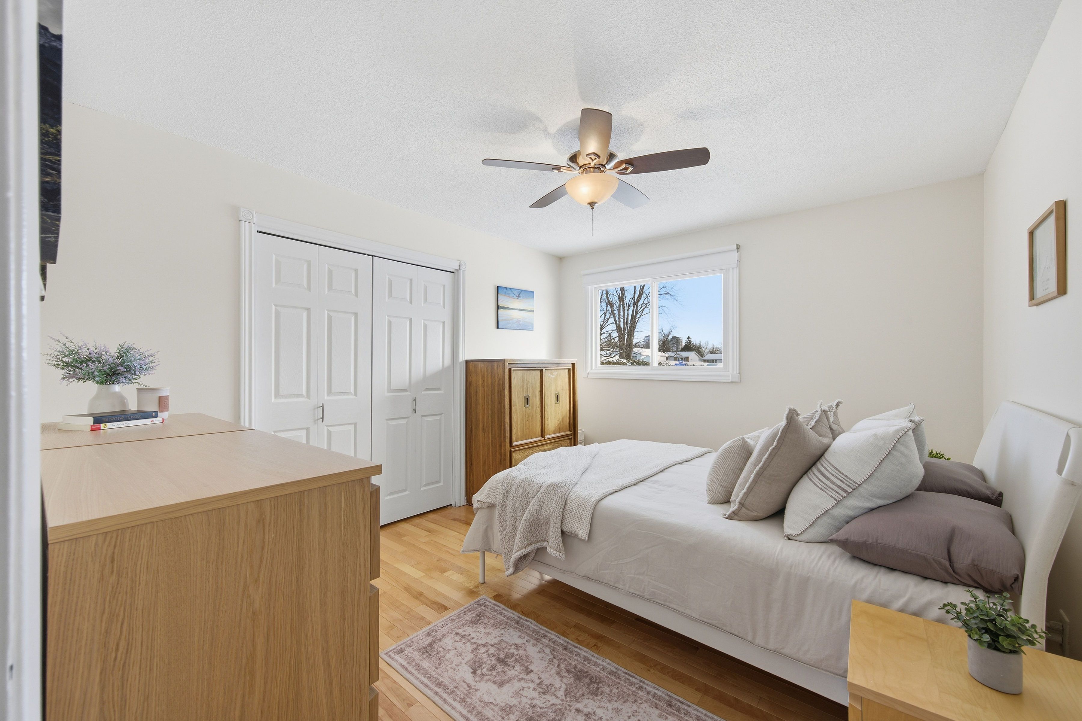 A rare opportunity to own a 4+1 bedroom bungalow home in ottawa, offering exceptional space, light, and versatility on a generous 100-foot deep lot along with an interlocked driveway that provides ample parking for the whole family. This meticulously maintained south-facing, open-concept home is filled with natural light. The main floor features hardwood floors throughout, four well-sized bedrooms, a beautifully updated 3 piece bathroom (2022), and a dining area perfect for everyday meals and hosting. The open kitchen is finished with granite countertops and flows seamlessly into the main living spaces, ideal for modern living. Downstairs, you'll find an oversized 5th bedroom with custom live edge shelving, a fully renovated 3 piece bathroom (2025), and an updated laundry room (2025) with plenty of storage. The recreation room boasts new luxury vinyl flooring (2024) and is ideal for movie nights or a dream play room. The workshop is the extra space you've been needing to either have that home gym or just to take advantage of the custom built-in tool storage. Outside, enjoy a rarely found sense of privacy in the city with a yard that is almost entirely surrounded by mature cedar hedges, as well as a fence, making it ideal for dogs or children. The semi-shaded yard is perfect to host summer bbqs on the new deck (2023) or to take advantage of its great gardening opportunities. Located steps from carson grove elementary school and carson grove park, and walking distance to major employment hubs csis, cse, lacité and nrc. Just a short drive to montfort hospital, other everyday conveniences such as costco, st. Laurent shopping centre and cosmic adventures.