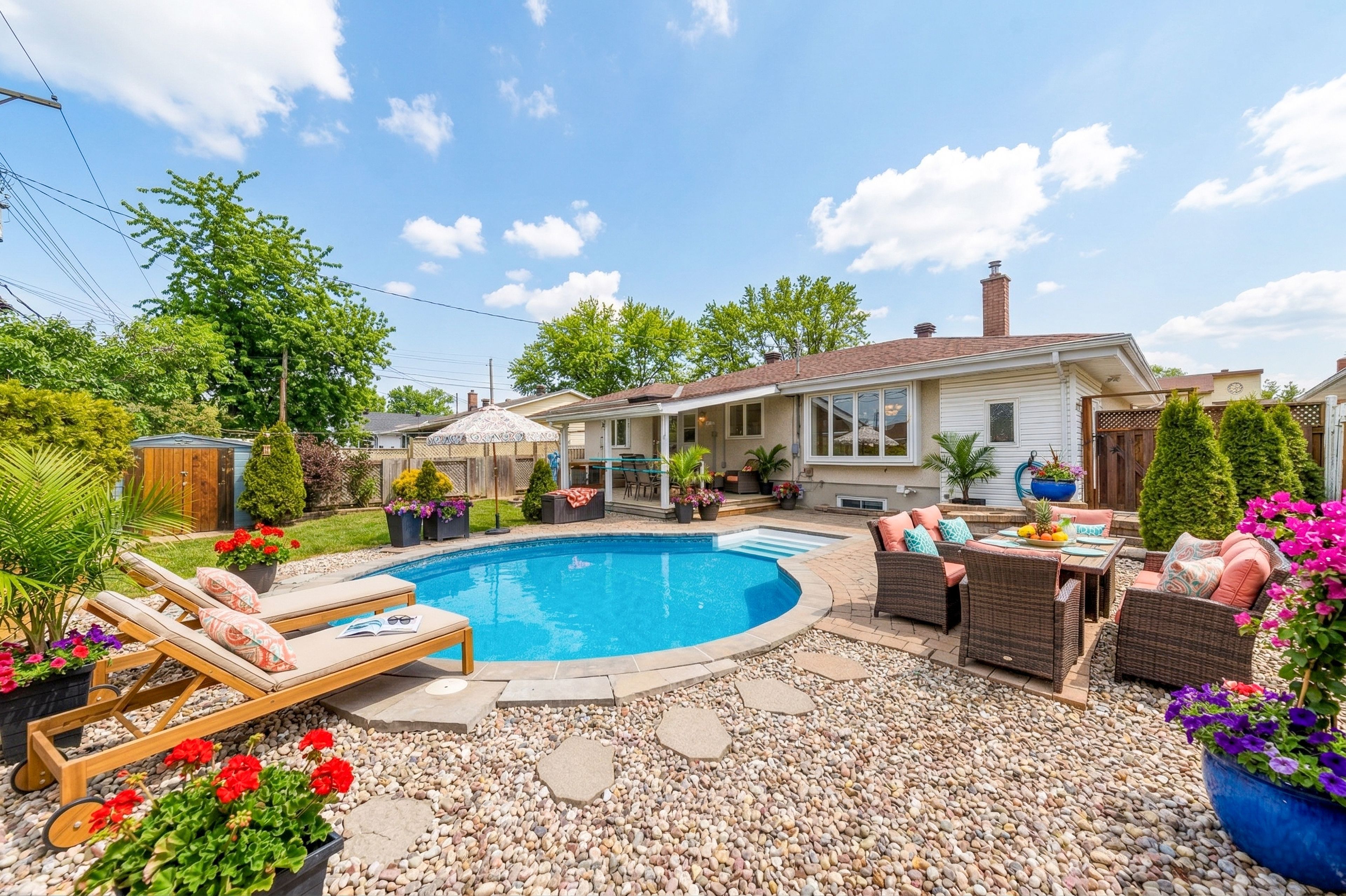 Welcome to 1381 pebble road, a beautifully maintained 3-bedroom bungalow tucked away just off albion road, offering the perfect blend of privacy and convenience. This home features a bright and functional layout with a spacious living area, well-sized bedrooms, and a fully finished basement-perfect for additional living space, a rec room, or home gym. Step outside to your own private backyard oasis, surrounded by mature trees and complete with a saltwater pool-ideal for relaxing or entertaining. Recent updates include a new roof (2025) and new front and back doors, along with many interior upgrades throughout. A generac backup generator adds peace of mind year-round. Located just a 3-minute drive to shops, schools, and all essential amenities, this home offers the best of both worlds-quiet living with everything you need close by.