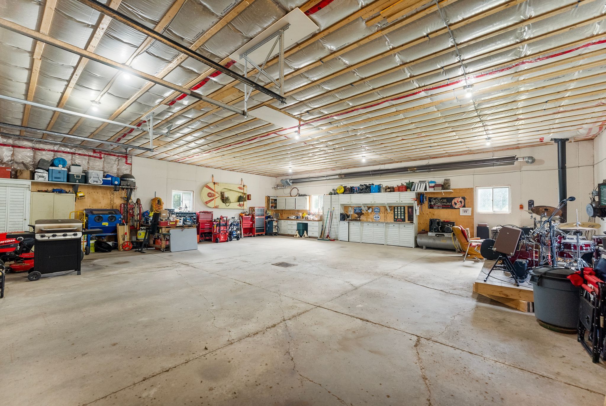 • Oversized heated garage/workshop plus multiple outbuildings for storage.